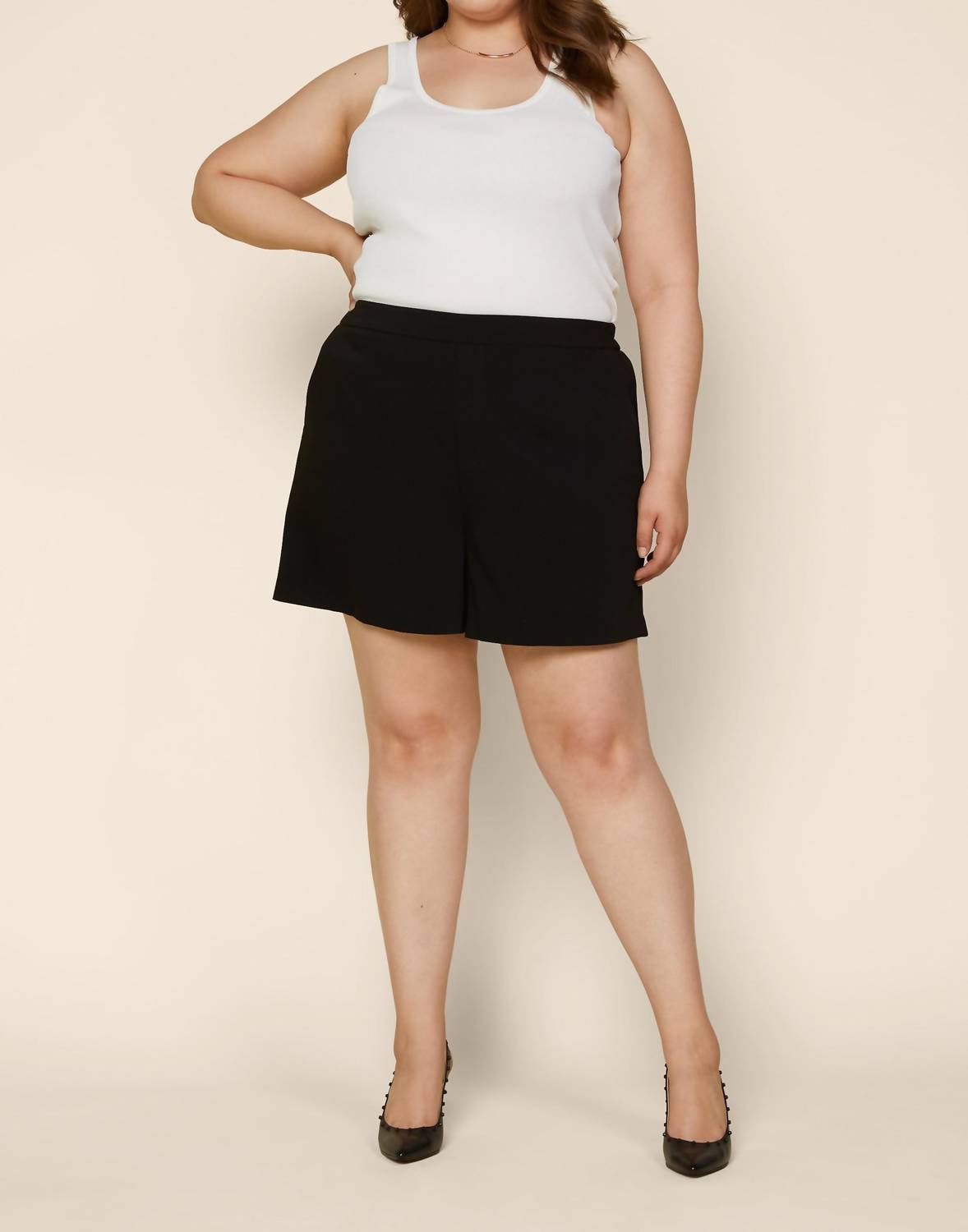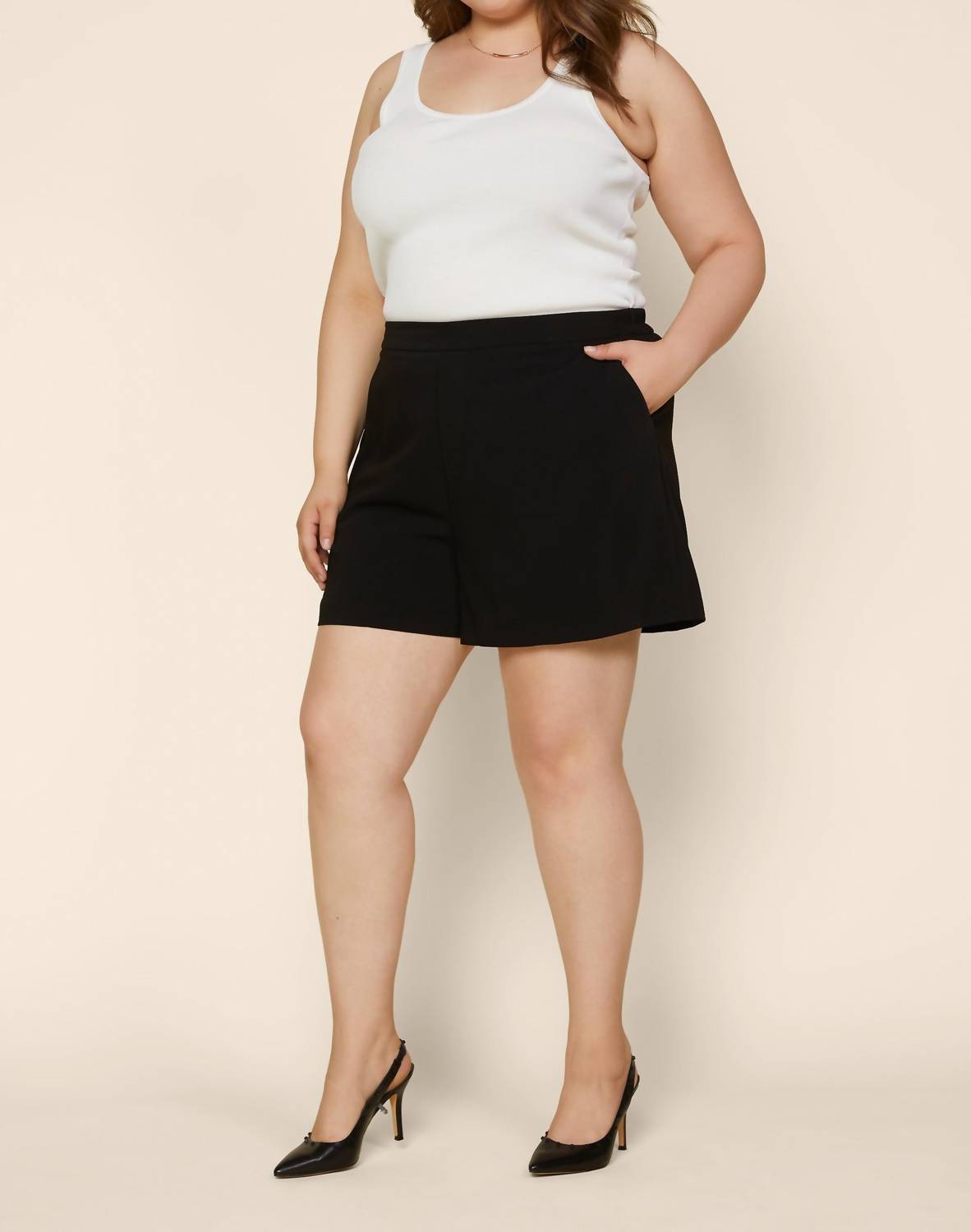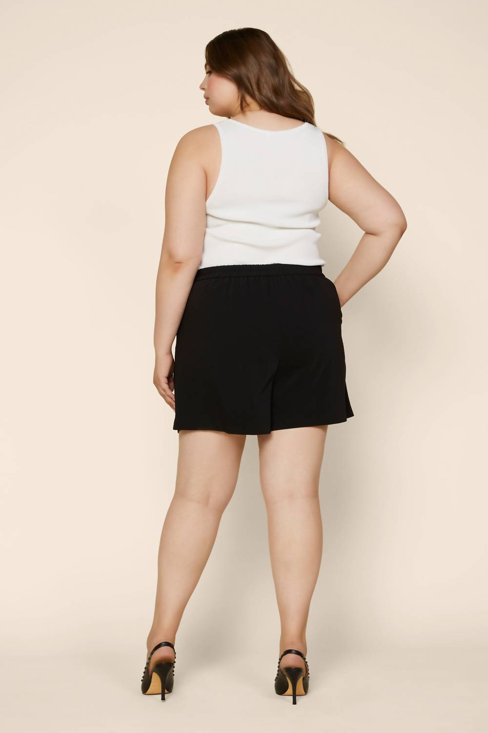 High-waist is here to stay and we especially love this style short. Introducing the Making Strides Short by Skies Are Blue in classic black, perfect for a light and airy look that transitions effortlessly from day to night. Designed with an overall-inspired fit and practical pockets, these high-waisted shorts feature an adjustable elastic waistband for a comfortable fit. Composition: 100% Polyester. Closure: Pull on. Ideal for minimalist style enthusiasts, they are perfect for spring and add a touch of elegance to any holiday party or New Year's Eve celebration.