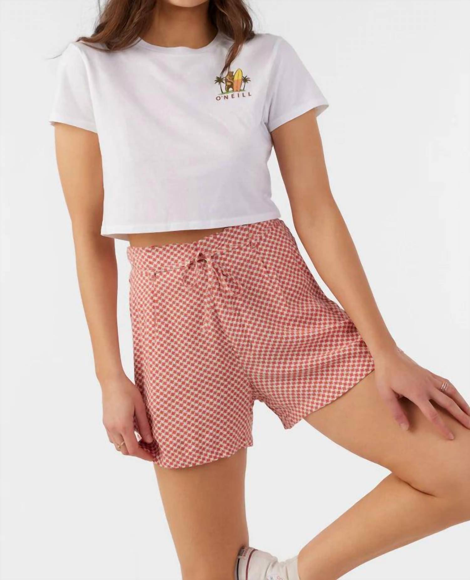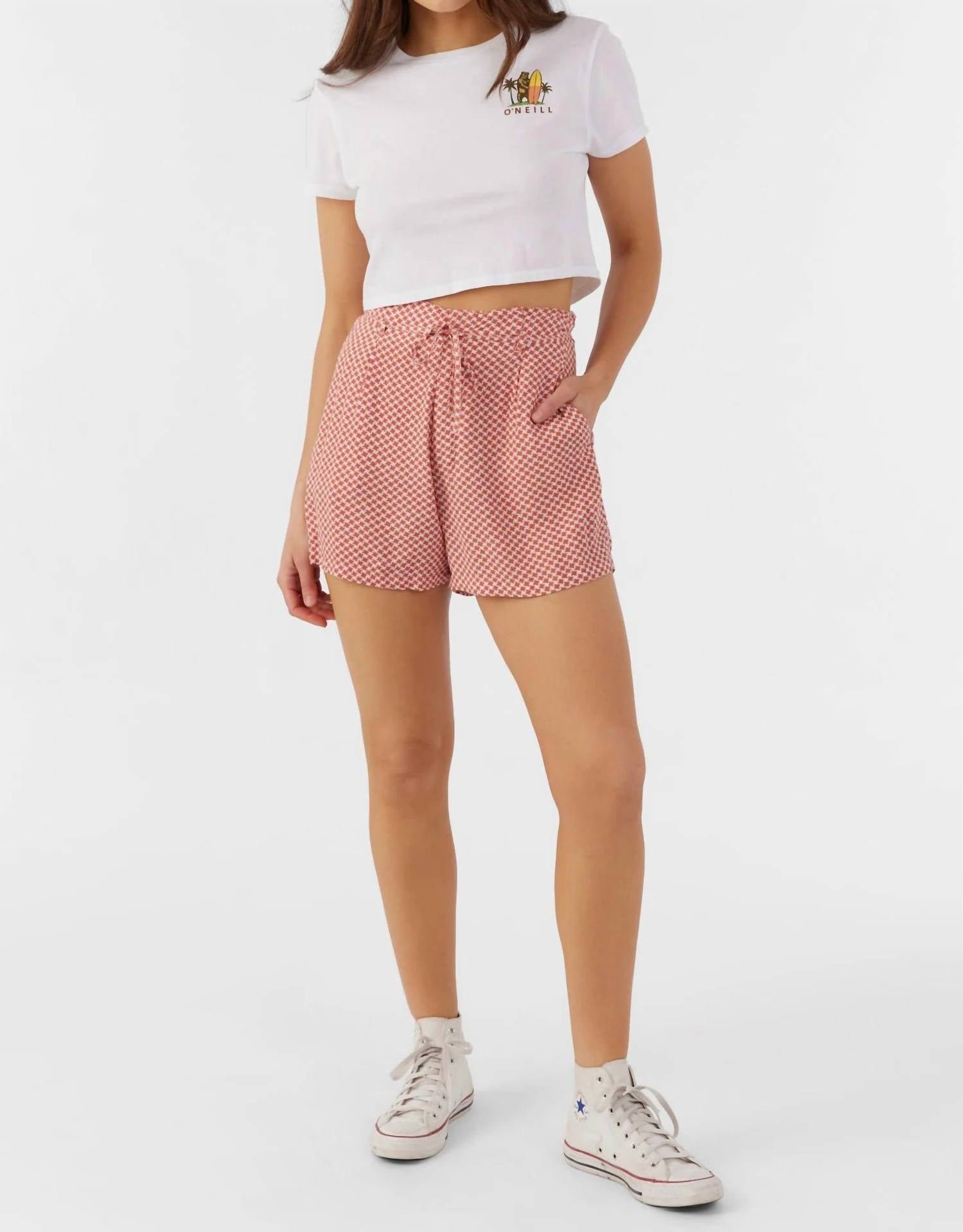 Fit to perfection, we love these high-waist shorts and you will too. Elevate your spring wardrobe with the O'Neill Cutback Shorts in Dusty Cedar, perfectly crafted for a relaxed beach day vibe. These women's high-waist shorts offer a chic paper bag waist with a self-tie and elastic center back, featuring side pockets for added convenience. Made from 100% viscose crinkle, they guarantee a comfortable fit with a 3.5" inseam and 13.25" rise length. Closure is easy with a pull-on design, making them ideal for casual streetwear occasions.