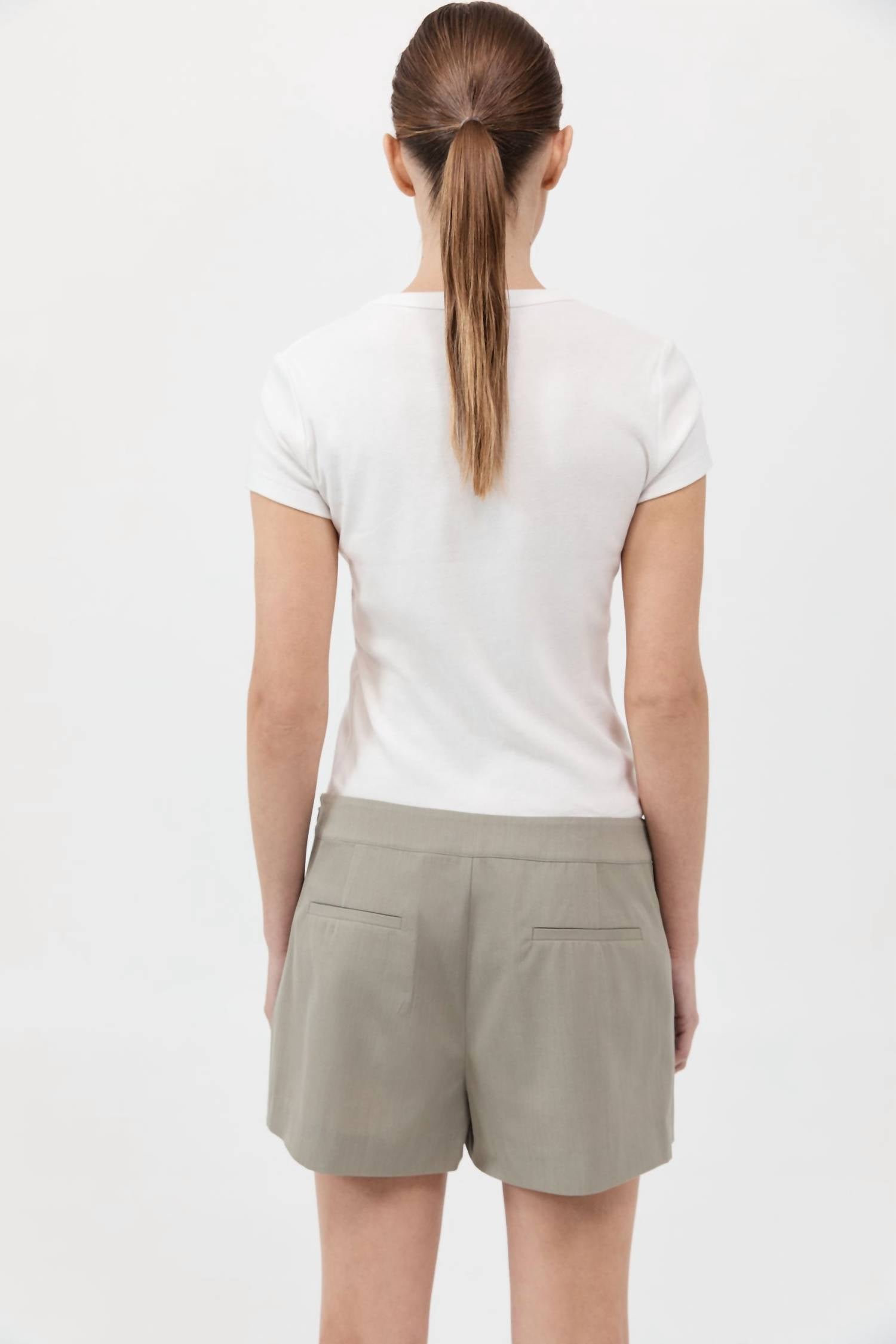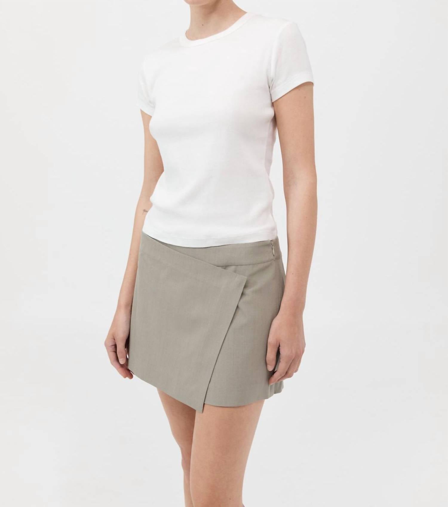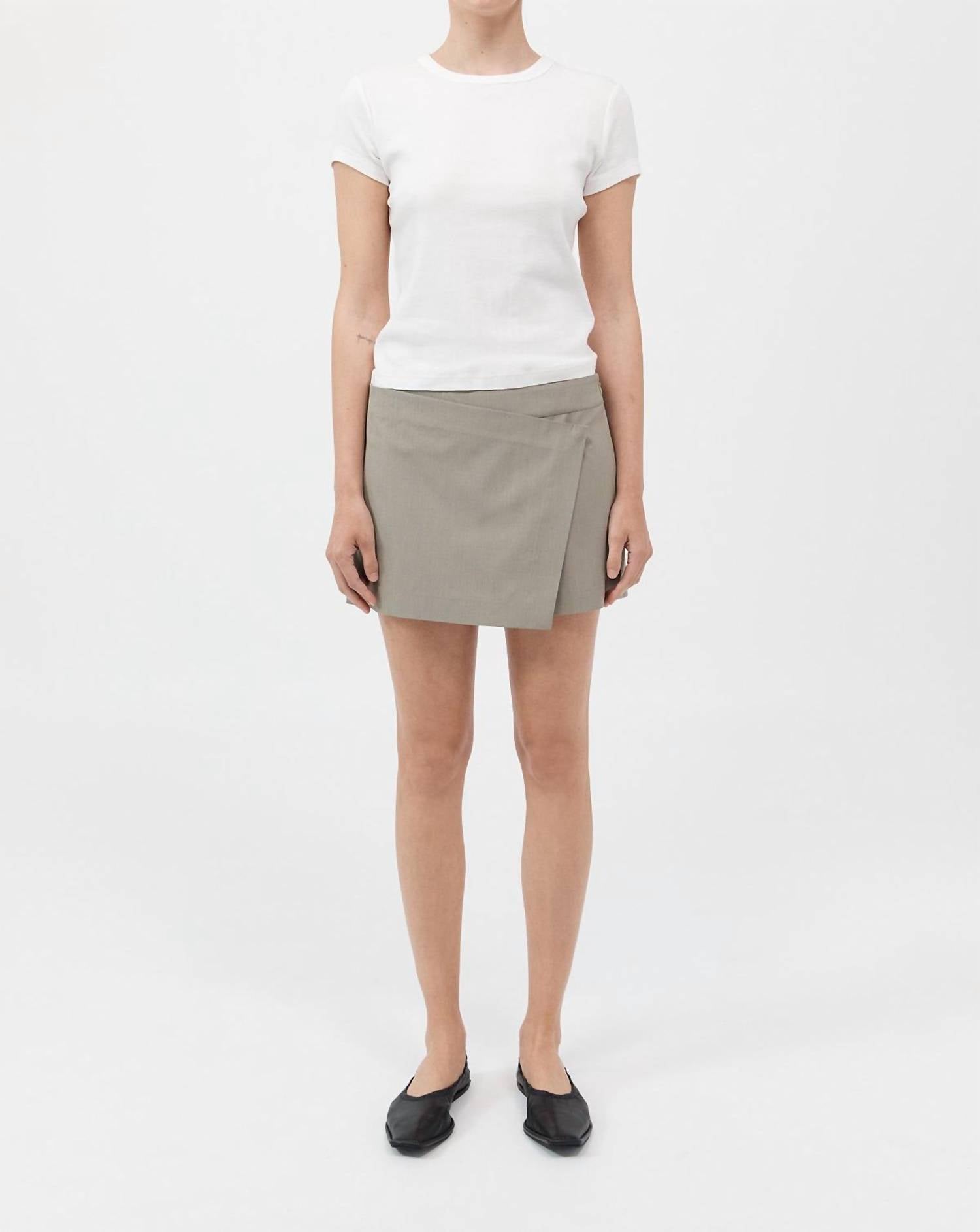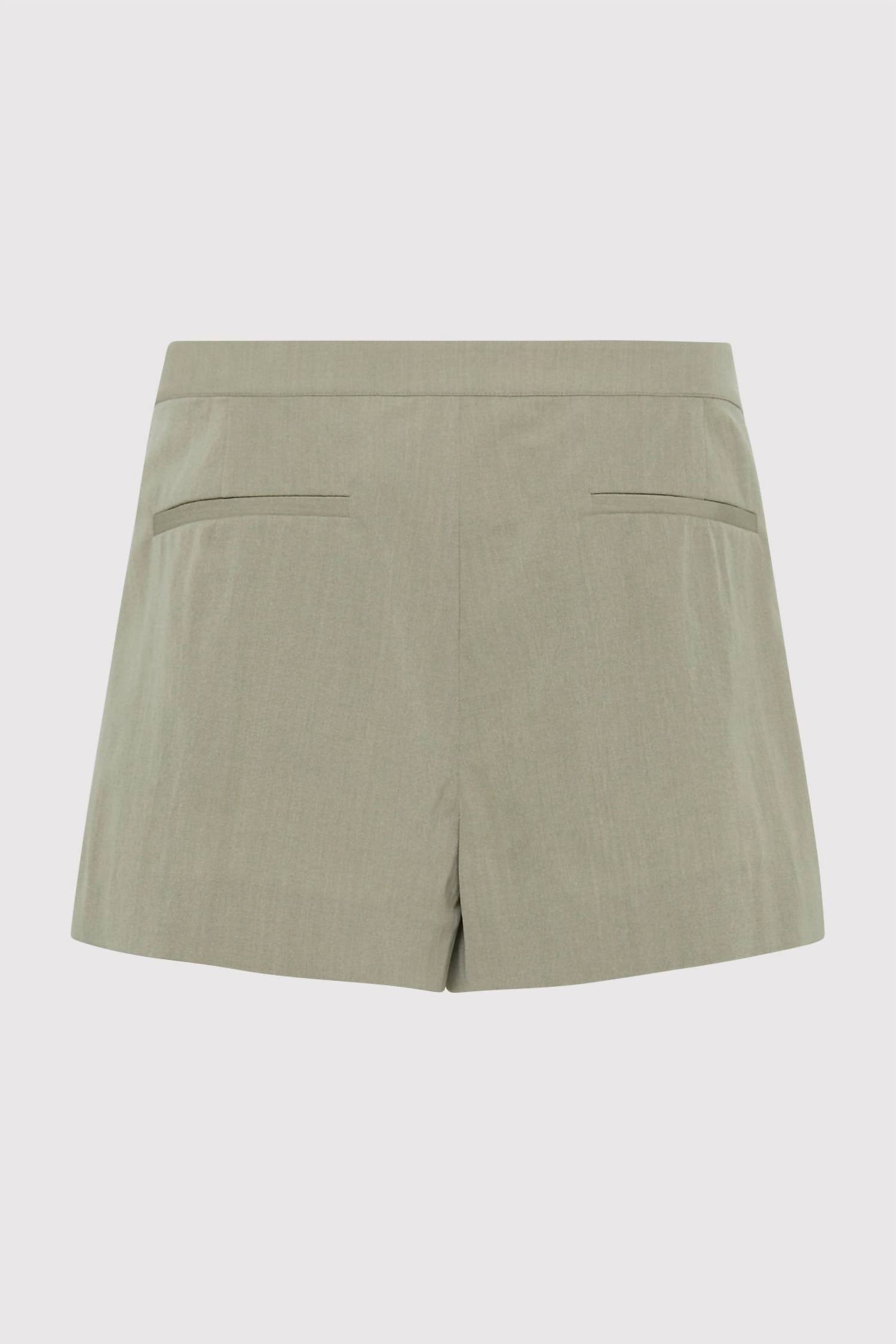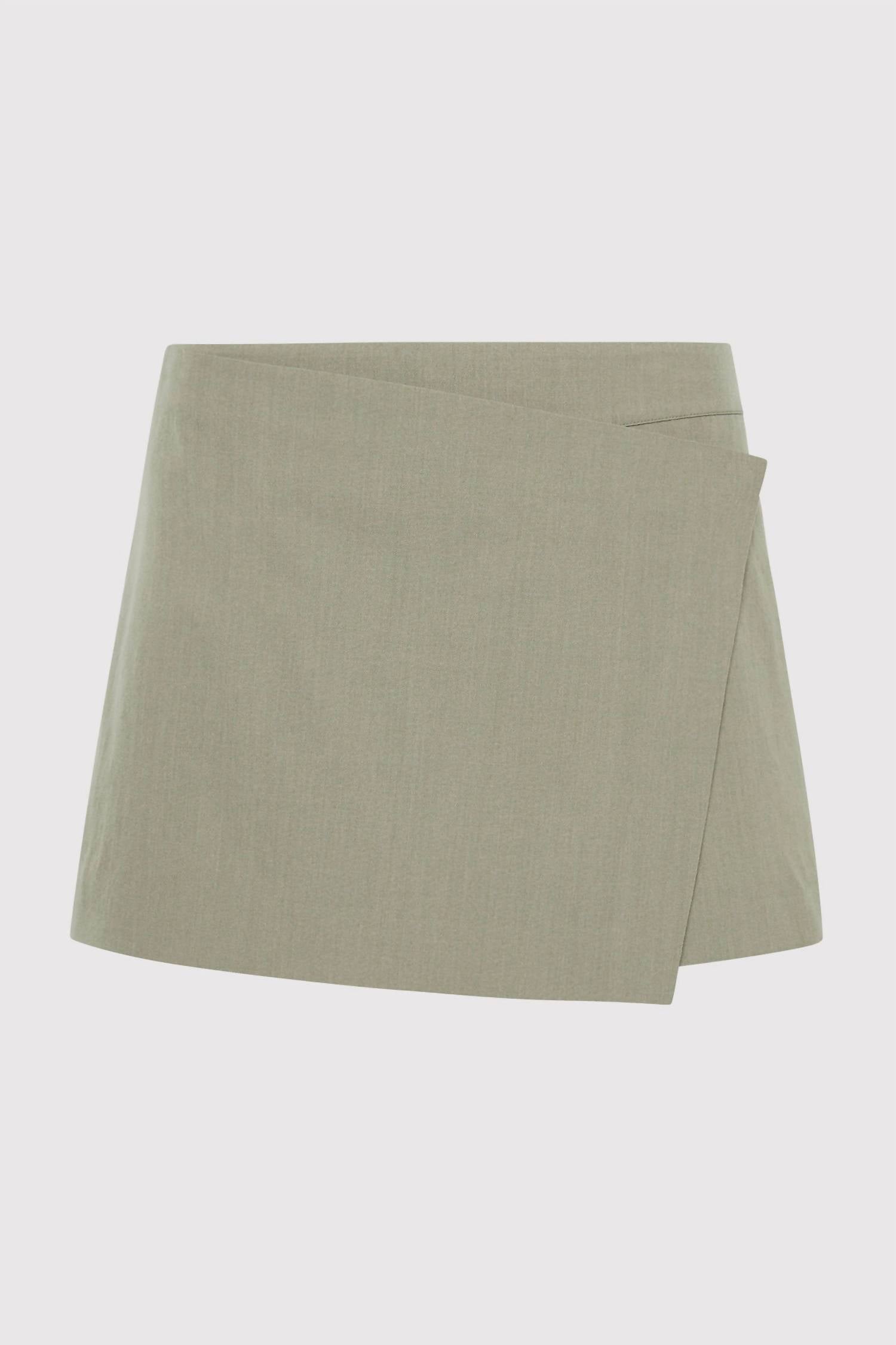 Fit to perfection, we love these high-waist shorts and you will too. Introducing the St. Agni Wrap Shorts in Moss Grey, a chic blend of 96% RWS Wool and 4% Elastane with a smooth Lyocell lining for a flawless fit. These expertly crafted shorts offer a playful wrap-skirt front, complemented by practical back pockets and an invisible side zipper for a sleek appearance. Made for versatile wear, they sit effortlessly at a low-rise waist. For optimal care, dry clean only.