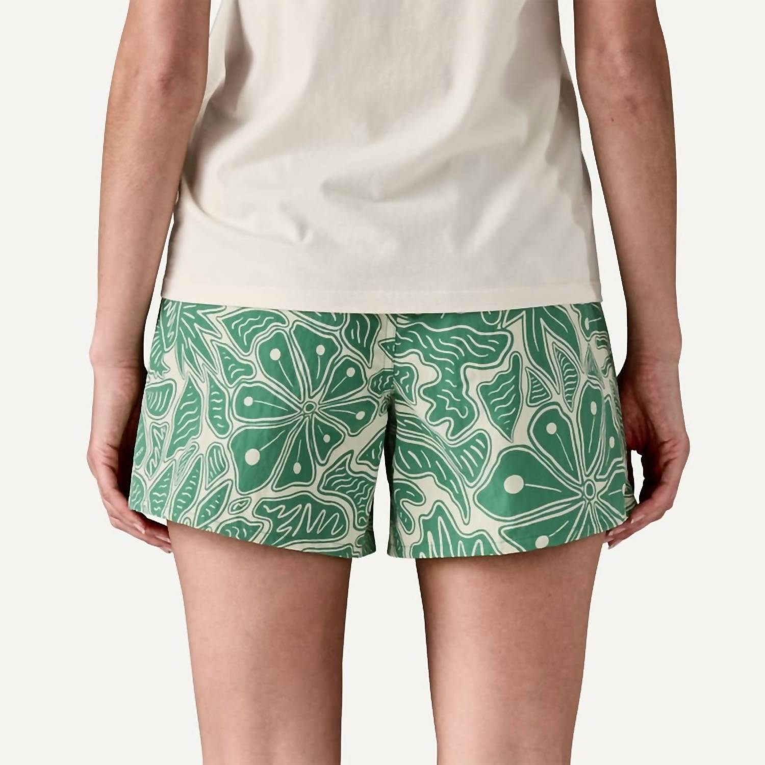 Fit to perfection, we love these high-waist shorts and you will too. Discover the Baggies™ Shorts by Patagonia in a vibrant Heartleaf Green, perfect for a boho chic summer style. These women's high-waist shorts feature a relaxed fit with a 5" inseam and are crafted from quick-drying NetPlus® 100% postconsumer recycled nylon. Designed with a pull-on closure and practical pockets, they are ideal for holiday parties. Care for them with a machine wash and tumble dry, embracing both sustainability and comfort.