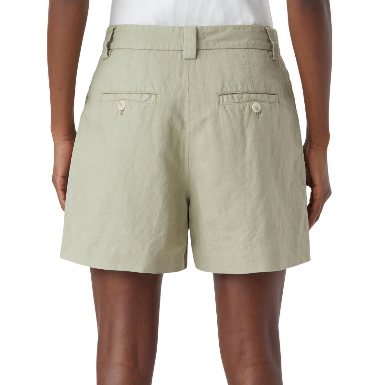 Crafted of a light linen cotton mix with a vivid structure and garment-dyed finish. Featuring a mid waist silhouette, pleat detailing, and piped and buttoned back pockets. Fabric: 51% Linen 49% Cotton. Machine wash. Size 27 Inseam 4.1". Made in Romania.