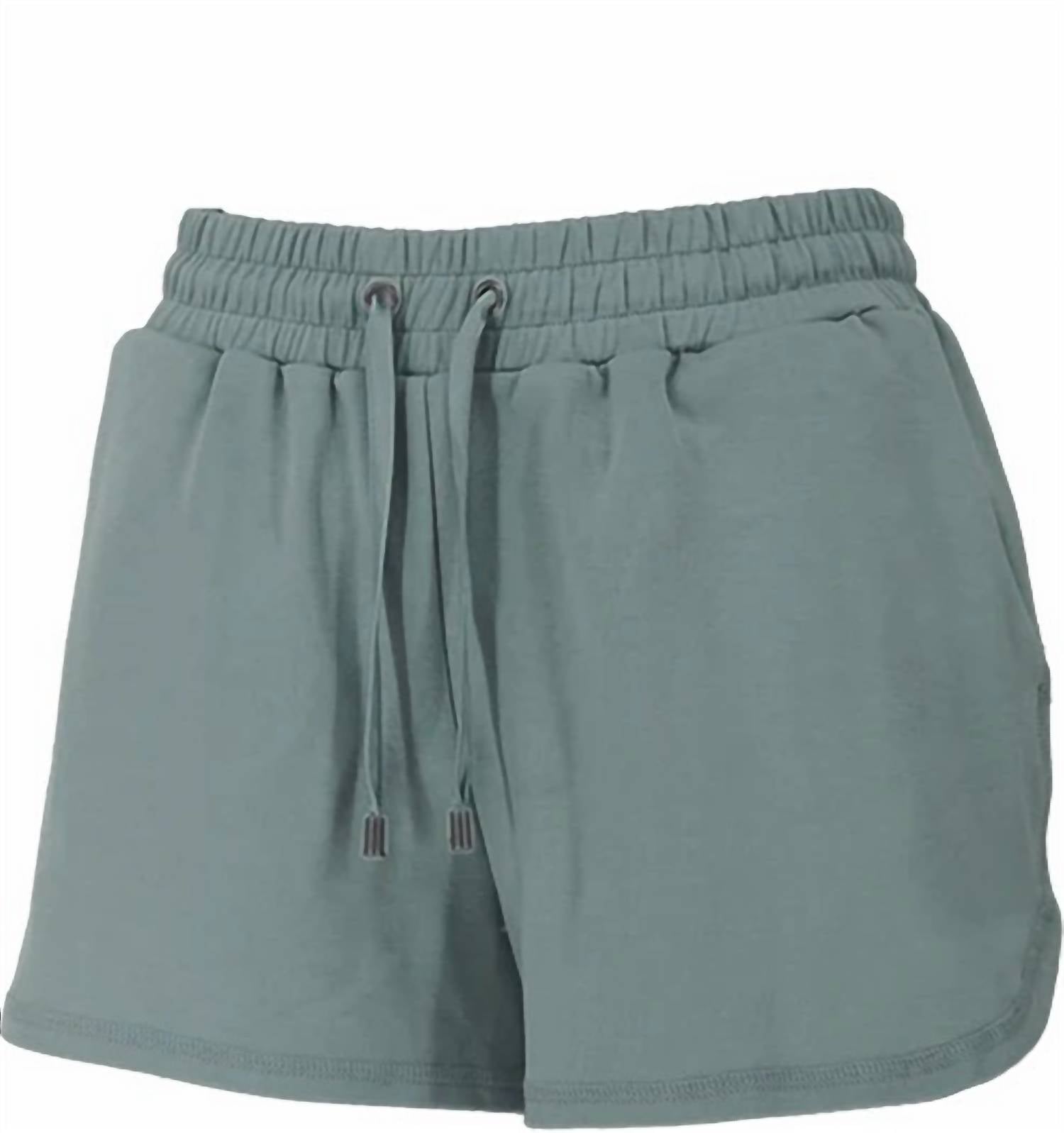 High-waist is here to stay and we especially love this style short. Discover ultimate comfort with the Liquid Energy Apparel Modal Lounge Shorts in refreshing Sage. These women's high-waisted shorts are crafted from a soft blend of 48% Modal, 48% Polyester, and 4% Spandex, offering a lightweight and breathable feel perfect for summer athleisure style. With a thick waistband and adjustable drawstring, these solid pattern shorts provide a snug fit that adapts to your movements, featuring convenient pockets for your essentials. Closure: Pull-on. Care: Machine wash. Olivia, with a height of 5’7”, wears a size medium (36” bust, 32.5” waist, 41” hips).