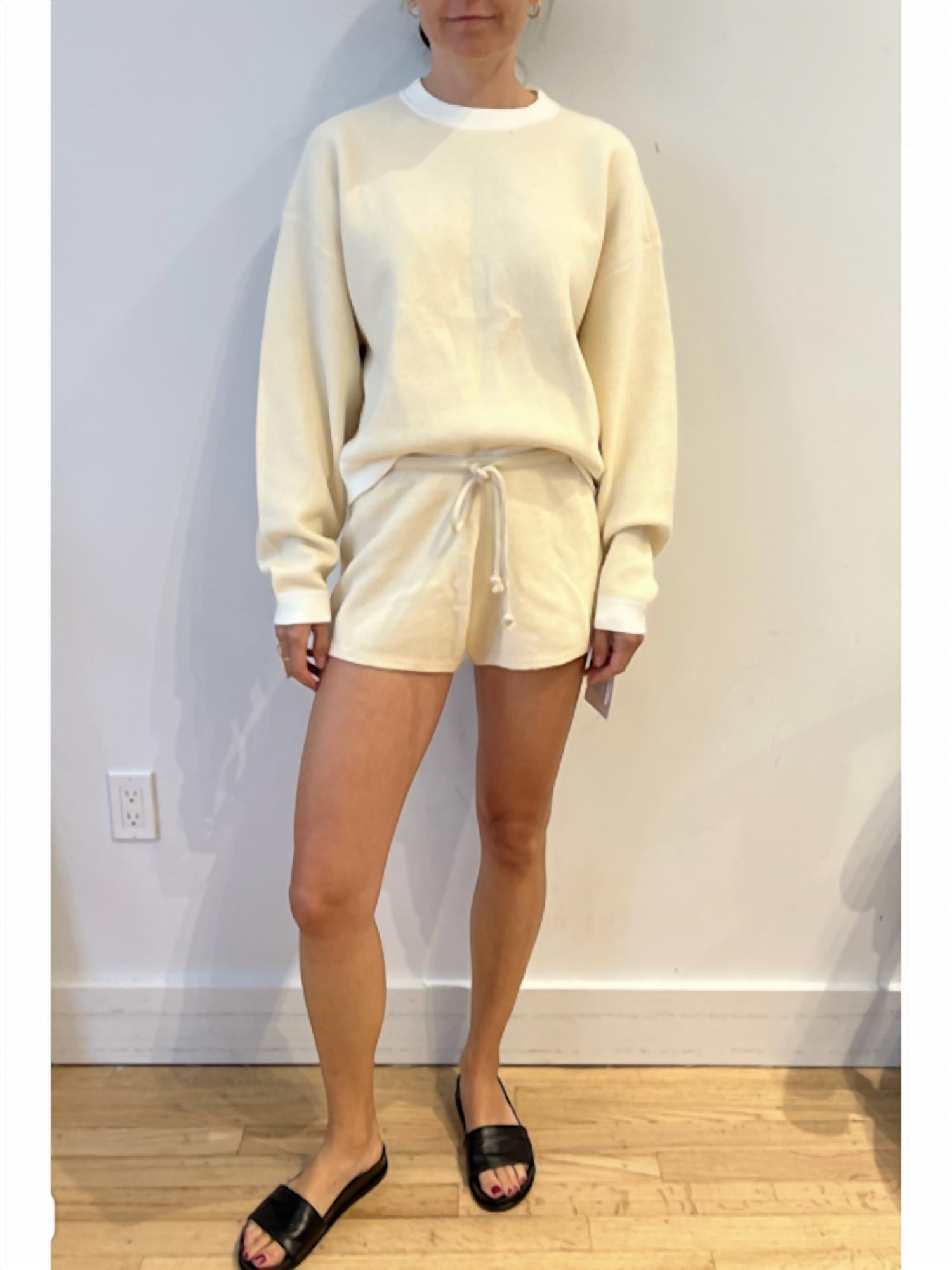 Fit to perfection, we love these high-waist shorts and you will too. Experience unmatched comfort with the Cotton Terry Shorts by White + Warren, available in a chic cream color. Crafted from a 75% Organic Cotton, 25% Nylon blend, these high-waist shorts offer both softness and stretch, perfect for a day of leisure. With a pull-on closure, they are designed for effortless style without compromising on comfort. Care: Hand wash cold or dry clean, and reshape to lay flat to dry. Model is 5'10" and wearing a size small.