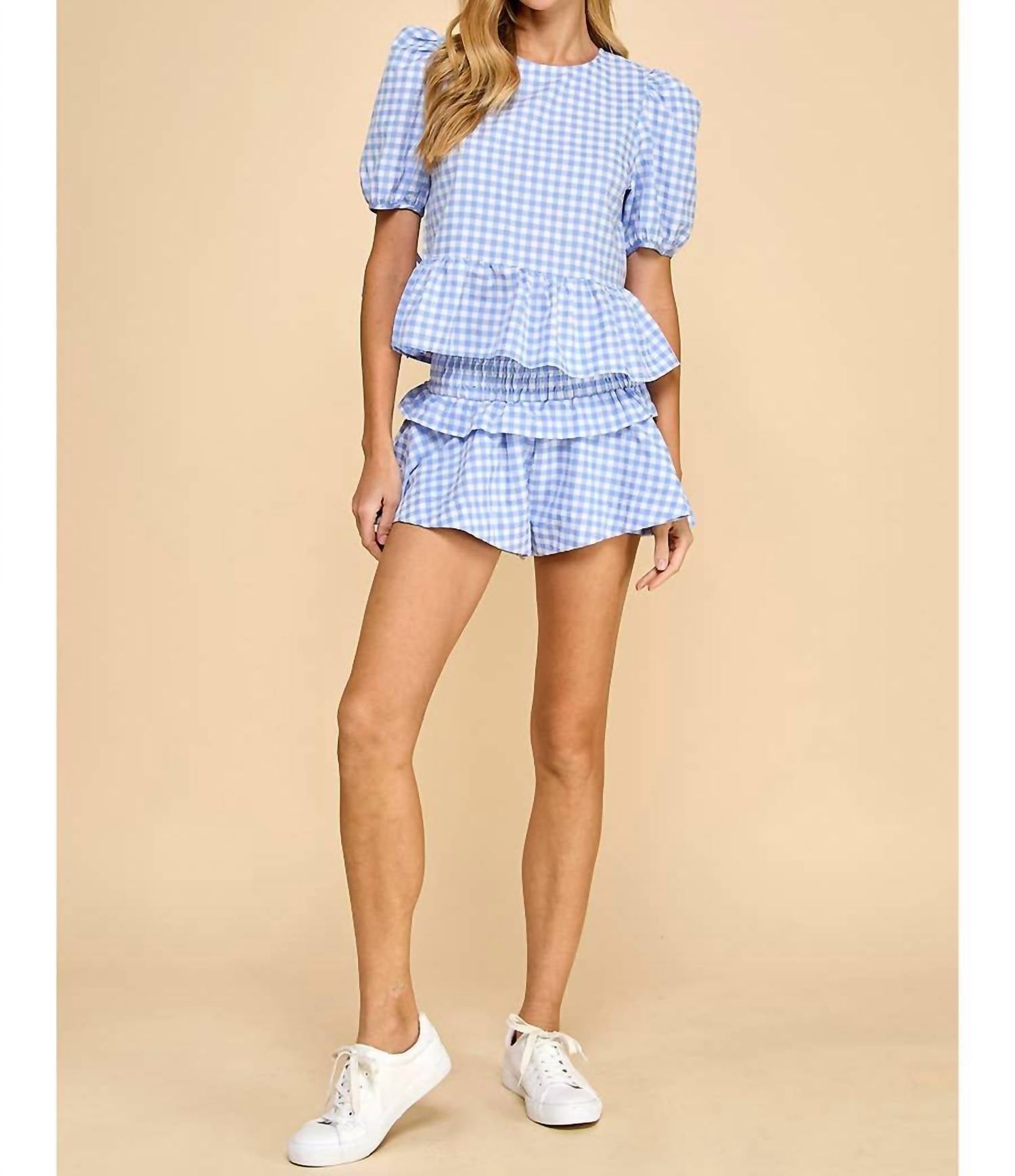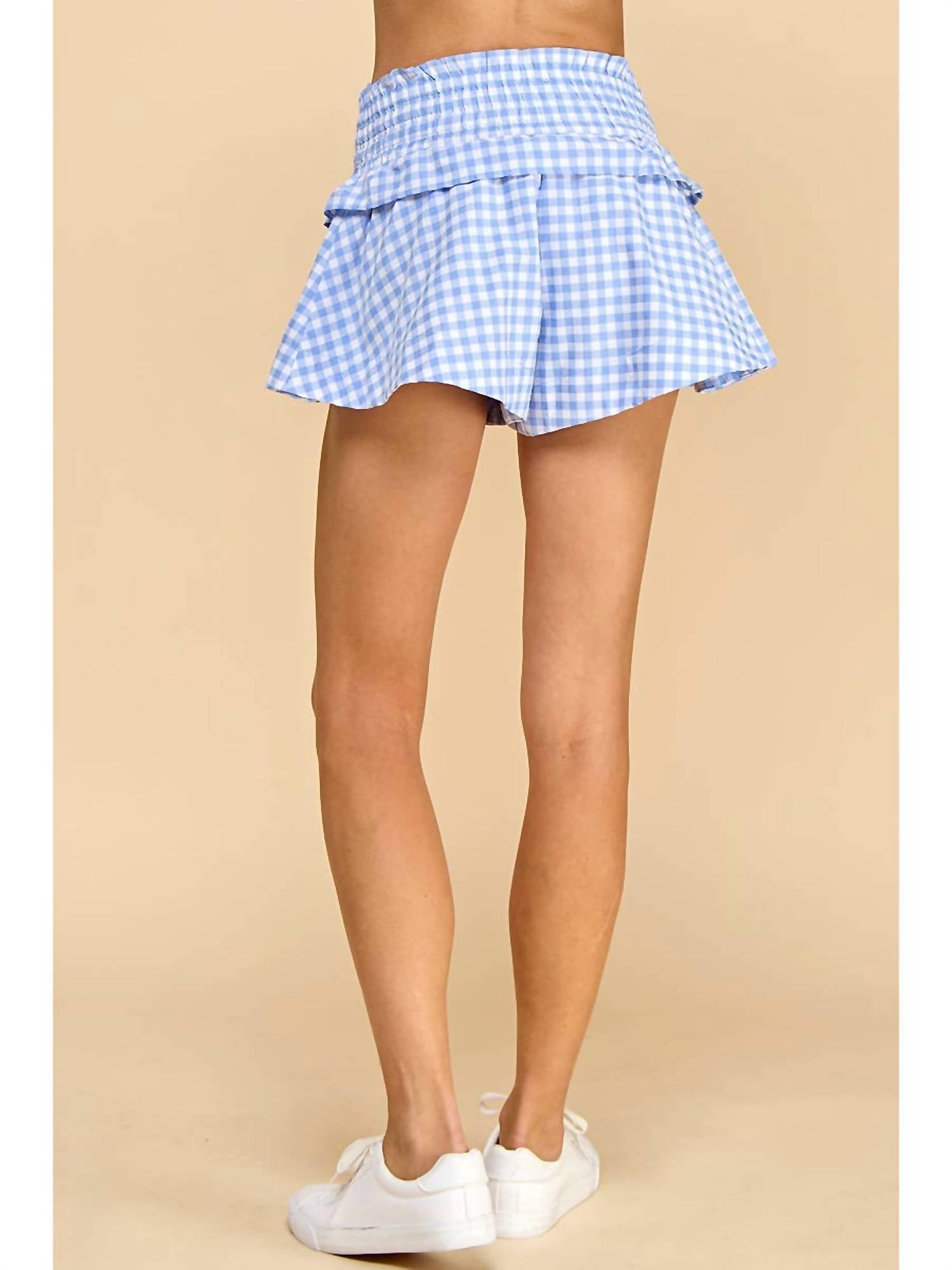 Tuck your favorite tee into these high-waist shorts for a more casual-cool feel. These high-waisted plaid shorts are a stylish and comfortable choice for warm-weather days. Designed with a stretchy smocked waistband, they offer a flexible, flattering fit that moves with you. The ruffle detail at the top adds a fun, feminine touch, while the classic plaid pattern brings a timeless, laid-back vibe. Pair them with a tucked-in blouse or a simple tee for an easy, put-together outfit that's perfect for anything from weekend outings to relaxed afternoons.