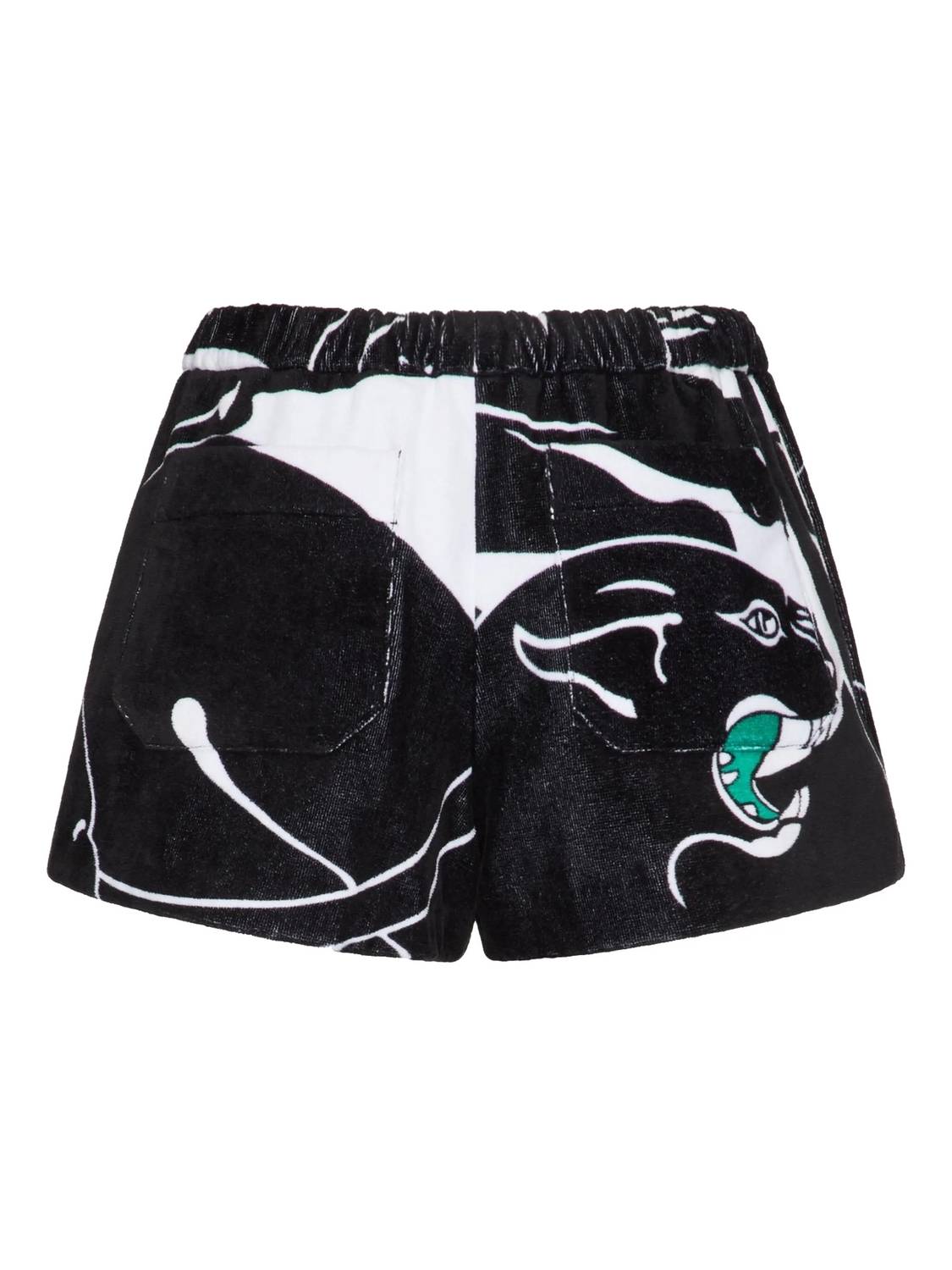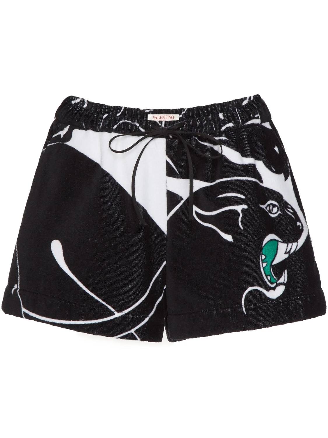 Fit to perfection, we love these high-waist shorts and you will too. Introducing the Women's Panther Terry Cloth Shorts by Valentino, a stylish and comfortable choice crafted entirely from 100% cotton terry cloth. Designed with an elastic waistband and an adjustable waist strap, these high-waisted shorts ensure a perfect fit. Featuring two patch back pockets, this black patterned piece is both functional and fashionable. Made in Italy, these shorts are easy to care for with a simple machine wash.