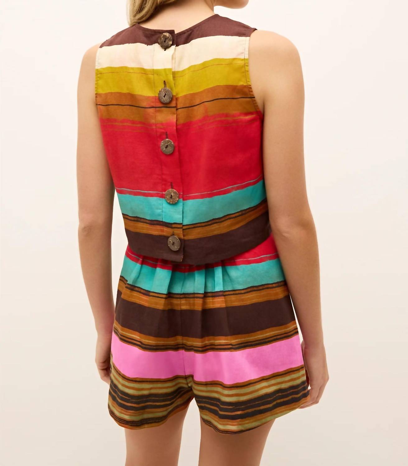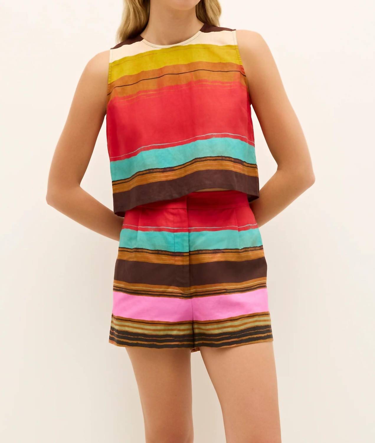 Fit to perfection, we love these high-waist shorts and you will too. Presenting the Blanche High Waist Short by Marie Oliver, a perfect summer addition in the vibrant Grotto stripe. With a fixed elastic waistband, these shorts offer comfort and elegance, sitting at the natural waist. Crafted from a breathable 55% linen and 45% cotton blend with a 1.75" inseam, they feature a convenient fly zipper with a hook and bar closure. Care is easy with machine wash cold on a delicate cycle and laying flat to dry.