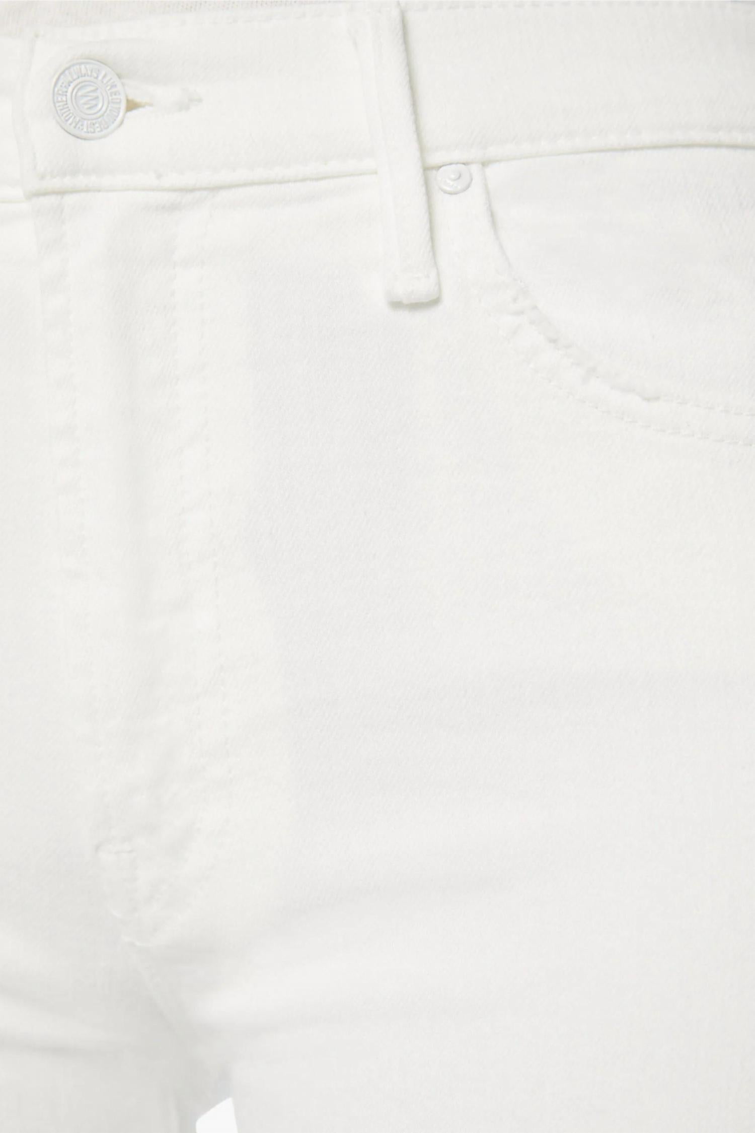 Fit to perfection, we love these high-waist shorts and you will too. The Insider Crop Step Fray Jeans by Mother are a high-waisted bootcut designed to hit at the ankle with a trendy frayed step-hem. Crafted from a stretch cotton blend comprising 94% Cotton, 4% Polyester, and 2% Elastane, they offer both comfort and style. Made in Los Angeles, these best-selling white denims, in the Fairest Of Them All shade, have a 10" rise, 26" inseam, and a 15" leg opening. Closure: Button closure. Care: Machine wash and tumble dry.