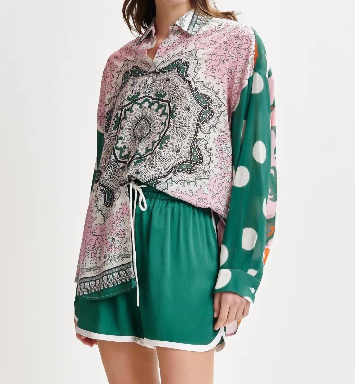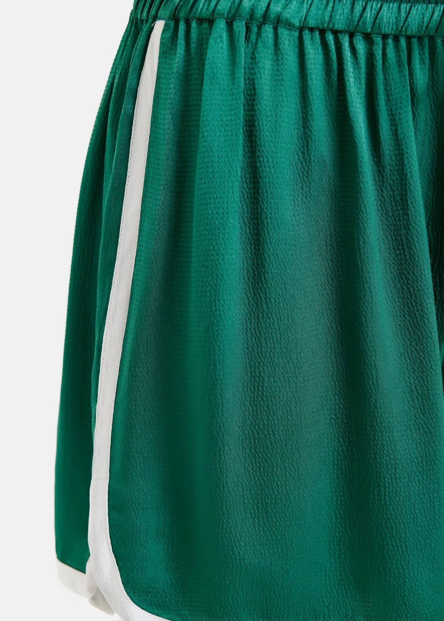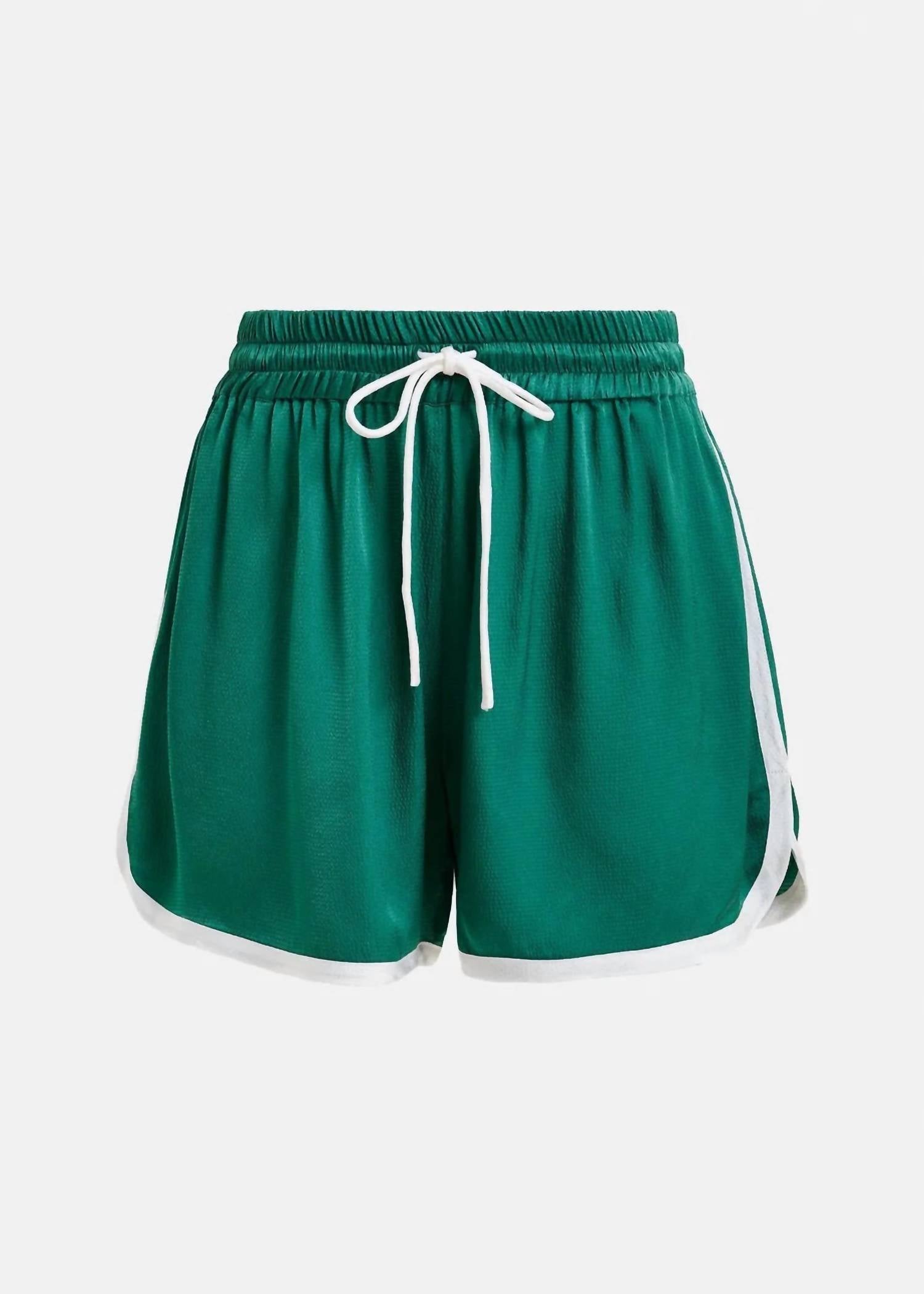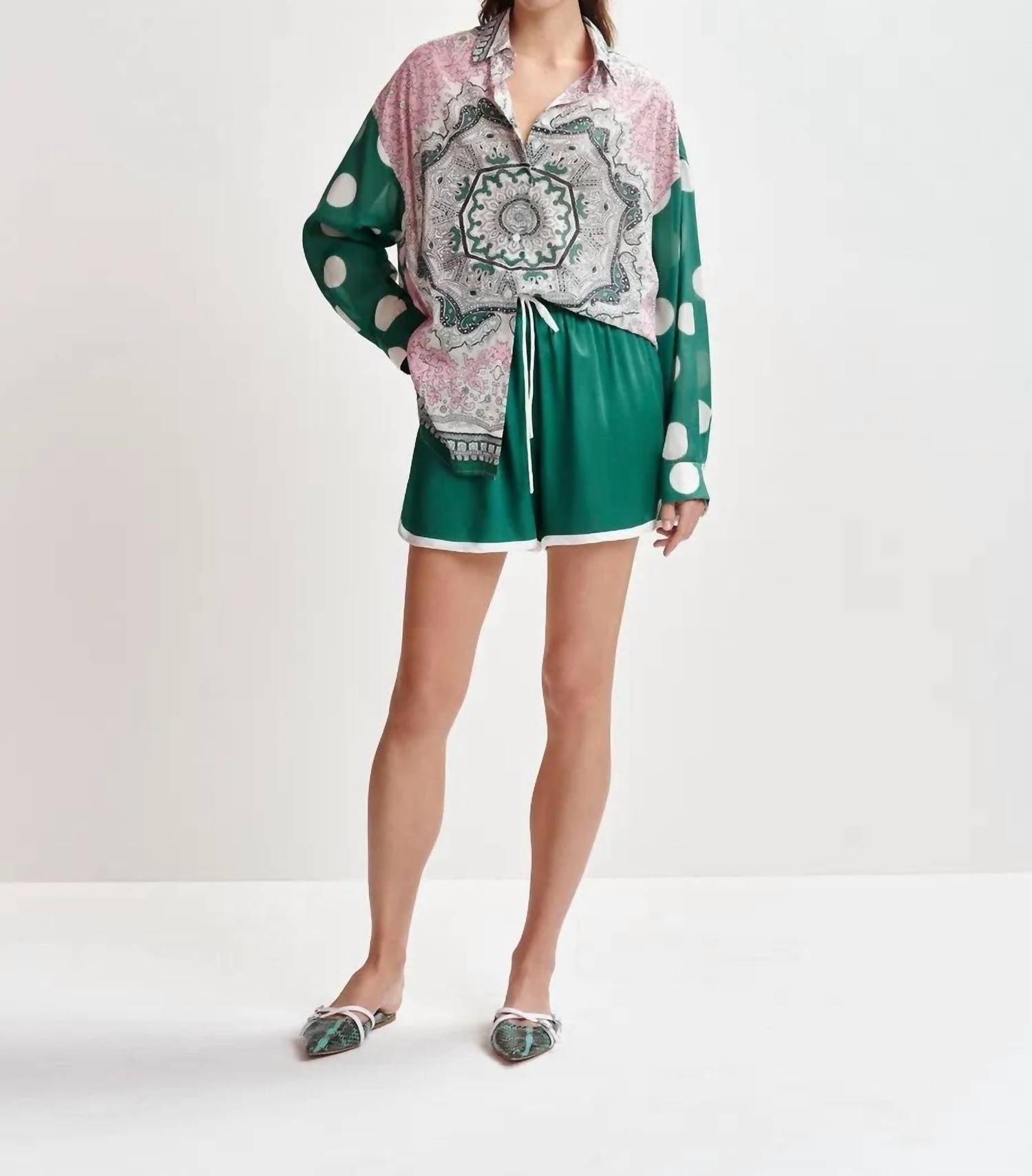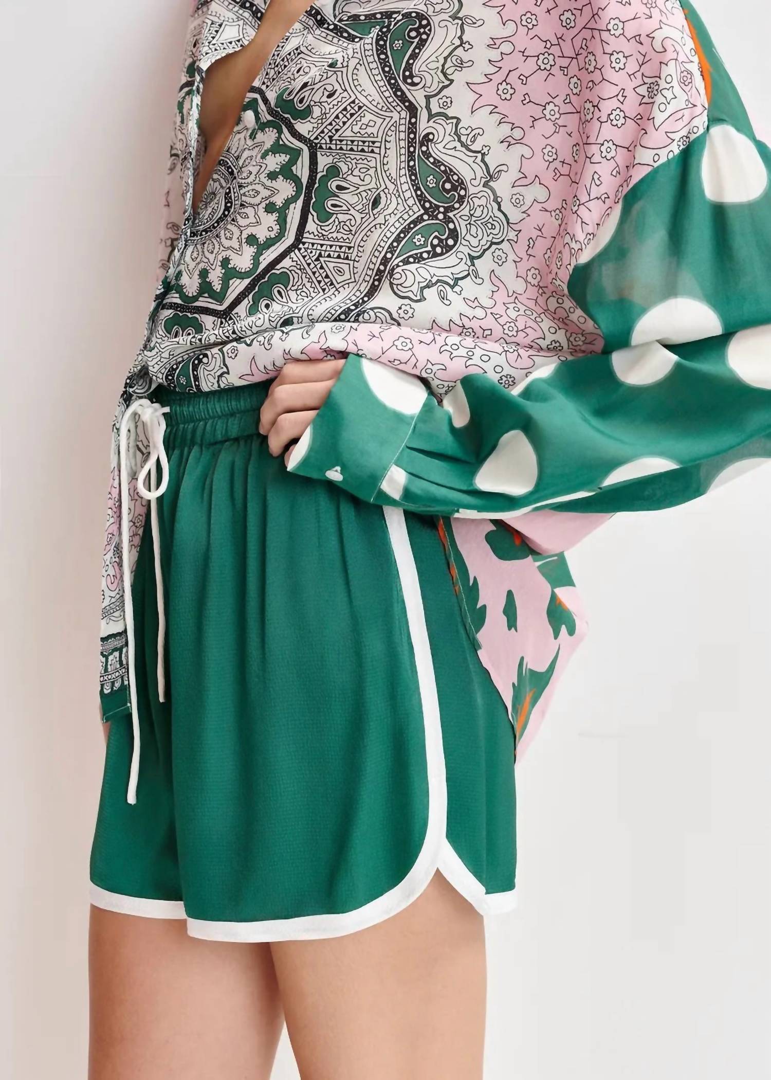 High-waist is here to stay and we especially love this style short. Embrace sporty chic with the Hirginia Mini Shorts by Essential Antwerp, a stylish option designed for both comfort and flair. With a relaxed fit and high-rise silhouette, these shorts are crafted from 100% viscose, ensuring a lightweight and breathable feel. Closure: Pull on with an elasticated waistband featuring a drawstring for a secure fit, and finished with contrasting piping on the sides and hem. Care: Hand wash only. Perfect for a vacation, these tie-dye patterned shorts in Madison Blue offer a laid-back vibe without pockets.