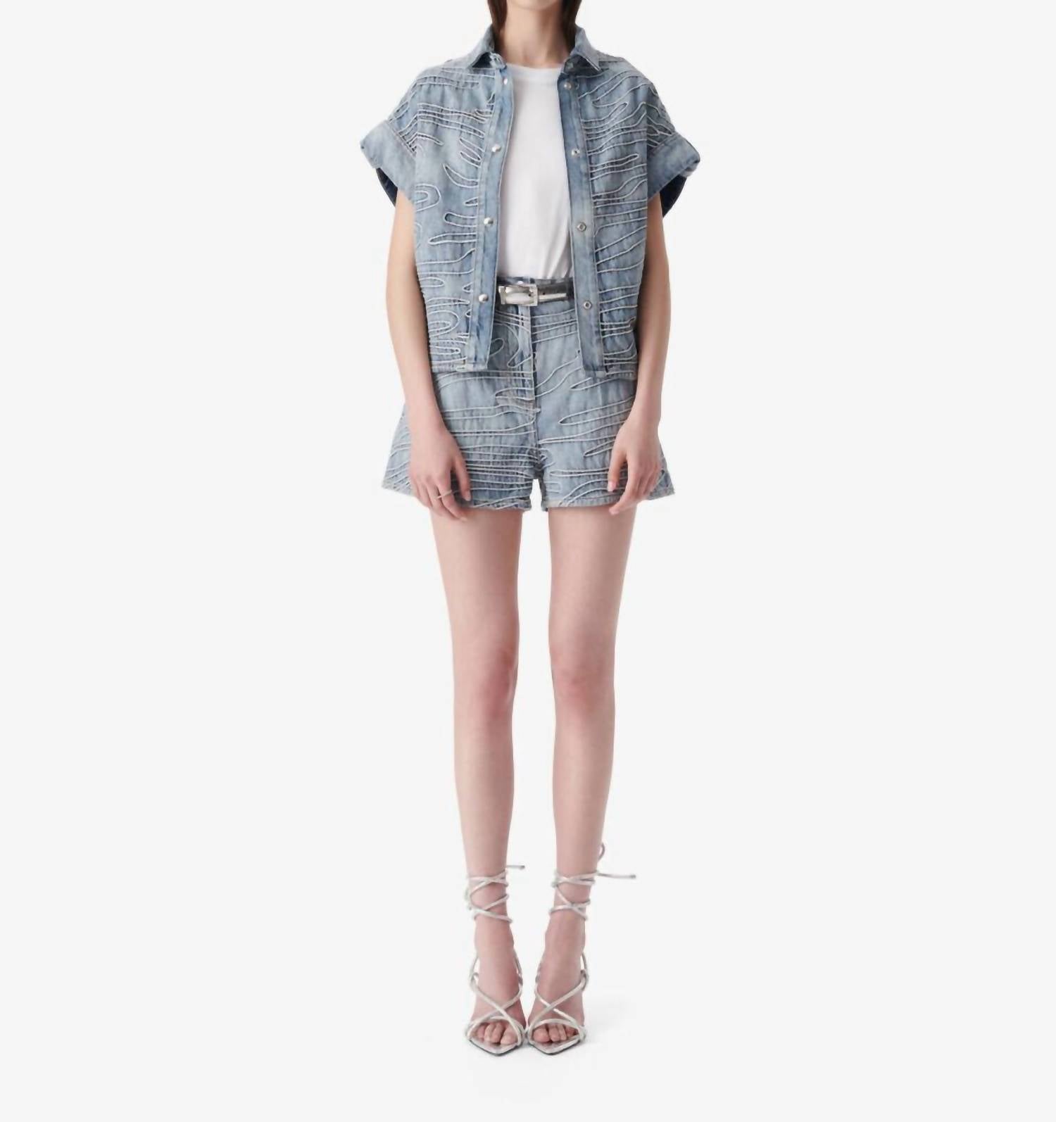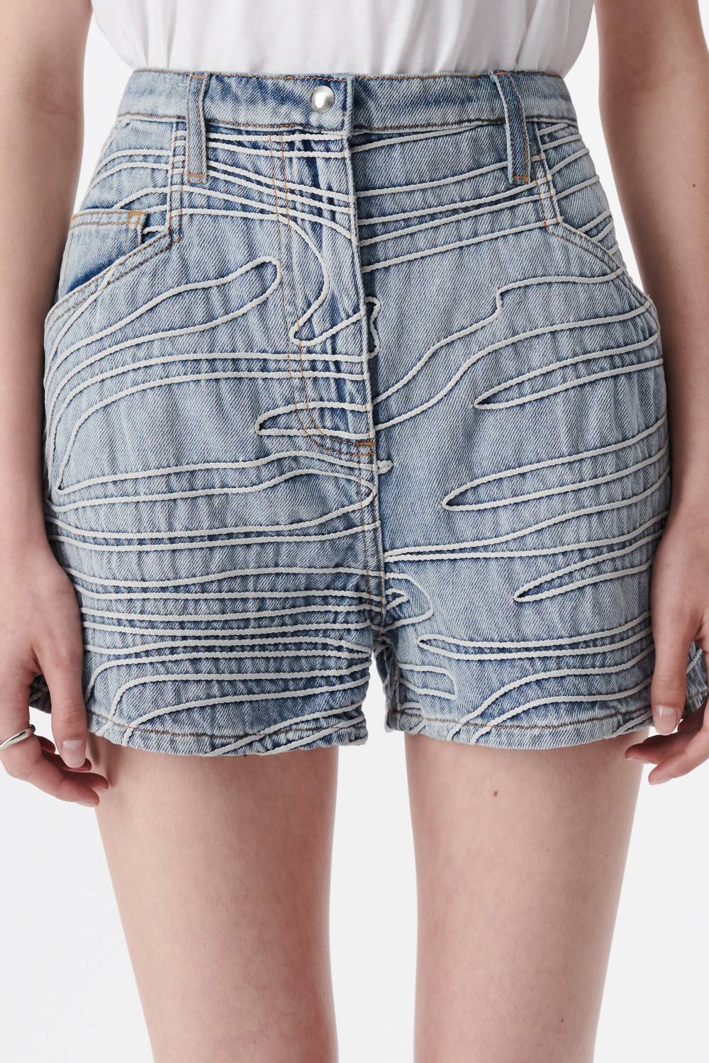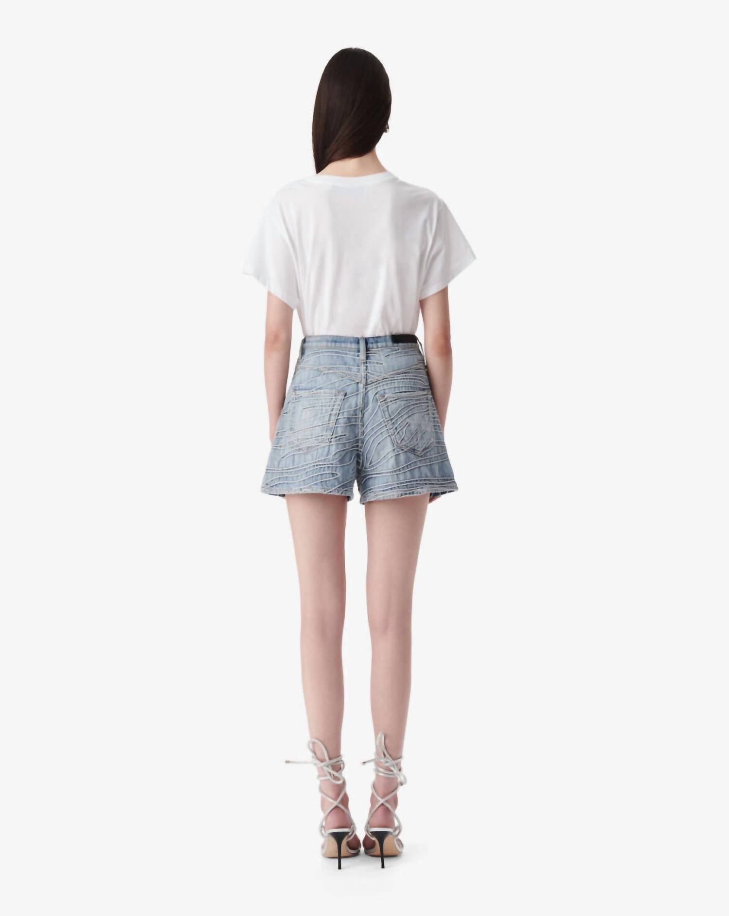 High-waist is here to stay and we especially love this style short. Discover the IRO High Rise Viny Shorts, a stylish addition to your summer wardrobe. These blue denim shorts are crafted from 100% cotton and feature intricate embroidery. They offer a high waist design with functional belt loops and five pockets, complete with a back patch logo. Made in Turkey, these shorts have a button and zip closure and are machine washable, perfect for casual outings or vacation adventures.