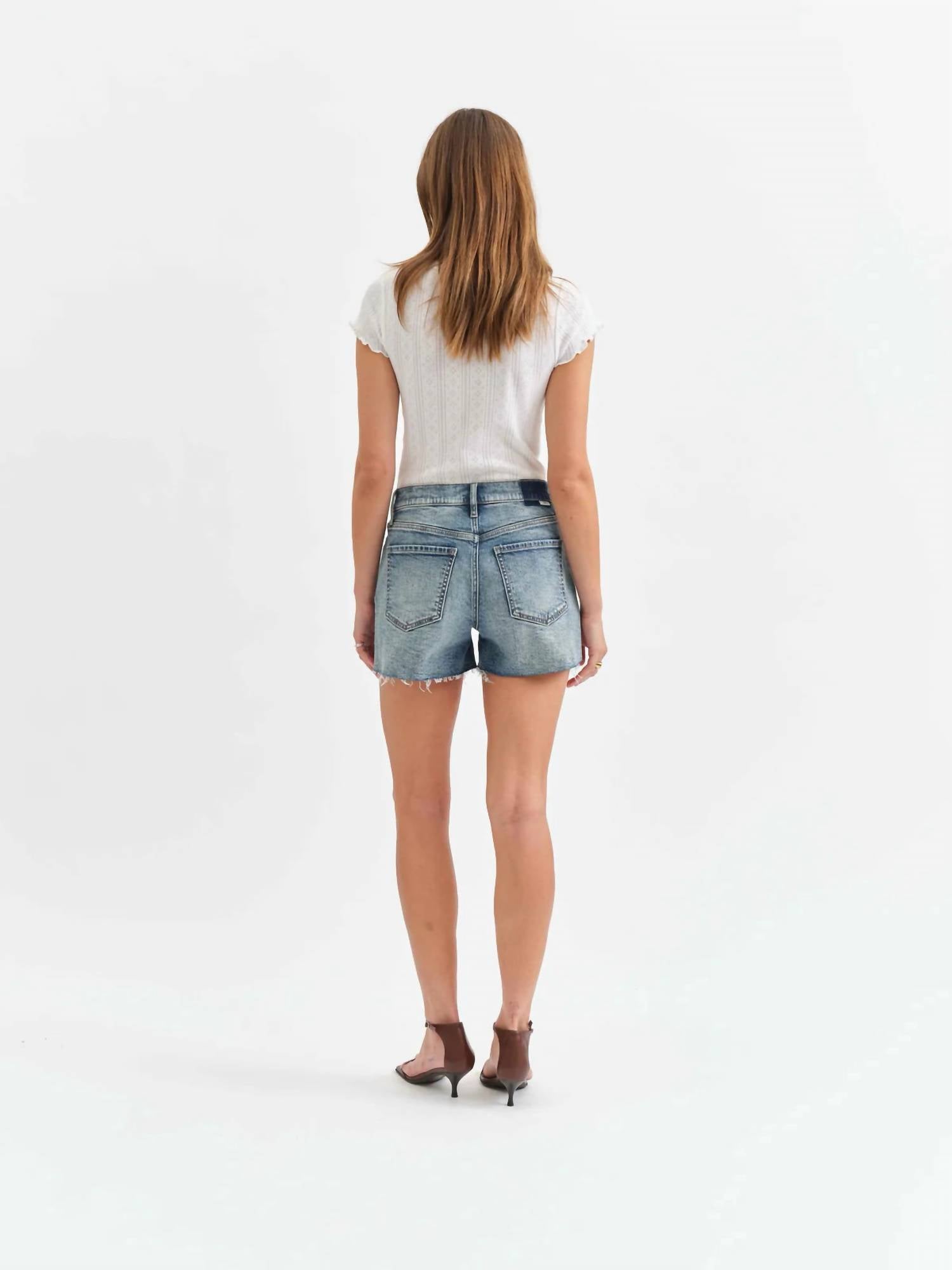 High-waist is here to stay and we especially love this style short. Introducing the Sedona Short by DAZE, a perfect choice for summer festivals with its mid-rise and Y2K trend appeal. Crafted from cotton, these shorts in the New Flame color feature a solid pattern with a 3.5" inseam, and 24.5" leg opening, ensuring a flattering fit. The classic faded medium wash and scissor cut hems add a laid-back vibe, while the button closure and pockets offer practicality and style. Care is simple with machine wash instructions.