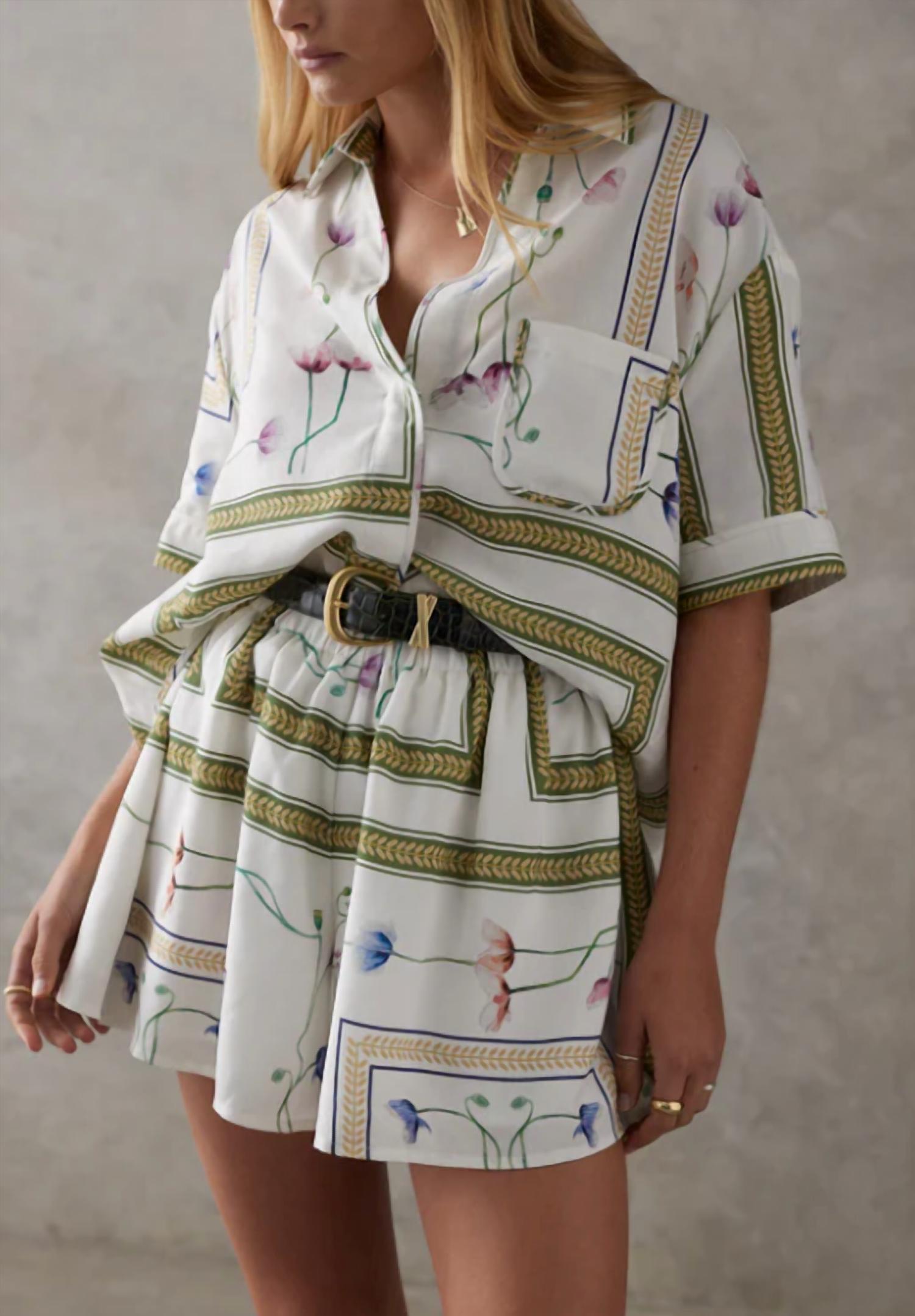 Tuck your favorite tee into these high-waist shorts for a more casual-cool feel. Introducing the Edin With Floaty Hem Shorts by Sancia, an essential for every summer wardrobe in the vibrant Amapola shade. Designed with an elasticated waist and pockets, these high-waisted shorts offer a relaxed fit with a floral pattern that embodies boho chic style. Composition: 75% Tencel Lyocell, 25% OEKO-TEX Linen. Closure: Pull on. Care: Gentle machine wash, line dry.