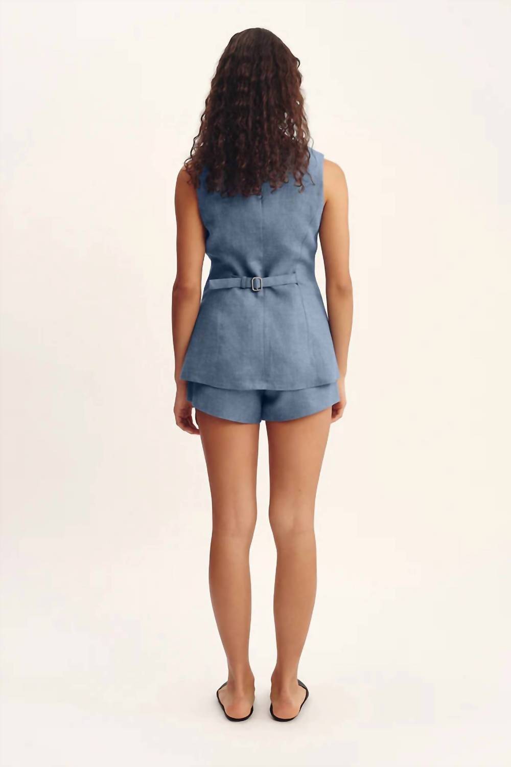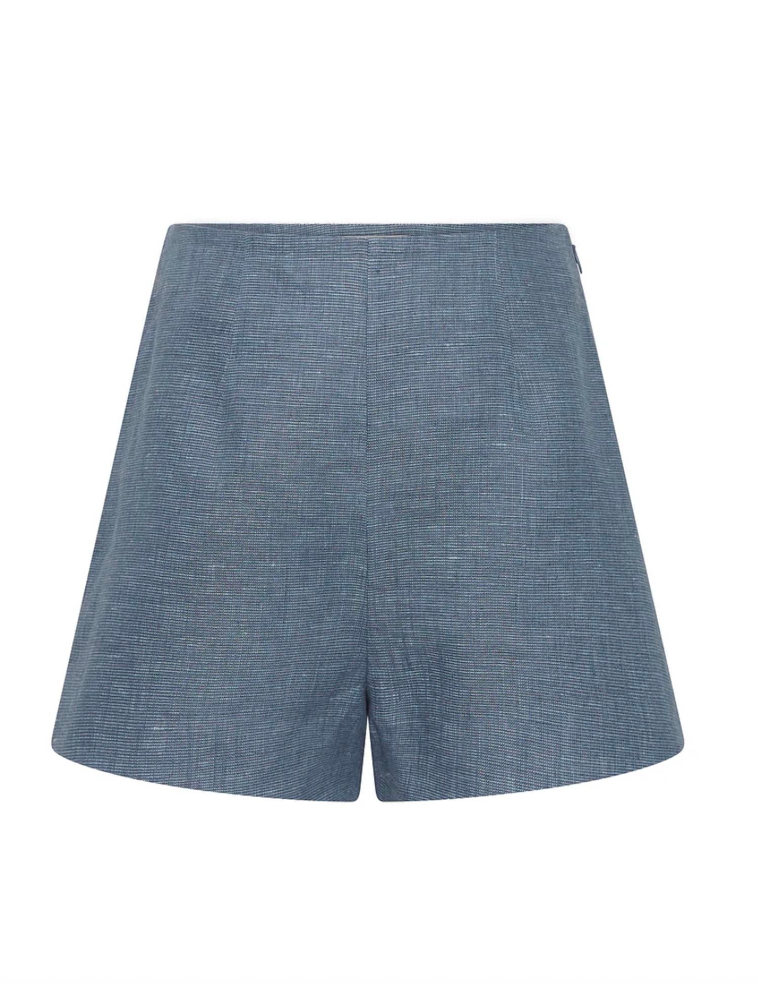 High-waist is here to stay and we especially love this style short. Elevate your summer wardrobe with the Thea High Waist Short by POSSE, available in a chic steel blue shade. These high-waisted shorts are crafted from 100% Linen European Flax, tailored for both comfort and style. Featuring a solid pattern and side zipper closure, they include pockets for added functionality. Perfect for a vacation getaway, these shorts should be cold hand washed to maintain their minimalist appeal.