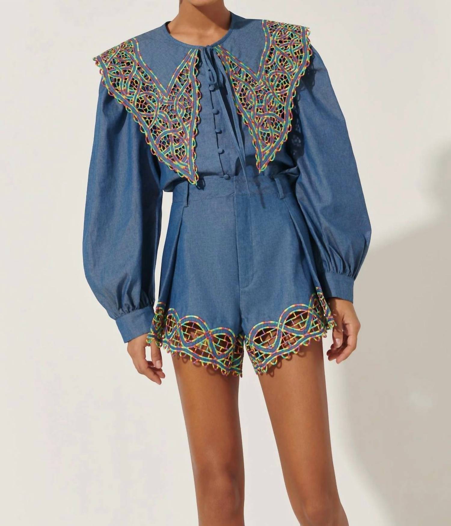 High-waist is here to stay and we especially love this style short. Introducing the Rocio Shorts by CELiA B, an alluring high-waist staple for any wardrobe. Crafted from 100% cotton, these shorts boast vibrant multicolor embroidery in yellows, greens, and oranges. Featuring a back zipper closure, they add a playful flair with a scalloped hemline. Perfect for any occasion, from sunny getaways to nights out, they are a breeze to maintain with dry clean instructions.