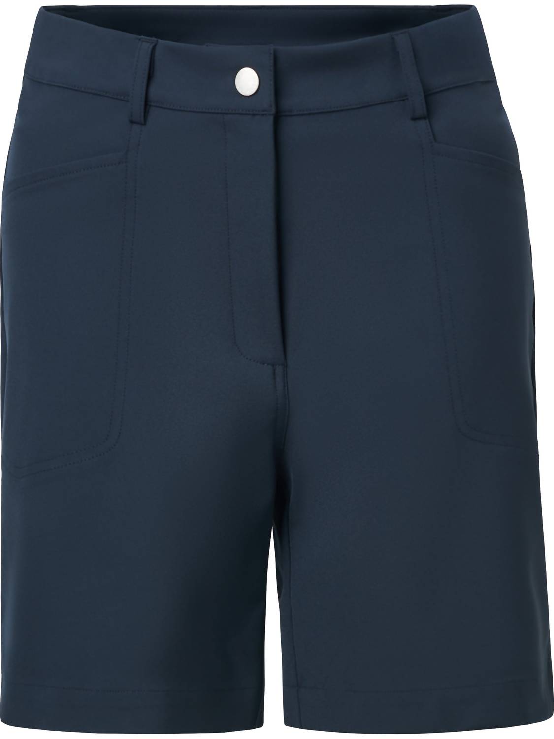 Tuck your favorite tee into these high-waist shorts for a more casual-cool feel. Introducing the Elite 4-Way Stretch High Waist Golf Shorts by Abacus Sportswear US, perfect for your summer game days in a stylish navy hue. These women's athleisure shorts feature a breathable nylon fabric with drycool and wicking effects, delivering maximum comfort on and off the course. They are designed with a zip closure, two front and two back pockets, and a thoughtful silicon tape in the right back pocket to keep your scorecard secure. The inseam measures 6.7 inches (17cm) in size 8, and they are machine washable with a line dry recommendation. Perfect for pairing with your favorite belt, thanks to the convenient belt loops.