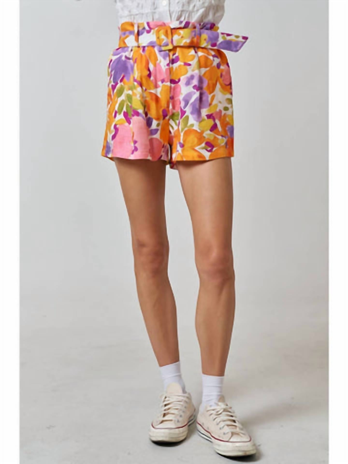 Fit to perfection, we love these high-waist shorts and you will too. Add a burst of vibrant charm to your summer wardrobe with the Alyssa Floral Print Belted Shorts by Lalavon, featuring a captivating floral pattern in pop colors of orange, lavender, pinks, and yellows. Crafted from a luxurious blend of 80% Rayon and 20% Linen, these shorts are lightweight and breathable, perfect for vacation adventures. Designed with a button closure and convenient side pockets, they blend chic style with practicality. Care instructions recommend hand washing cold and line drying, ensuring long-lasting wear for sunny getaways.