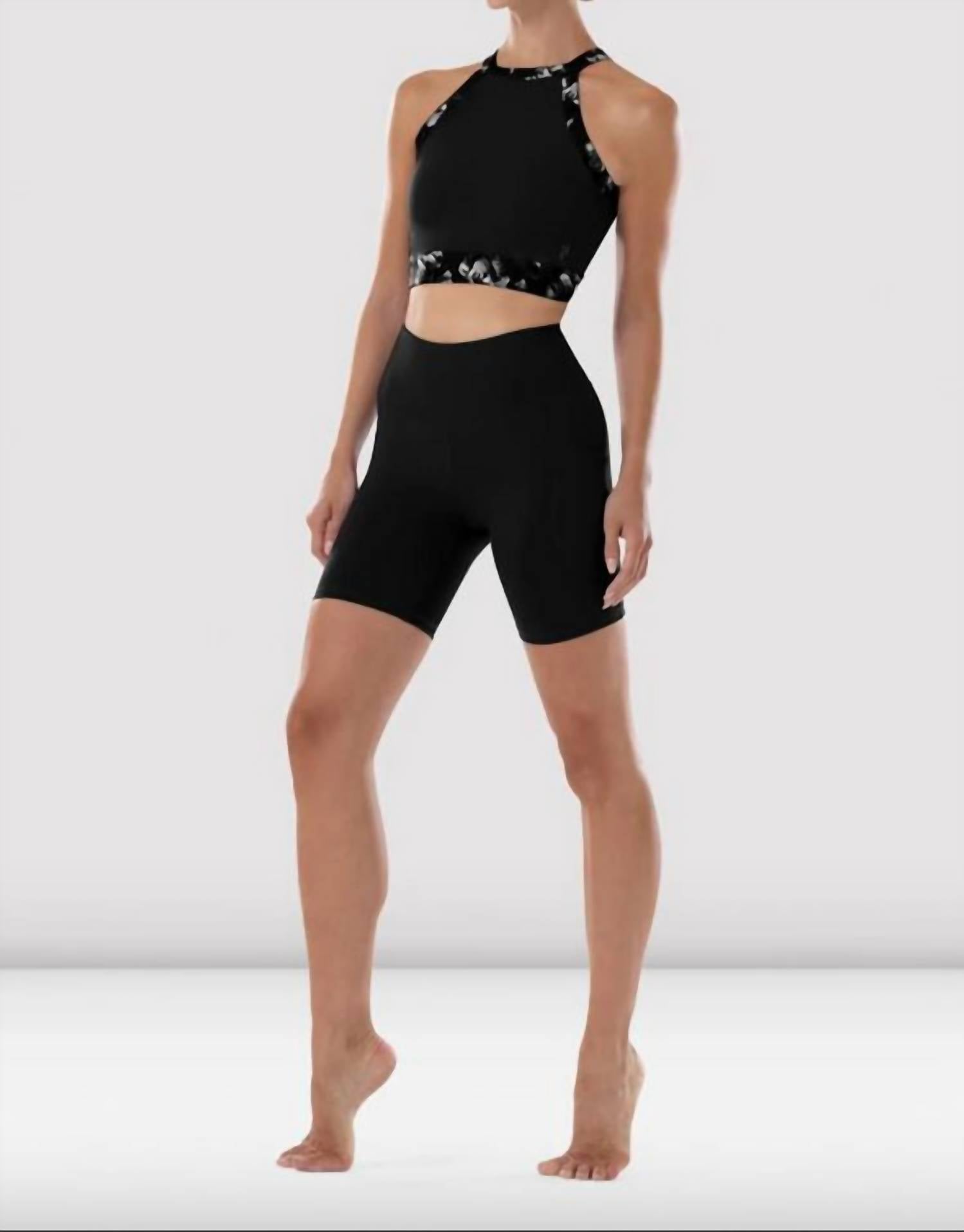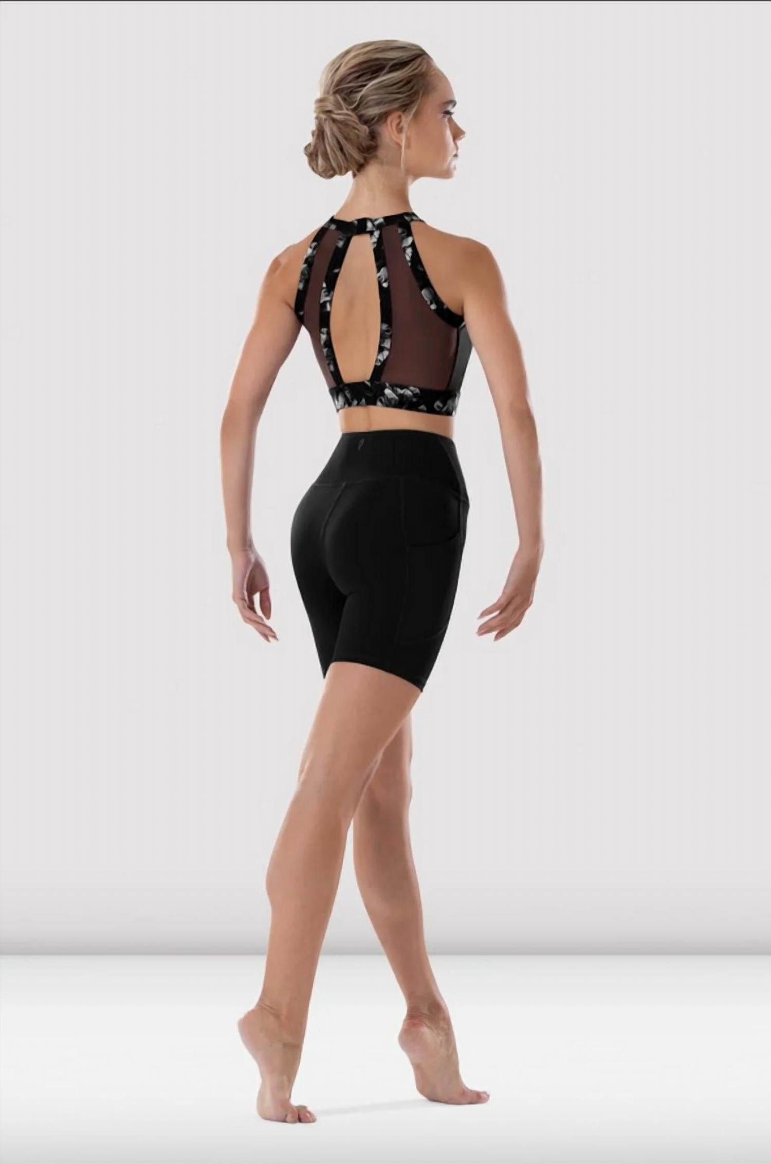 Tuck your favorite tee into these high-waist shorts for a more casual-cool feel. Introducing the Paneled Shorts by Bloch, a sleek and stylish addition to your wardrobe. Crafted from high-quality nylon, these high-waist shorts ensure a comfortable fit for women with a pull-on closure. Featuring a solid black design, they are perfect for versatile styling. For longevity, hand wash and line dry these shorts.