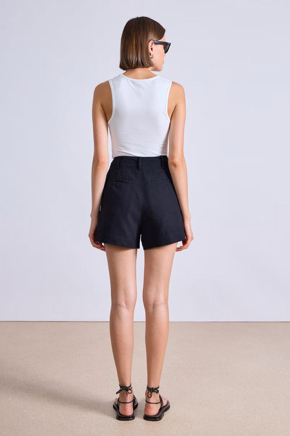 Tuck your favorite tee into these high-waist shorts for a more casual-cool feel. Step into summer style with the Bari Short by APIECE APART, designed with a fitted silhouette perfect for pairing with any top. Expertly crafted from a soft 60% Organic Cotton and 40% Linen blend, these high-waist shorts feature front pleats, front slant pockets, and back welt pockets. Closure is a secure hook and eye, with an inseam of 3.25 inches, made in China. For care, dry clean is recommended or opt for a cold gentle machine wash, lay flat to air dry and use a low iron if needed.