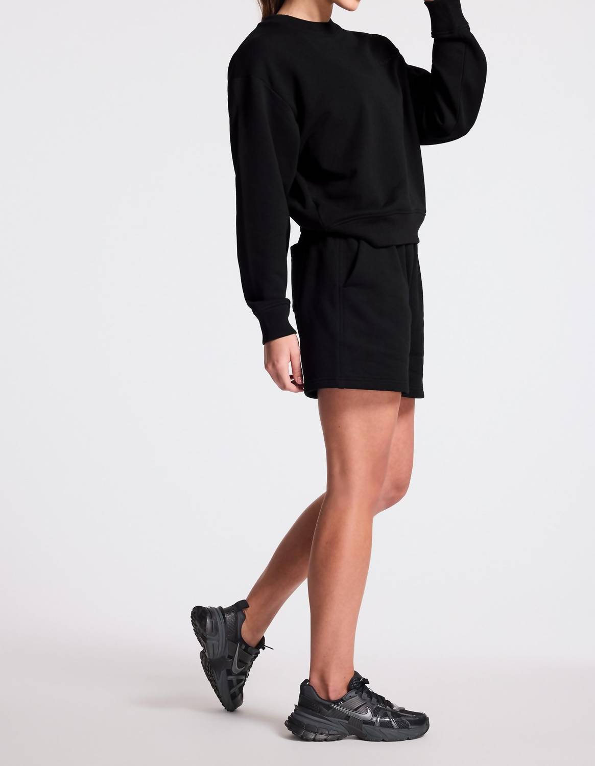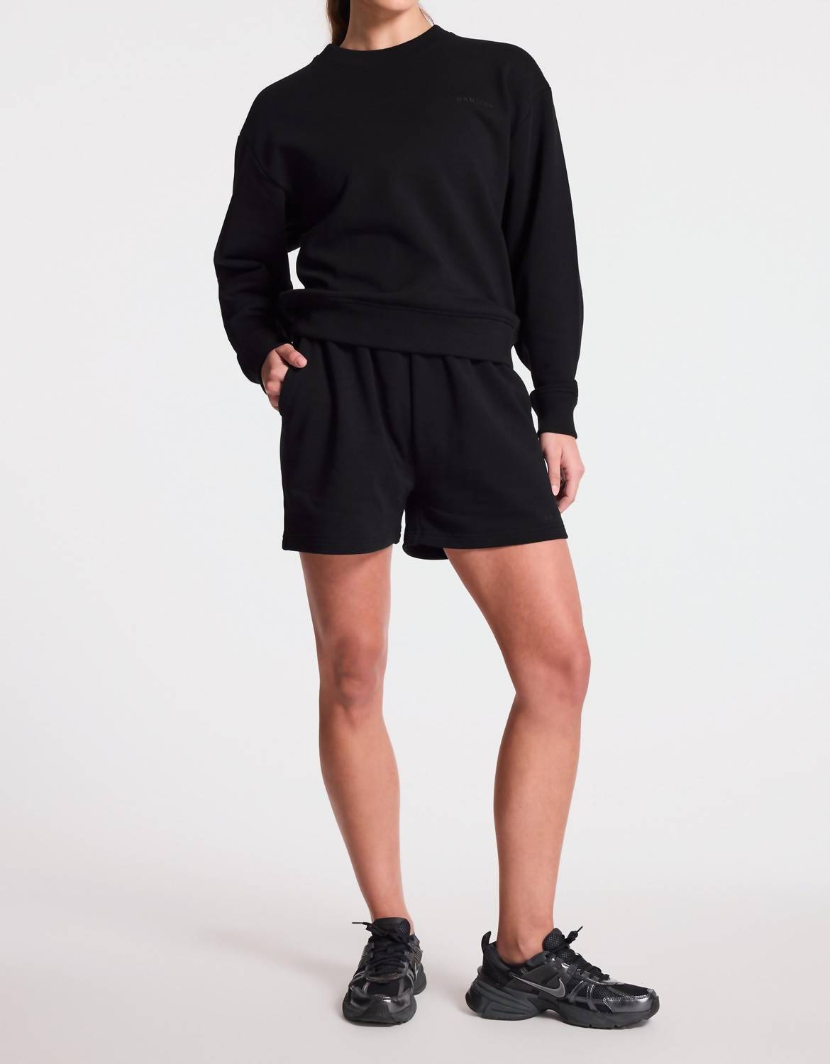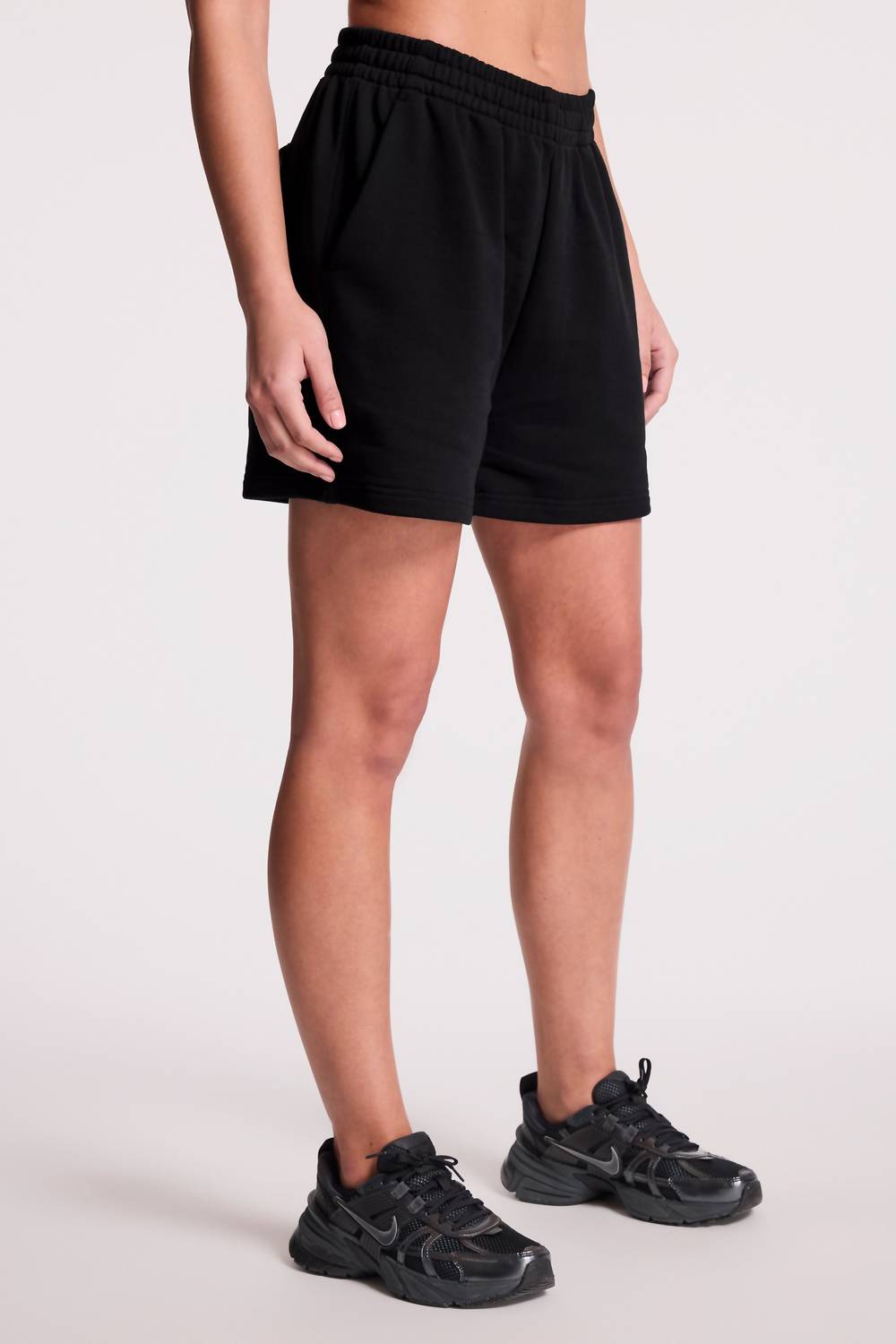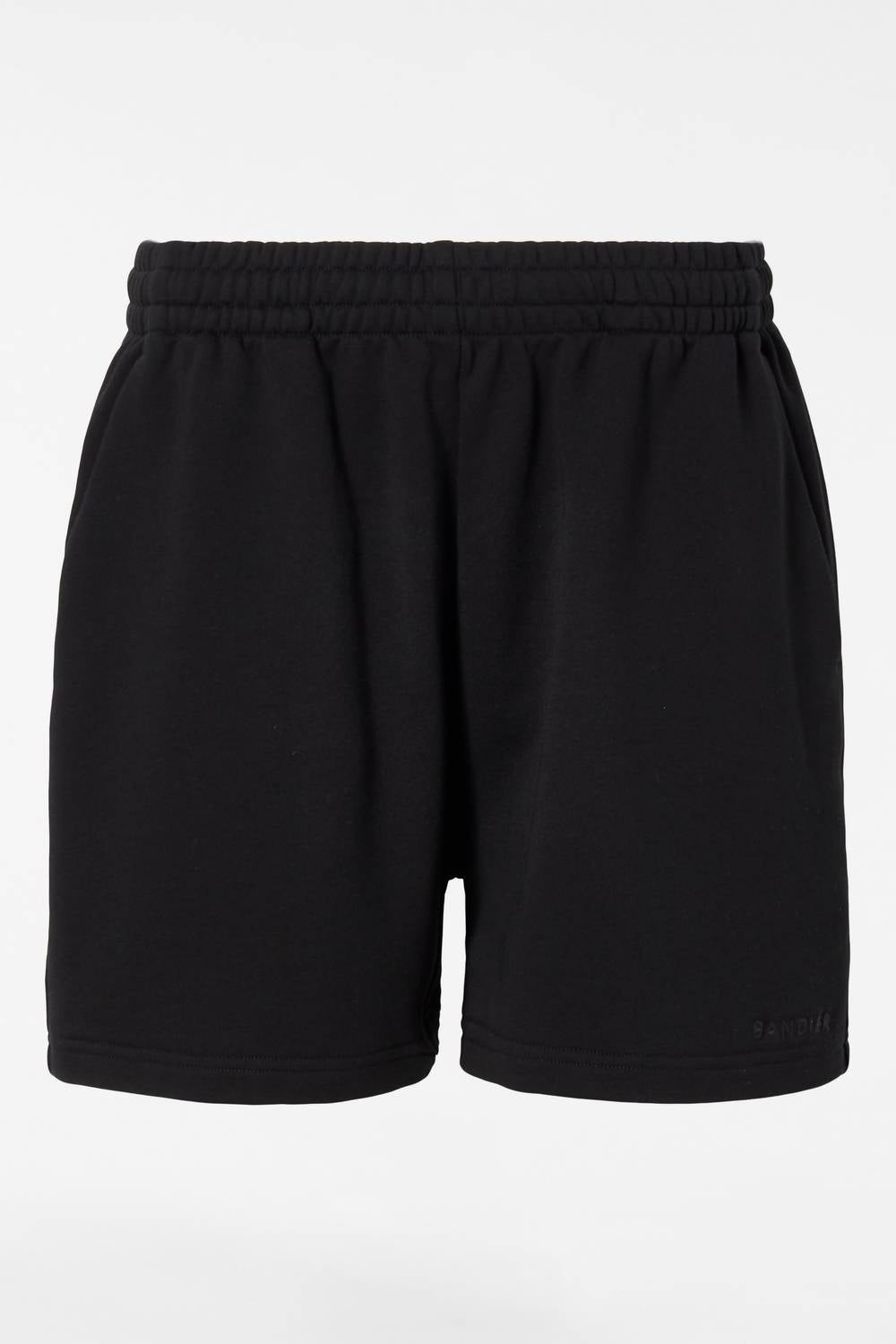 Tuck your favorite tee into these high-waist shorts for a more casual-cool feel. Elevate your loungewear with BANDIER's Classic Logo Terry Sweat Short in Gardenia, a blend of 84% cotton and 16% polyester. These mid-rise shorts feature a pull-on closure with an encased drawcord elastic waistband, offering both comfort and a custom fit. Measuring approximately 18 inches in length, they include practical on-seam side pockets and a back patch pocket. Care is simple with machine wash and tumble dry instructions, while an embroidered logo adds stylish detail to this minimalist design.