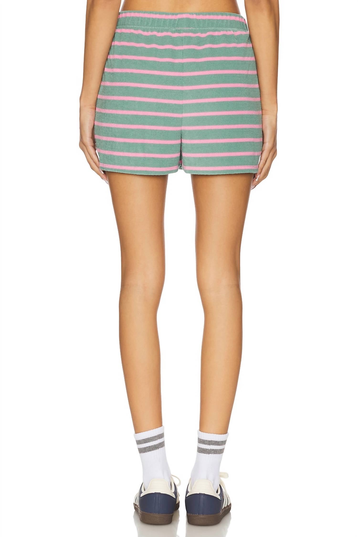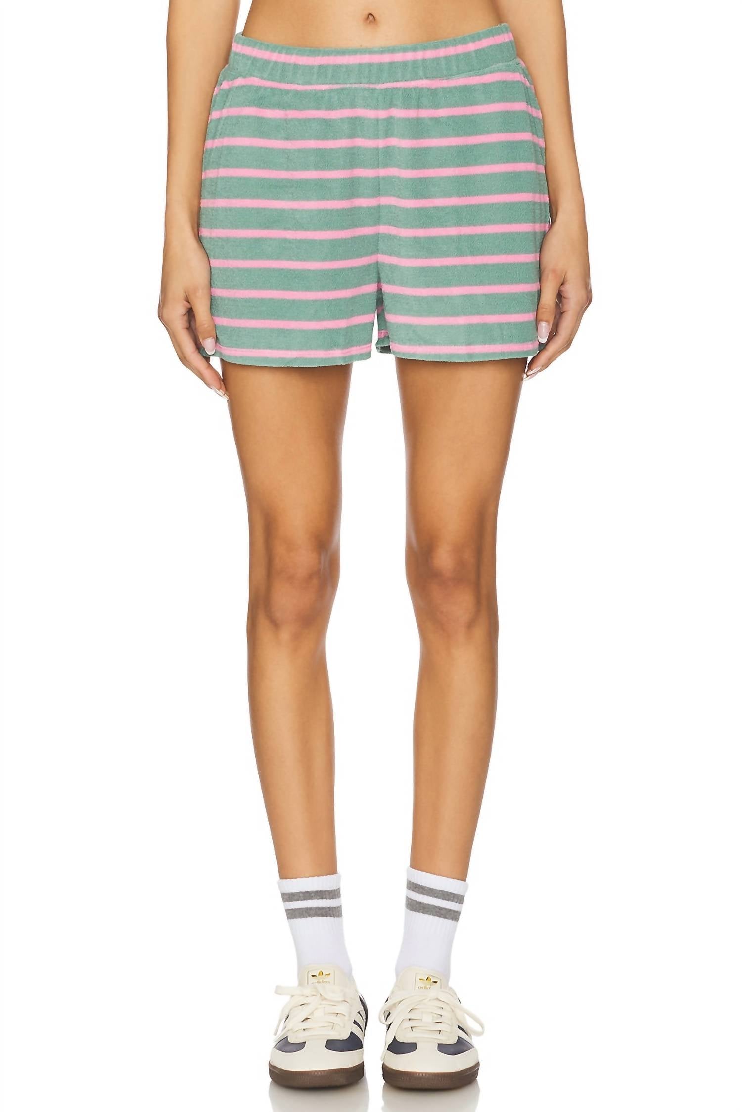 Fit to perfection, we love these high-waist shorts and you will too. Meet the Rayah Short by Beach Riot, a chic addition to your summer wardrobe in a stunning sage bloom stripe. Designed for women, these high-waisted shorts feature convenient pockets and a practical pull-on closure. Composition: Polyester. Care: Machine wash. Perfect for a vacation or embracing 90s fashion trends.