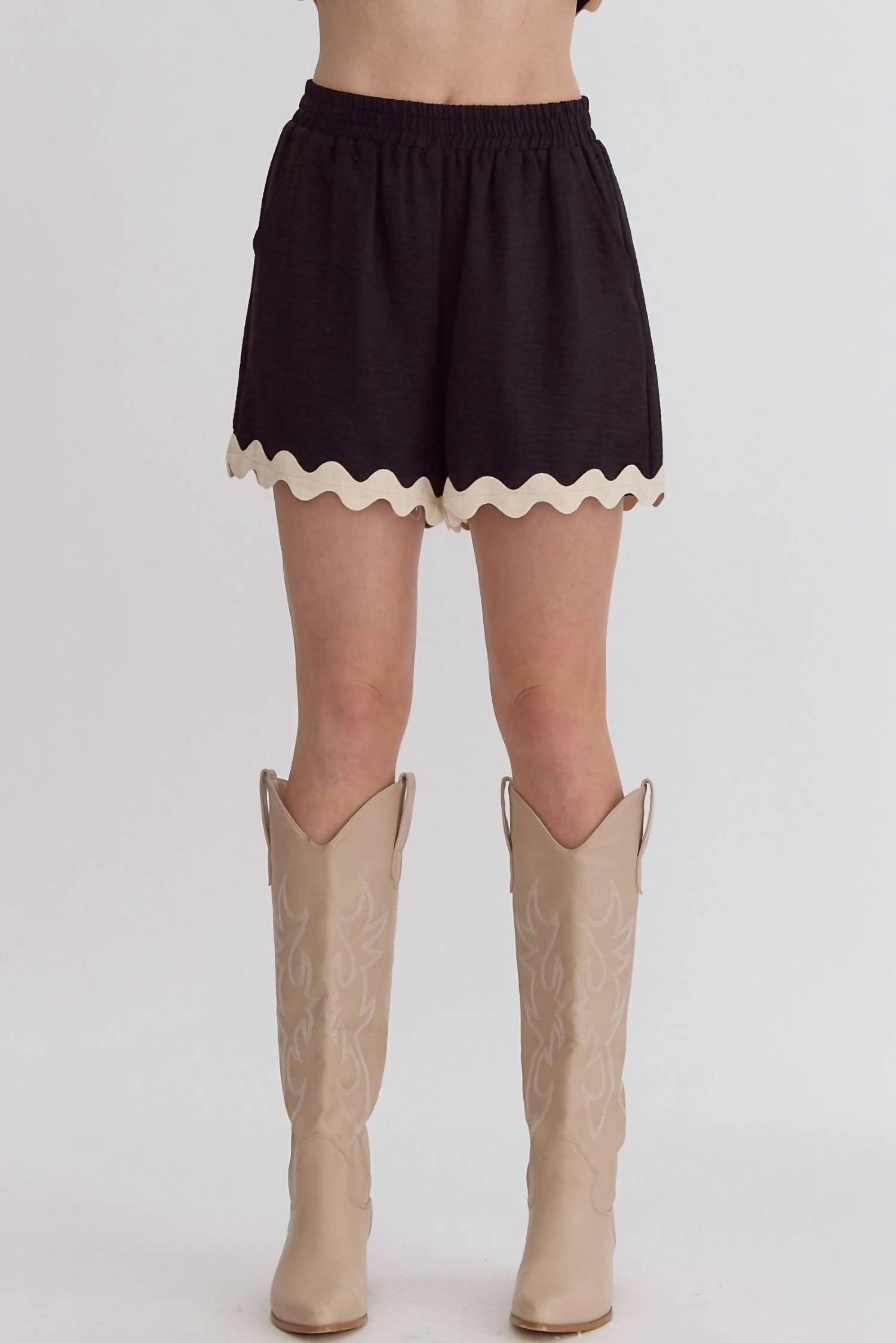 Tuck your favorite tee into these high-waist shorts for a more casual-cool feel. The My Summer Shorts Duo by Entro is the ultimate chic ensemble for warm days, featuring a solid square neck cropped top with playful ric rac trim and high-waisted shorts. Designed in a monochrome brown, the shorts include a comfortable elastic waistband and convenient pockets, offering style and functionality. These lightweight, lined, and non-sheer pieces are perfect for a vacation or Mother’s Day outing. Closure: Pull-on. Care: Machine wash and tumble dry.