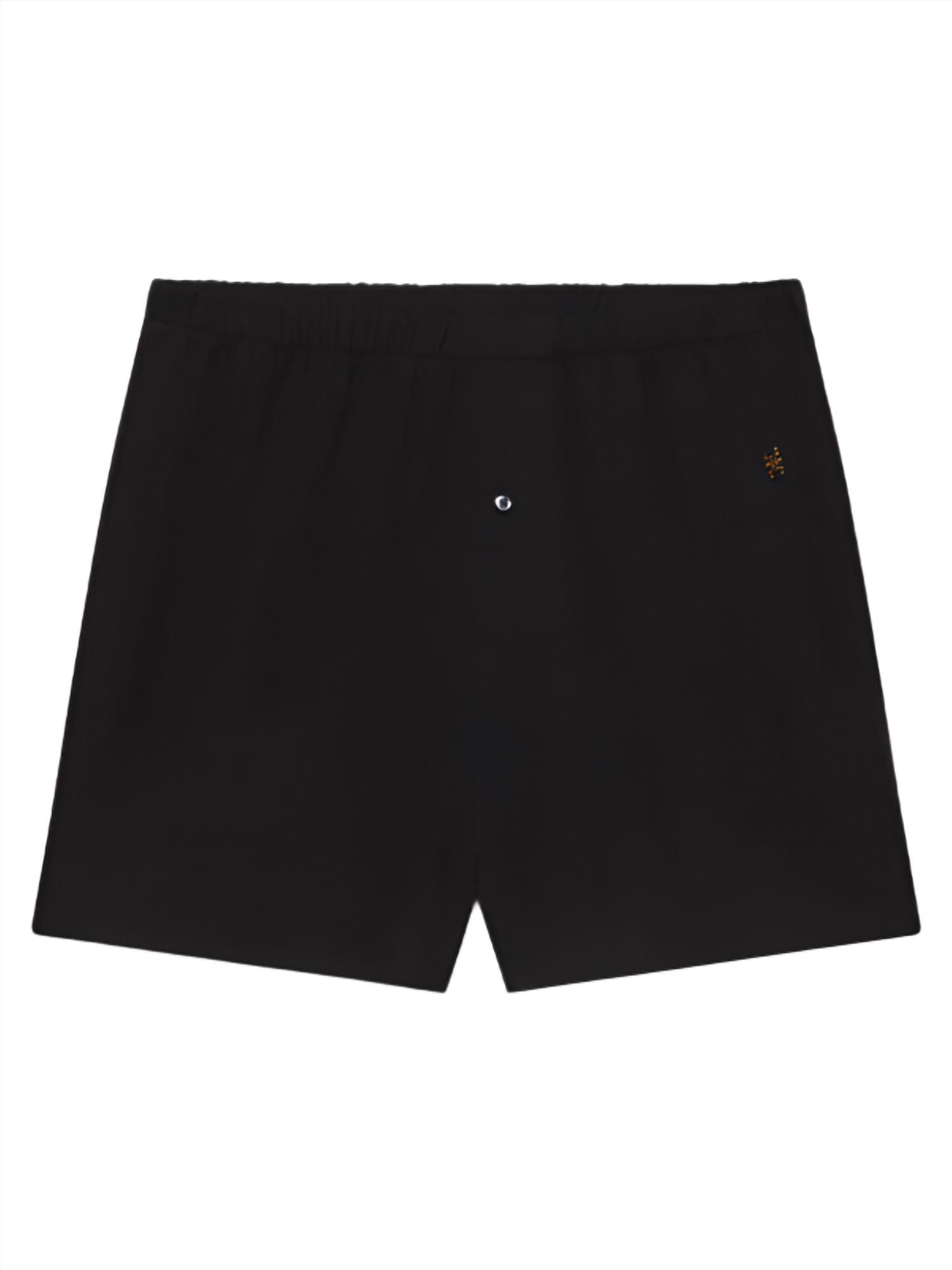 Tuck your favorite tee into these high-waist shorts for a more casual-cool feel. Elevate your summer wardrobe with ÉTERNE's Jude Short, a minimalist staple in textured black cotton. Crafted from 100% lightweight, breathable cotton gauze, it features a high-waist design with a relaxed, loose fit that promises comfort without compromising style. The pull-on closure ensures ease of wear, making it an ideal choice for travel and summer outings. Care for this essential piece is straightforward: machine wash cold with like colors, tumble dry low, and a cool iron if needed.