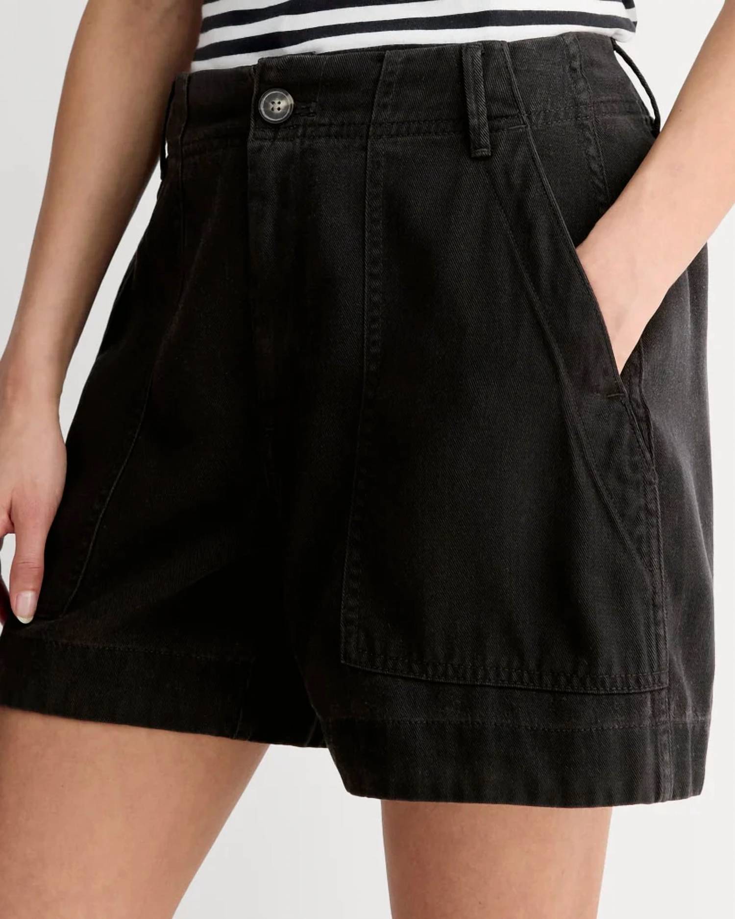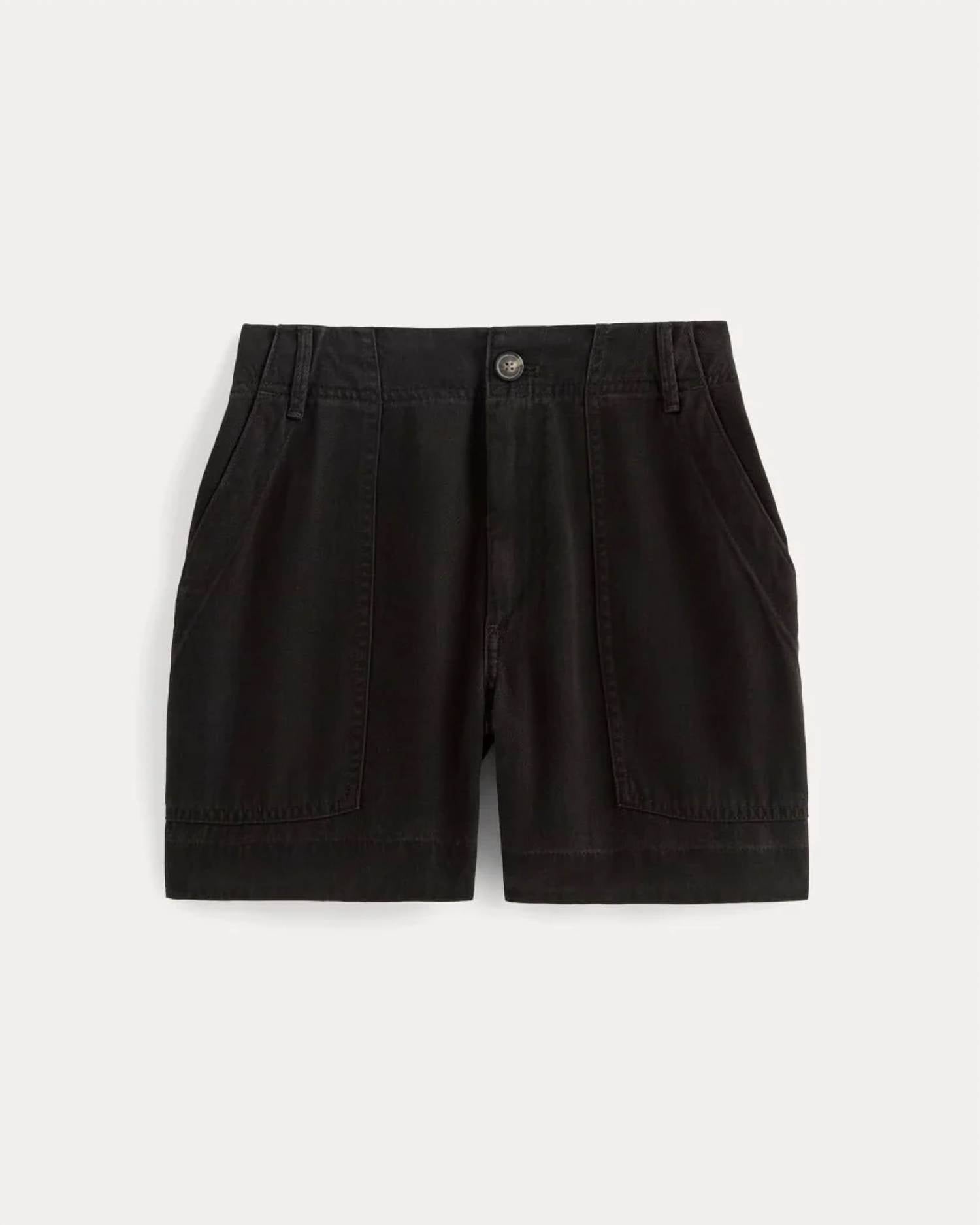 Fit to perfection, we love these high-waist shorts and you will too. Introducing The Utility Short by Everlane, perfect for minimalist summer travel in Buttersoft Black. Crafted from 100% TENCEL™ Lyocell, this midweight, high-waisted piece offers a stylish mid-rise with a 5" inseam. The design features an A-line silhouette with an extended waist, belt loops, and practical front patch and back welt pockets. Originating from Vietnam, these shorts secure with a zip closure and are easy to care for—simply machine wash and line dry.