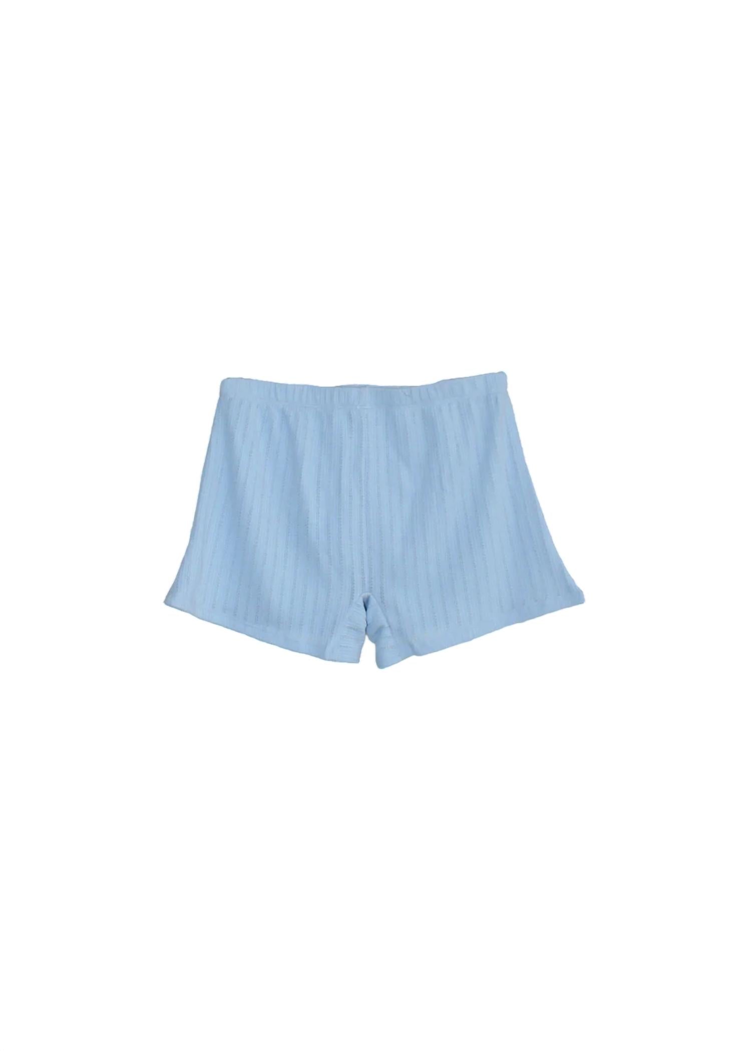 High-waist is here to stay and we especially love this style short. Discover the Pointelle Boxer by Find Me Now, a powder blue essential perfect for minimalist summer style. Crafted from 100% Organic Cotton, these boxers boast a delicate openwork texture, providing medium stretch, softness, and breathability. The pull-on closure complements their relaxed silhouette, and they feature a 2" inseam for comfort. Care for these textured high-waist boxers by hand washing cold and laying flat to dry.