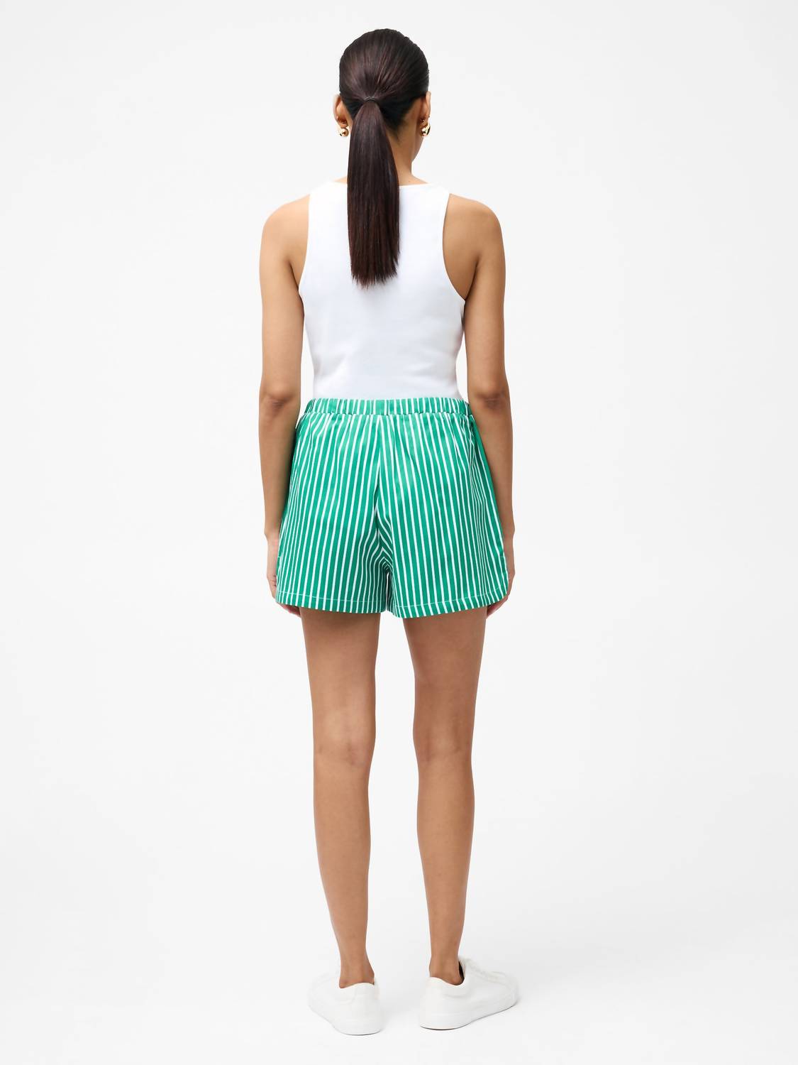 Tuck your favorite tee into these high-waist shorts for a more casual-cool feel. These lightweight striped shorts are designed for comfort and ease, featuring a relaxed silhouette, elastic waistband, and adjustable drawstring. With practical side pockets and breathable cotton fabric, they’re perfect for laid-back days. Style them with a matching shirt for a cohesive, casual outfit.