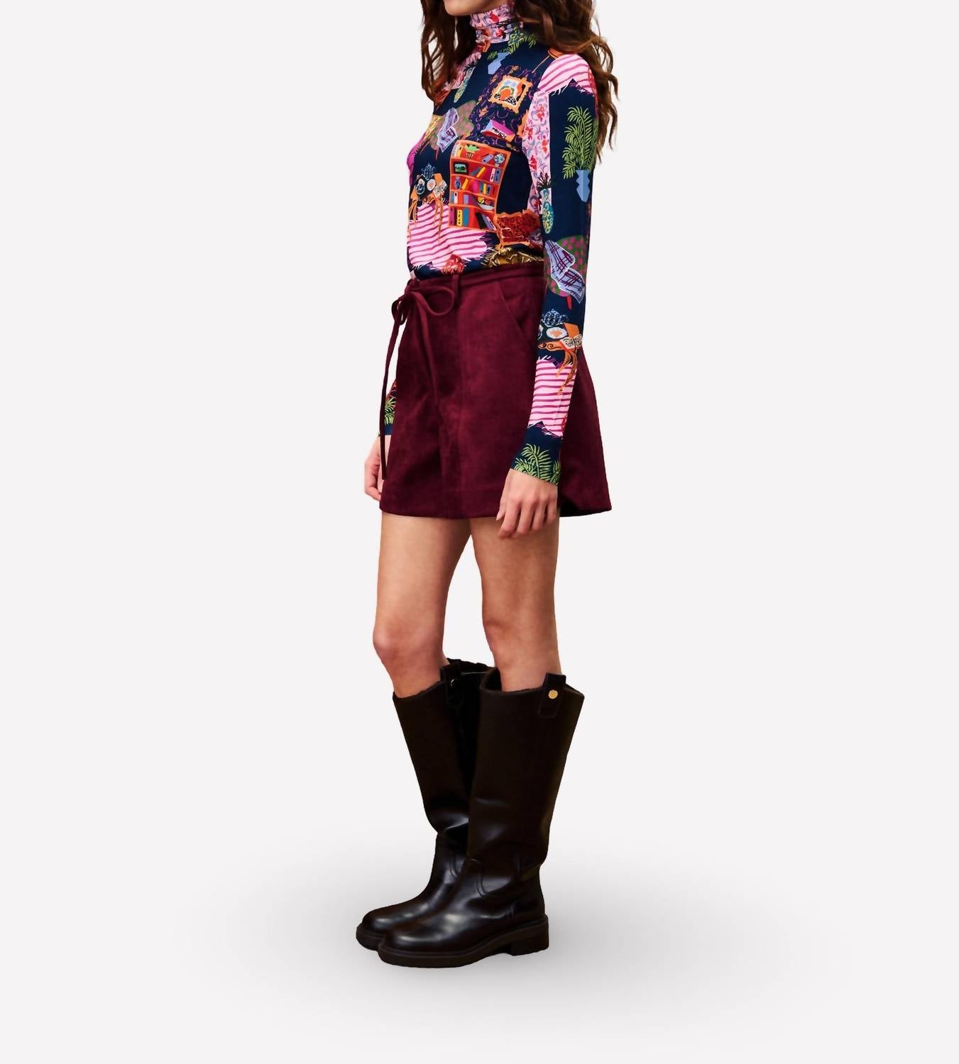 Tuck your favorite tee into these high-waist shorts for a more casual-cool feel. The Ginette Short by FRNCH is the perfect blend of style and comfort for your spring dinner party outfit. Crafted in a rich burgundy hue, these high-waist shorts feature a solid minimalist design with the convenience of pockets. Made from 98% polyester and elastane, they ensure a flattering fit and modern appeal. Closure: Zip closure.