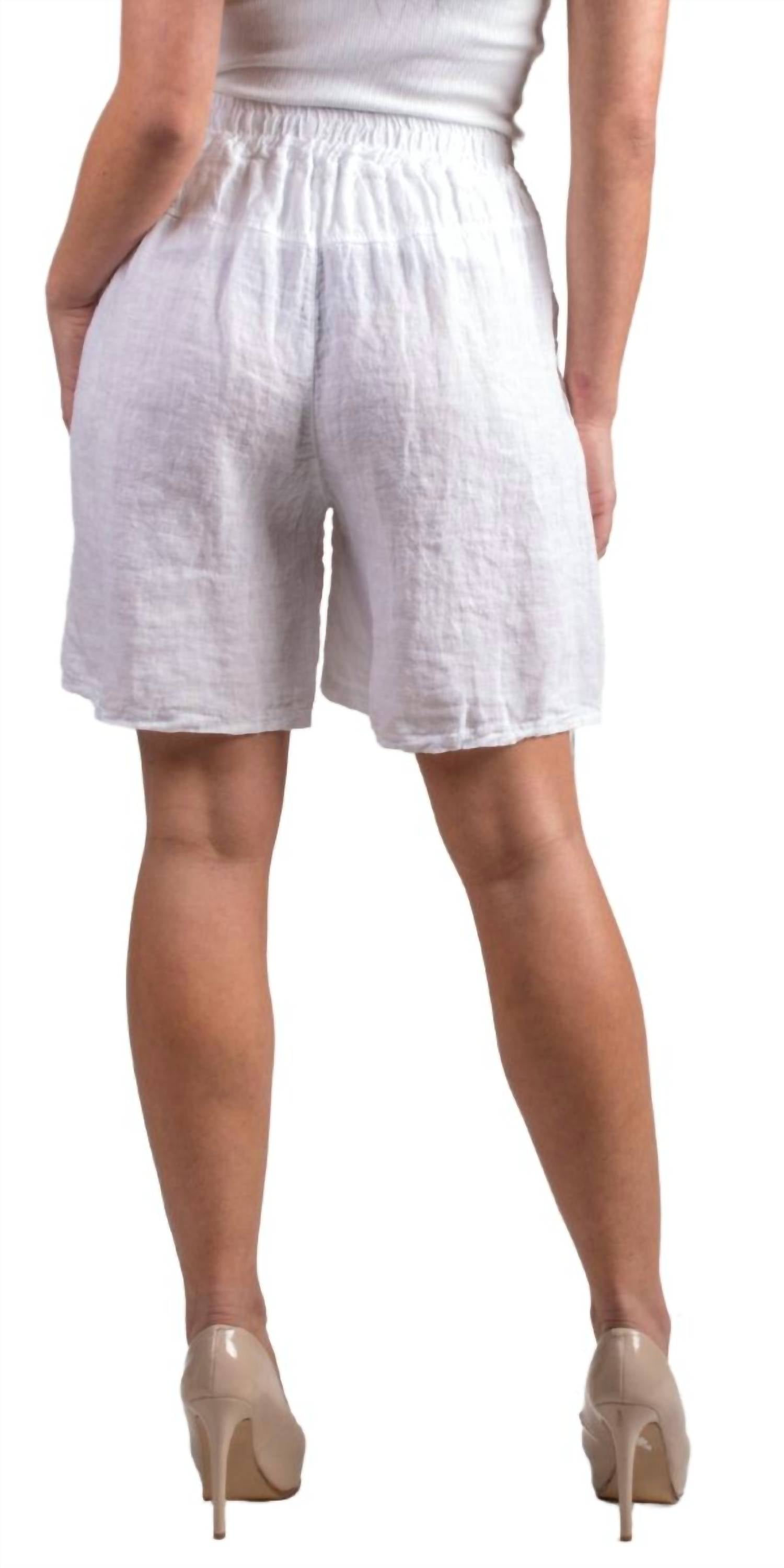 Fit to perfection, we love these high-waist shorts and you will too. Embrace effortless summer style with the Silvana Linen Shorts by GIGI MODA, crafted for a chic travel-ready ensemble. These white, high-waist shorts feature a stretchy elastic waistband with a convenient tie and two side pockets, ensuring both comfort and functionality. Made in Italy from 100% linen, they offer a solid pattern that pairs perfectly with any summer outfit. These pull-on shorts are easy to care for with hand wash and line dry instructions, designed to keep you cool and fashionable on your adventures. Model is 5'7" and wears one size.