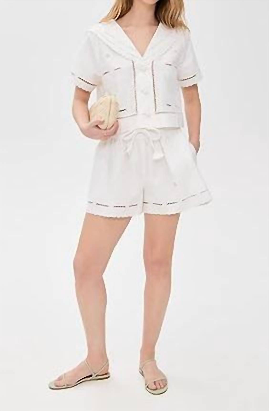 High-waist is here to stay and we especially love this style short. Elevate your summer wardrobe with the Fern Cotton Short by Hunter Bell, perfect for minimalist vacation looks. Crafted from 100% cotton, these high-waisted shorts feature a hook-and-eye with a hidden side zip closure, providing a sleek finish. Designed in a solid white pattern, they offer a clean and versatile aesthetic. Care for these imported shorts with dry clean only instructions to maintain their pristine condition.
