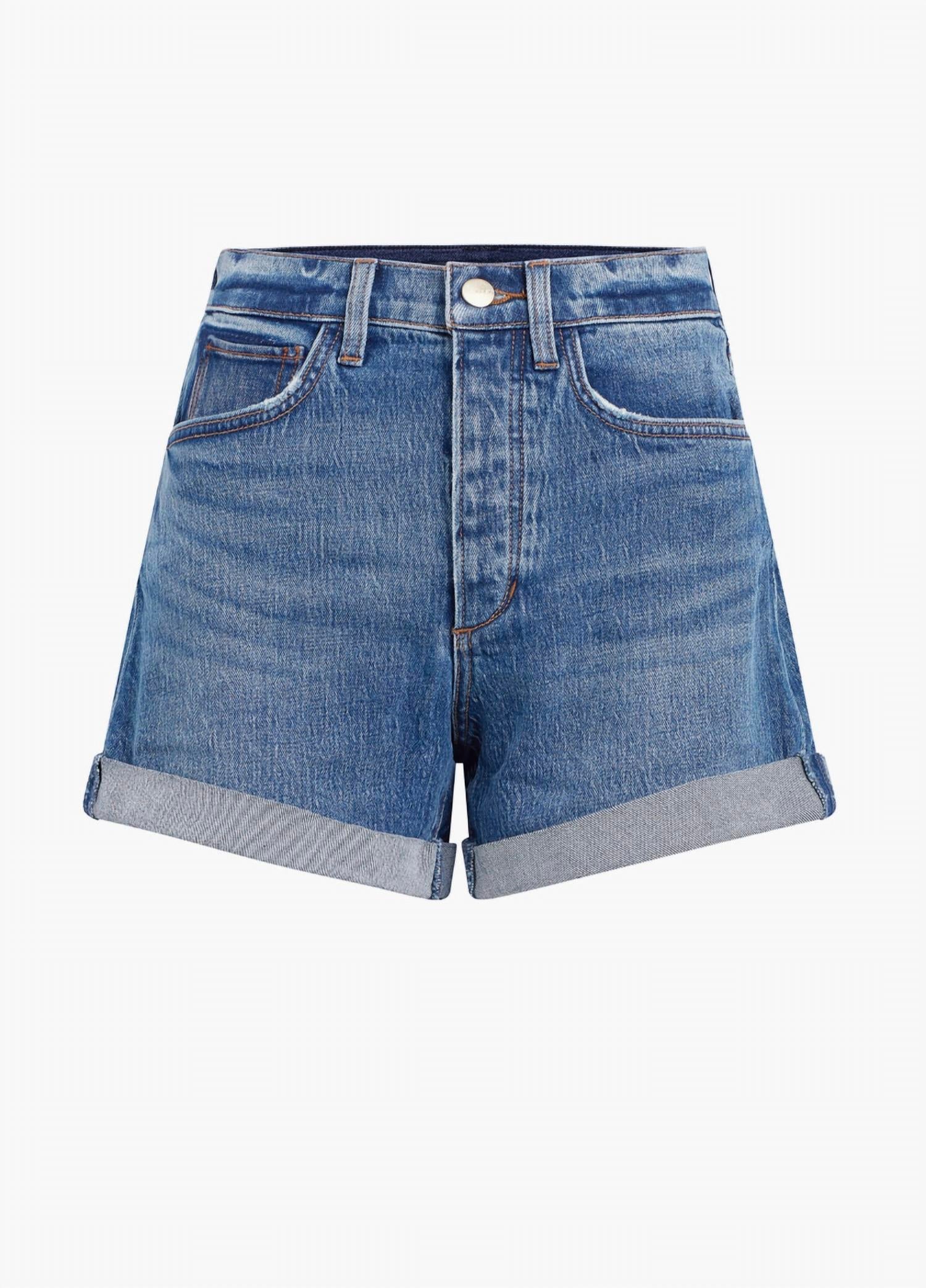 Fit to perfection, we love these high-waist shorts and you will too. Discover the Alex High Rise With Rolled Hem Short by Joe's Jeans, an essential piece for a chic summer look. These shorts feature a high-rise design with a relaxed fit, finished in a stylish "Savage" medium blue wash with vintage-inspired hand sanding and rolled hems. The composition is a cotton blend, offering comfort with 99% Cotton and 1% Elastane, and includes convenient pockets. Closure is secured with a zip, and care is easy with machine washing and tumble drying recommended. Perfect for vacation wear with a minimalist and solid pattern aesthetic.