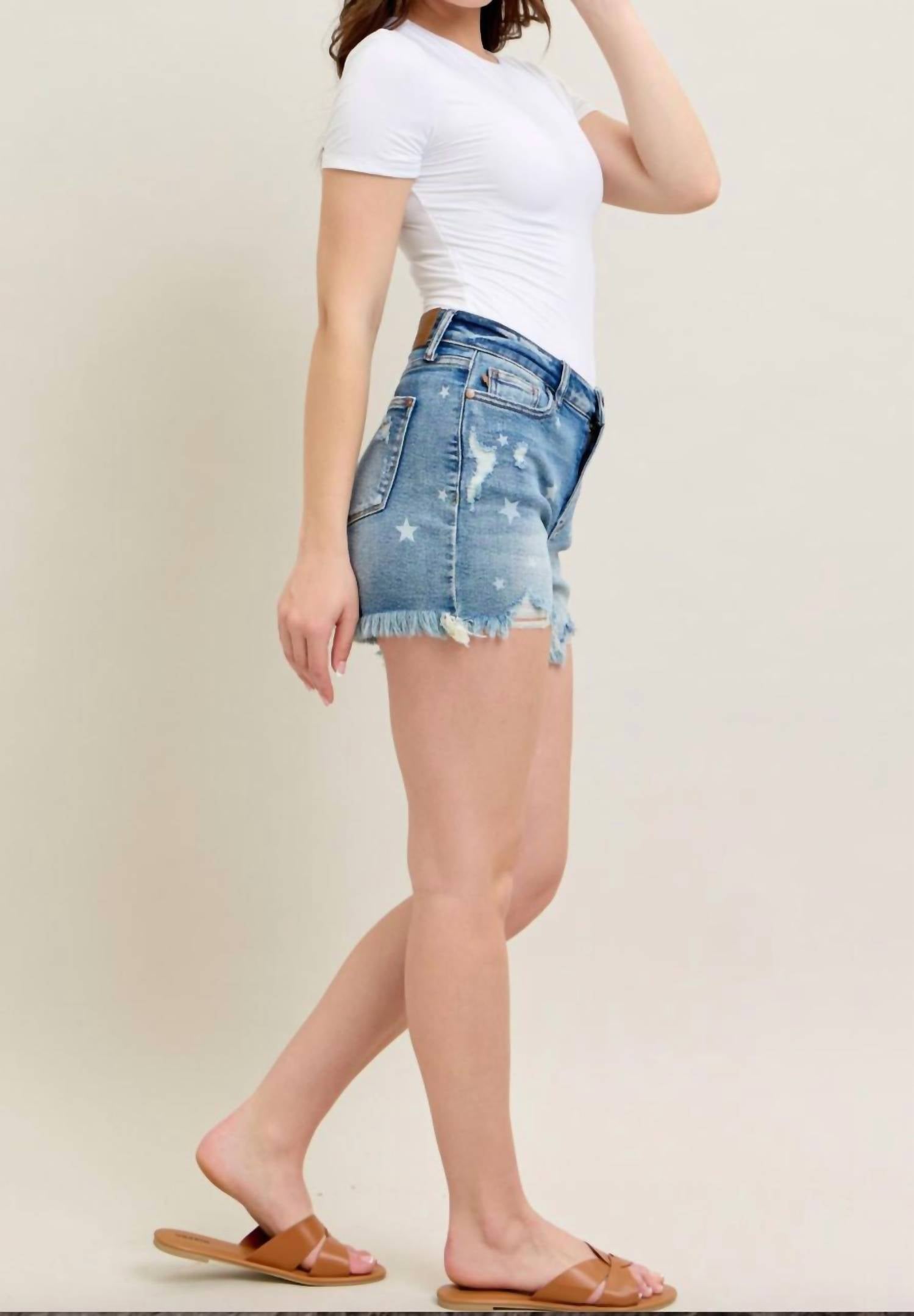 Judy Blue - High Waisted Star Print Cut Off Destroy Shorts
