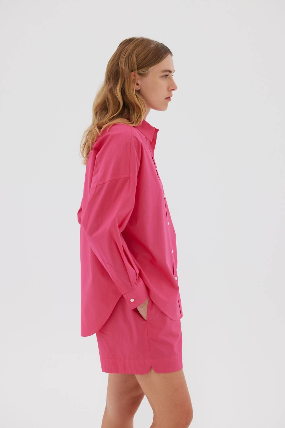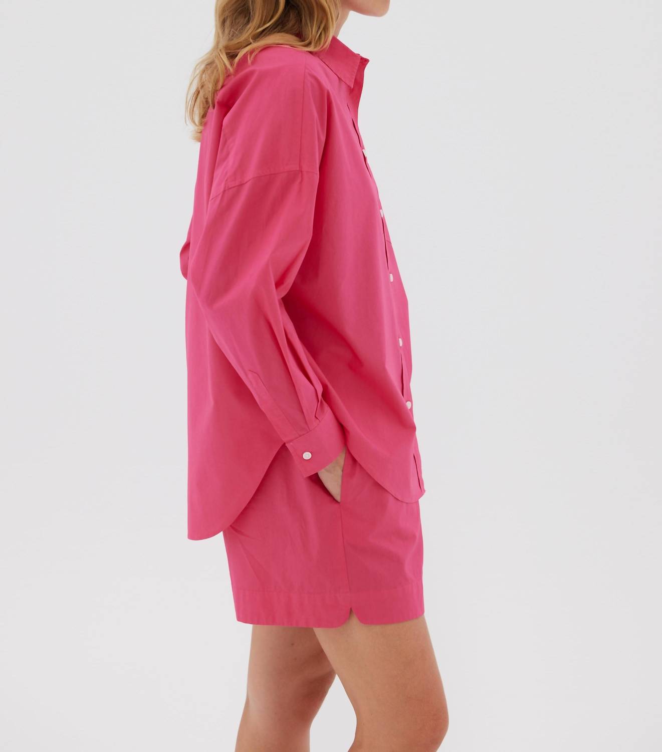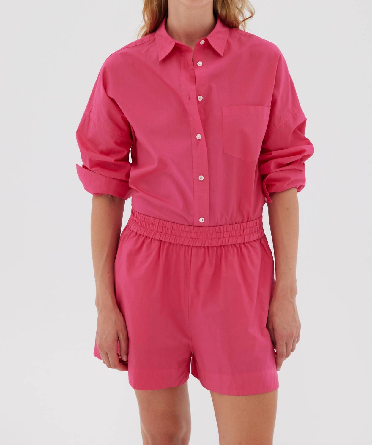 Fit to perfection, we love these high-waist shorts and you will too. Discover the Chiara Shorts by LMND, an effortlessly chic choice ideal for your vacation wardrobe. These high-waisted women's shorts in a vibrant raspberry hue bring a lively pop of color to summer outings. Crafted from pure cotton for all-day comfort, they feature a solid pattern and a practical pull-on closure with handy pockets. While specific care instructions aren't provided, the cotton material ensures breathability and ease of wear.