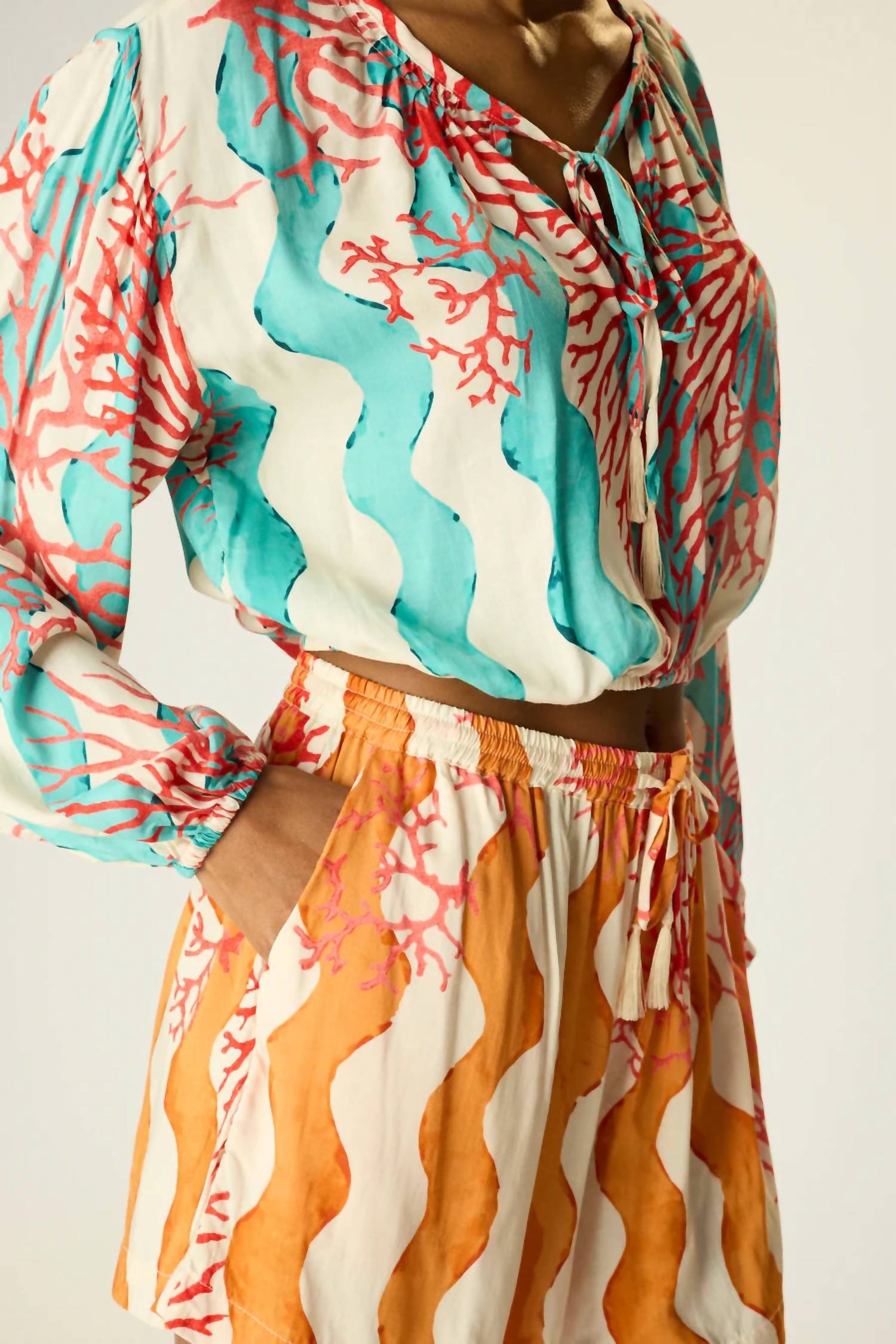 High-waist is here to stay and we especially love this style short. Meet the Jasper Pull-On Short by Natalie Martin, a perfect blend of style and comfort for your summer adventures. These women's shorts in Coral Wave Honey feature an easy pull-on closure with a relaxed fit, while an elastic drawstring waist and side pockets add to the convenience. Crafted from 100% cotton, they are breathable and soft, ideal for travel and casual gatherings. Care: Machine wash and line dry. Available in sizes XS to L, fitting most sizes 0-12.