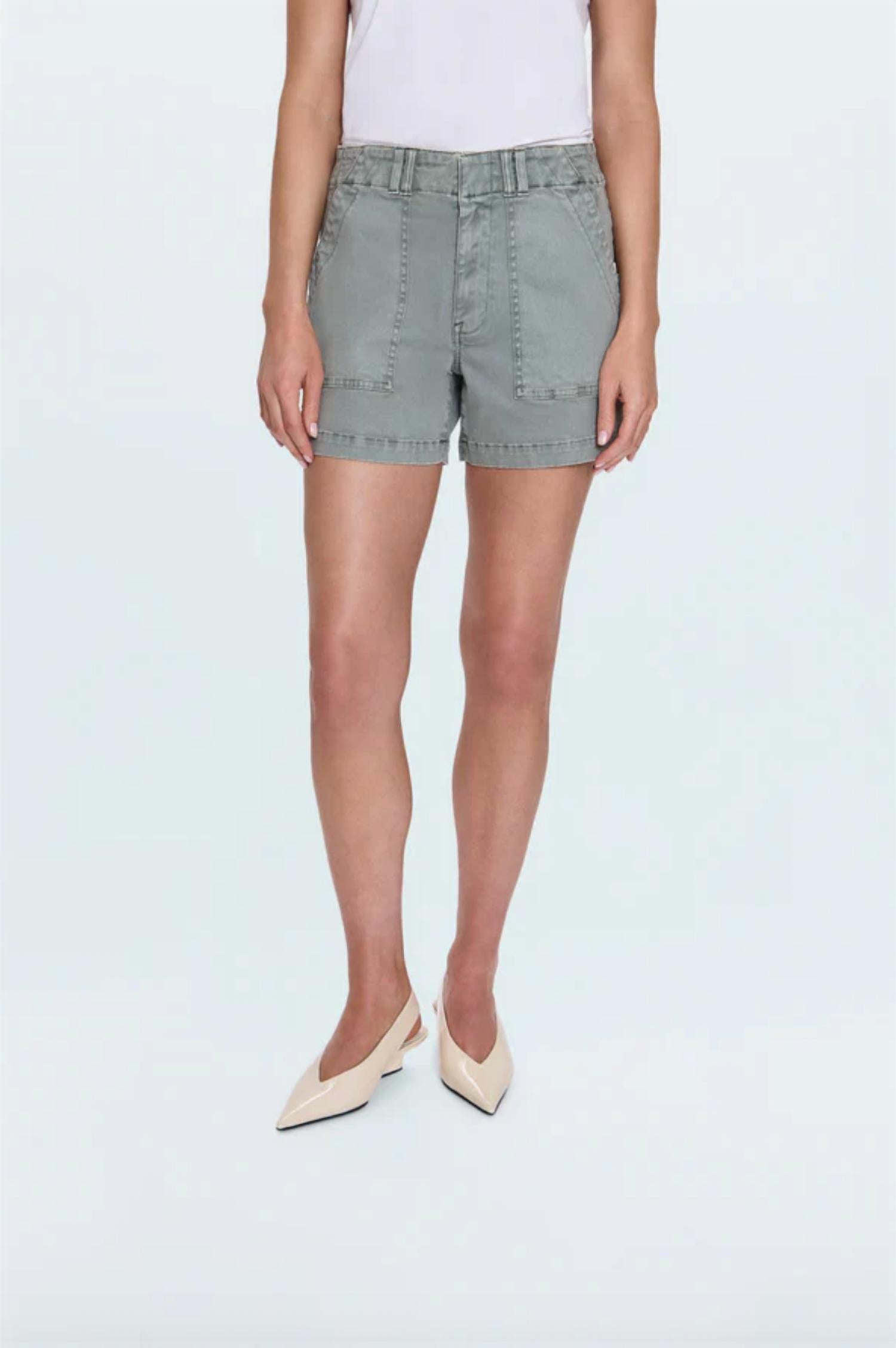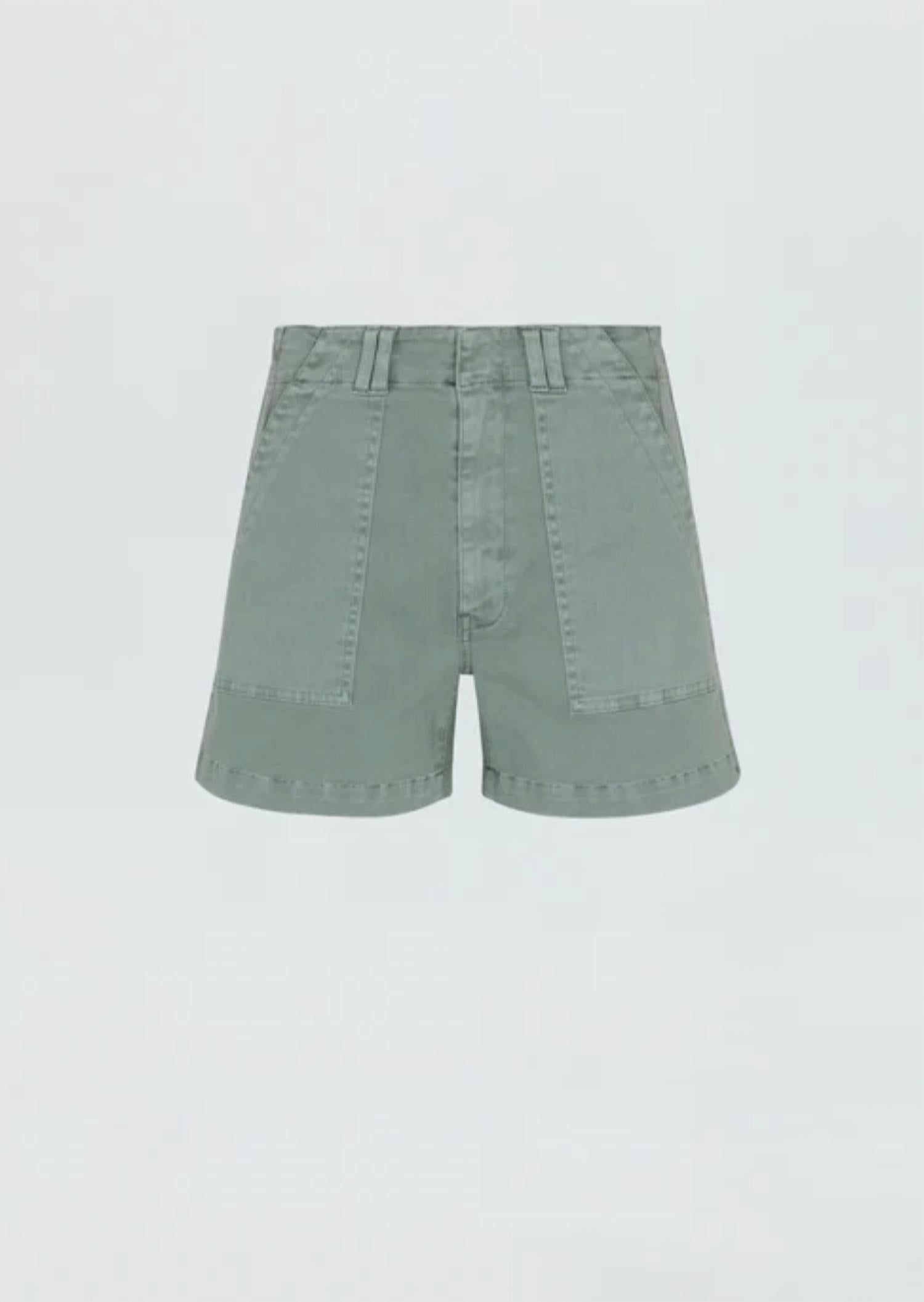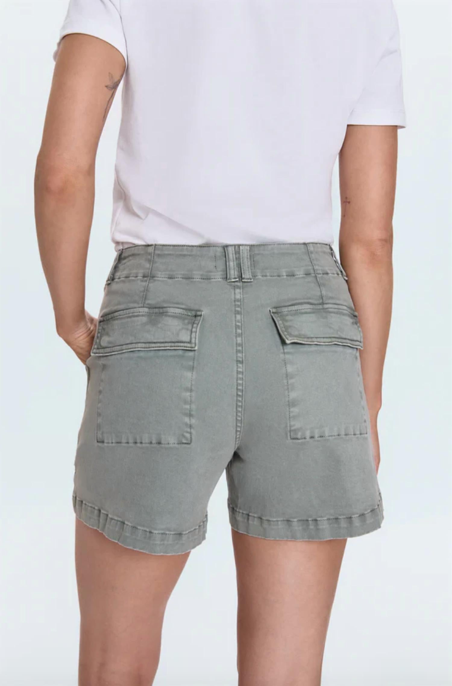 High-waist is here to stay and we especially love this style short. Introducing the Marissa High Rise Utility Short by PISTOLA, a perfect blend of style and comfort for the modern wardrobe. These shorts feature a high rise with a relaxed fit, a 4.5" inseam, and a leg opening of 25.5", all tailored using a soft cotton blend with 98% Cotton and 2% Spandex. Designed in a solid Bluff hue, they come with a utilitarian touch and practical pockets, secured by a hook and eye closure. Care is simple with machine wash and tumble dry instructions, making them ideal for a minimalist vacation look. Model is 5'9" wearing size 26.