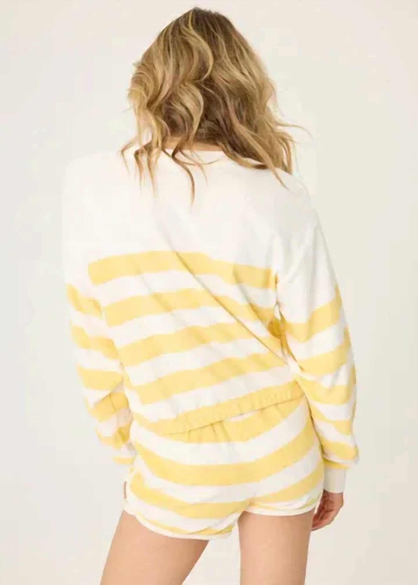 High-waist is here to stay and we especially love this style short. Introducing the Cabana Paradise Stripe Short by PJ Salvage, a vibrant summer essential in a cheerful lemon hue. This women's high-waist short showcases a playful stripe pattern perfect for vacation wear. Designed with a convenient pull-on closure, these shorts are both stylish and easy to wear. Make a sunny statement with these effortless, pocketless shorts.