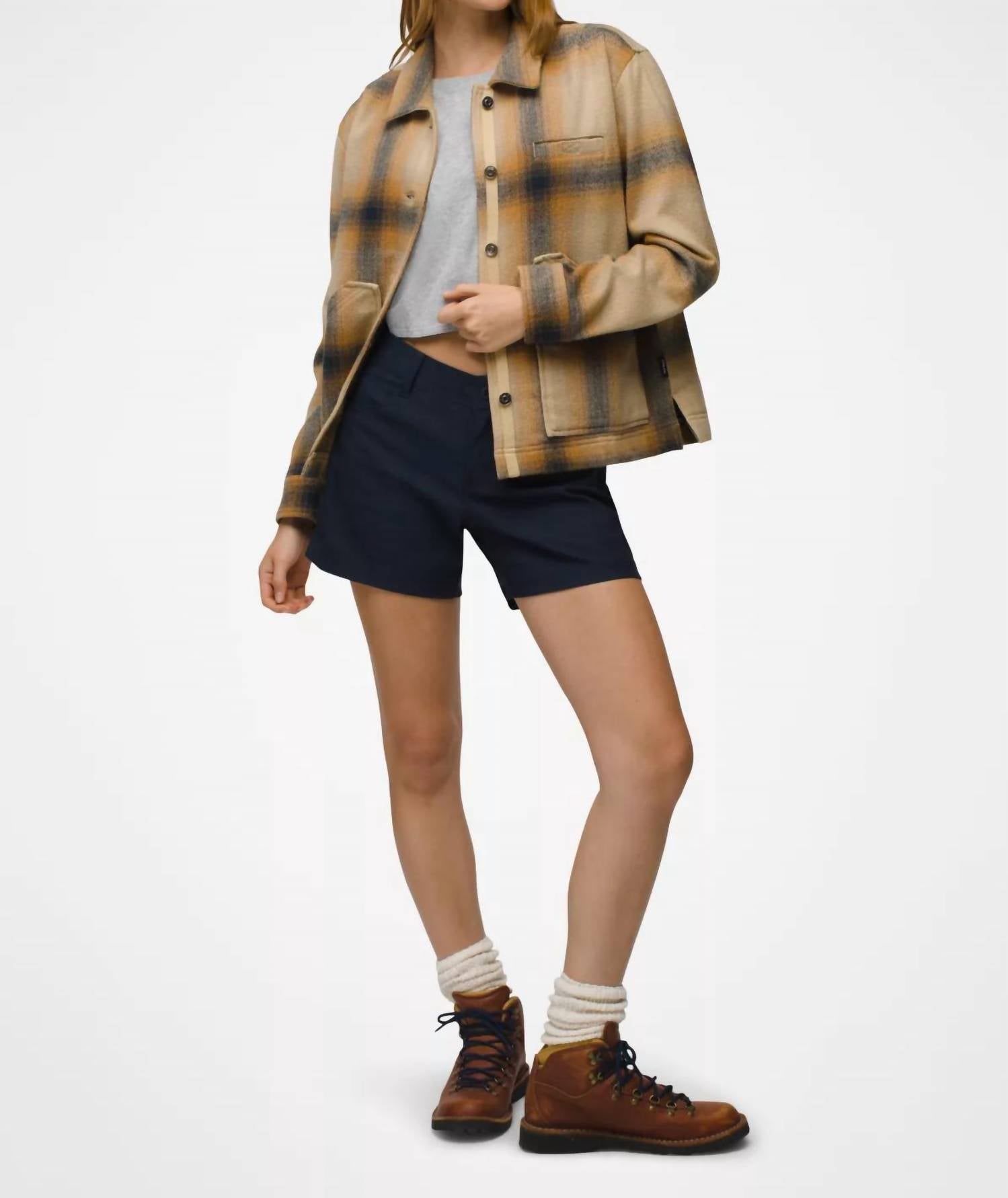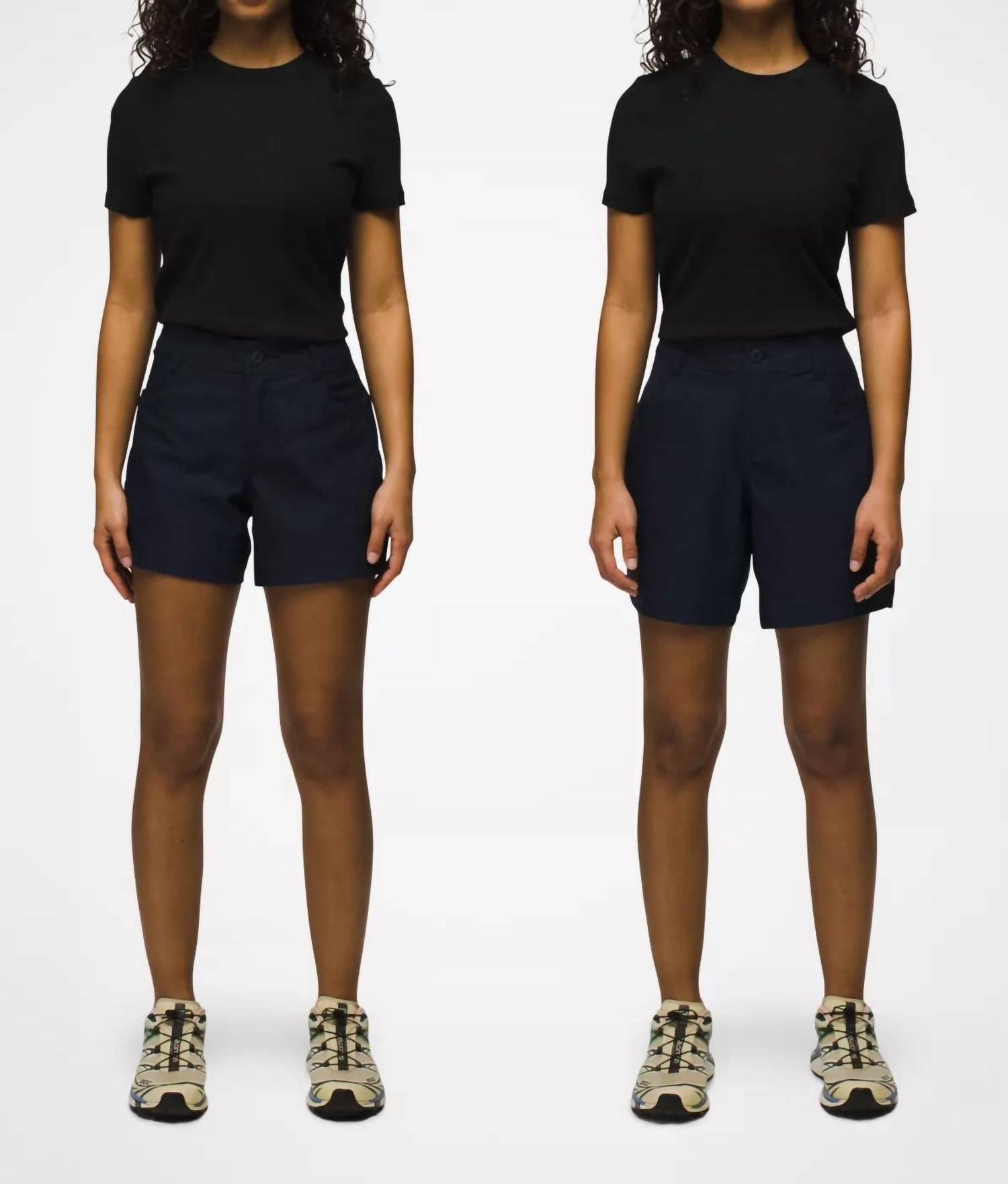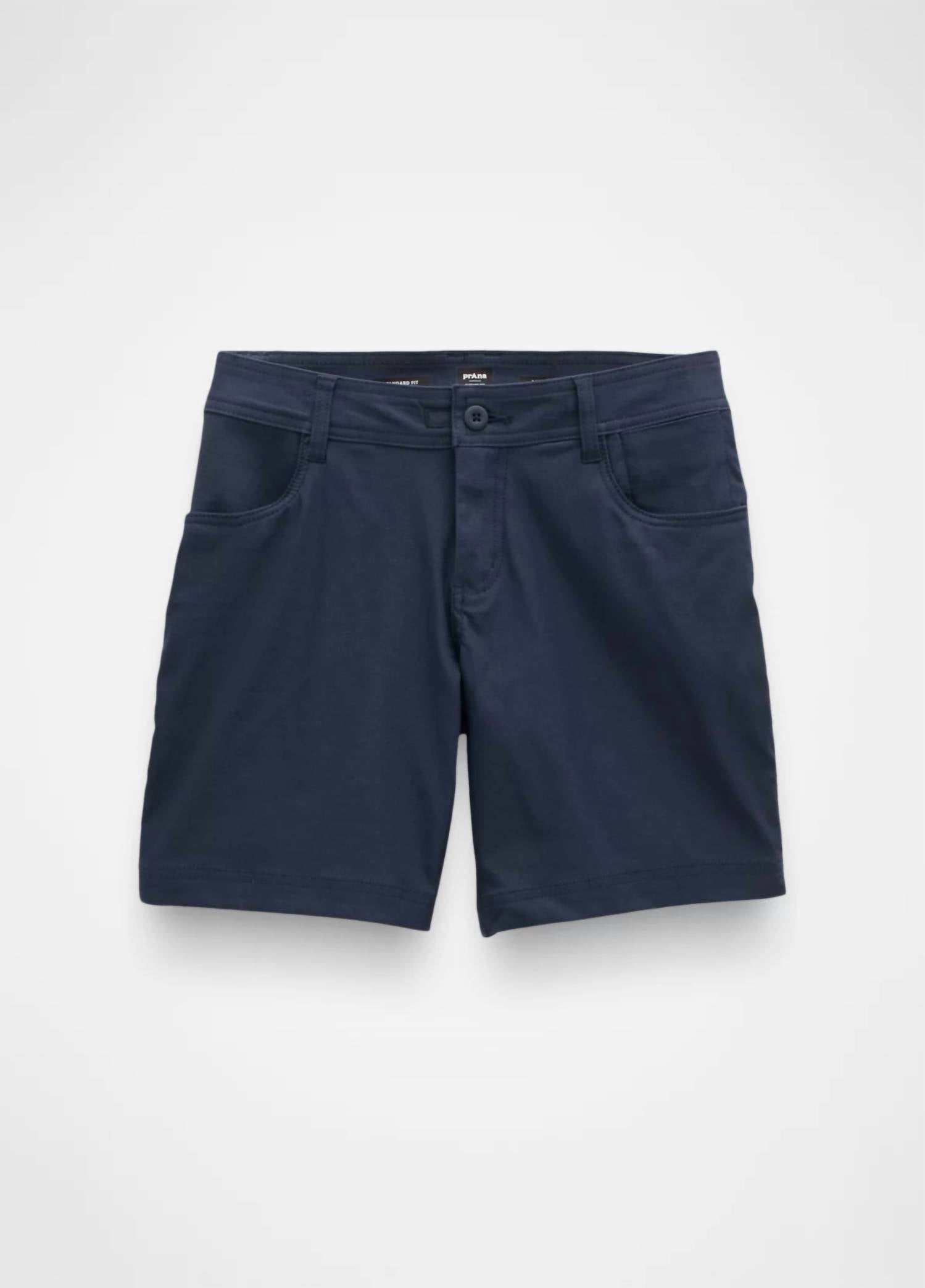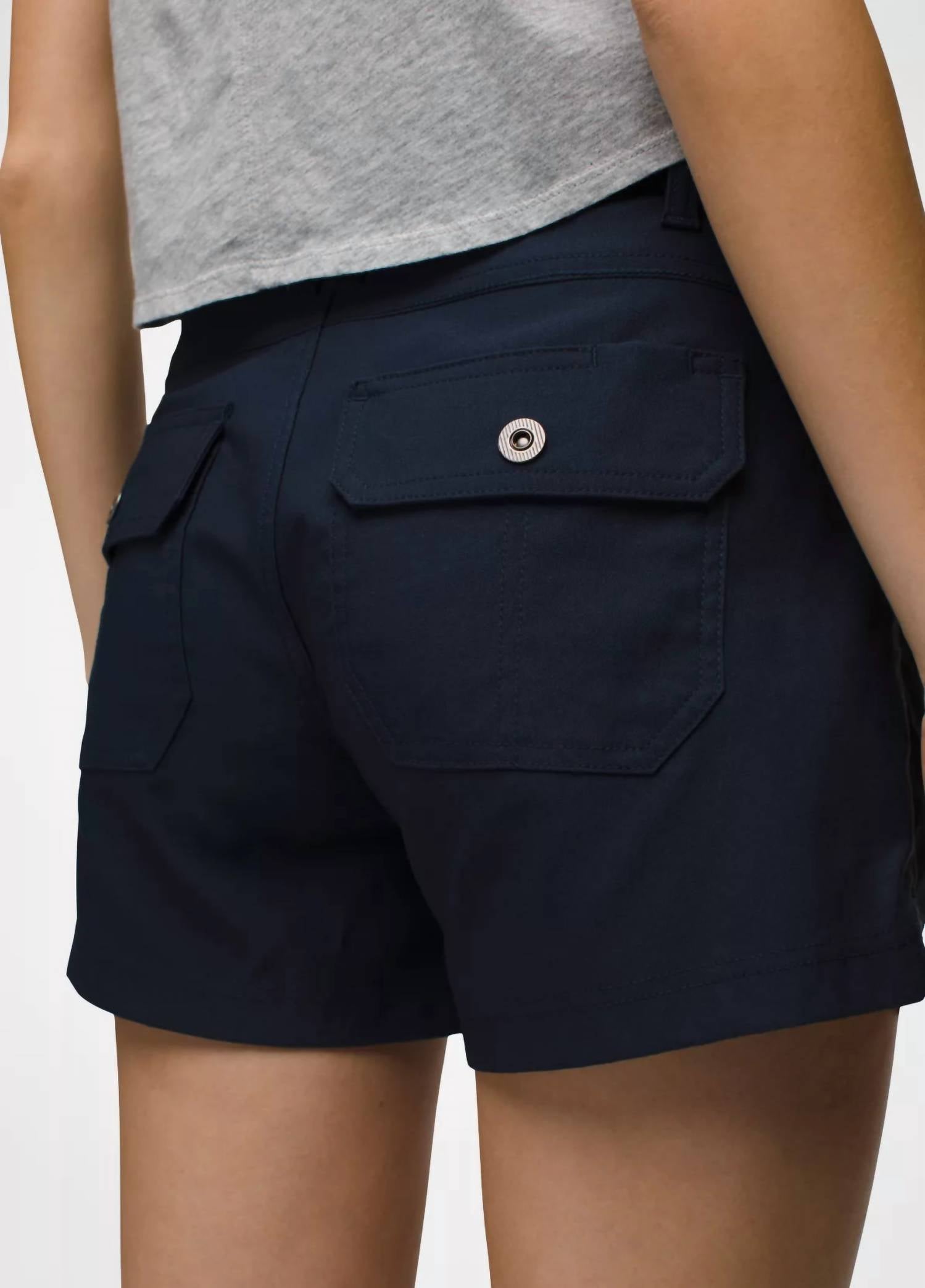 Tuck your favorite tee into these high-waist shorts for a more casual-cool feel. The Halle High Rise Short II by prAna in Nautical is crafted from sustainable ReZion™ fabric, perfect for outdoor adventures like hiking and camping. Made from a Nylon Blend, these breathable and lightweight shorts offer UPF 50+ sun protection, water repellency, and abrasion resistance. They feature a standard fit with a high rise measuring 9 1/4", 5” inseam, functional zip fly and button closure, and multiple pockets for convenience. Care is simple with machine wash and tumble dry instructions.