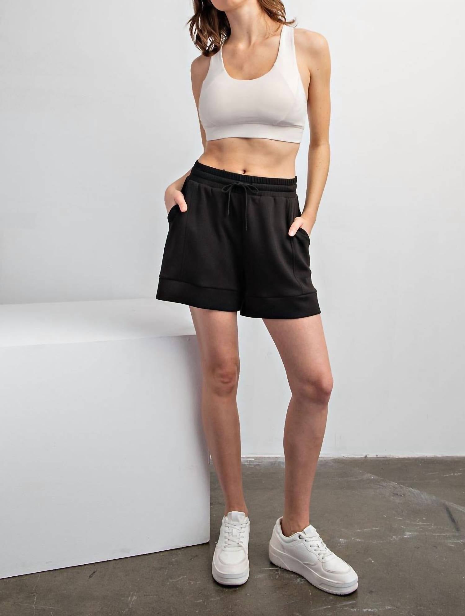 High-waist is here to stay and we especially love this style short. Embrace effortless summer style with the Let's Get Casual Short by RAE MODE in classic black. Designed for women, these high-waist shorts offer a minimalist look with a solid pattern, perfect for vacation or Thanksgiving festivities. Made from comfortable modal, they feature convenient pockets and a tie closure for easy wear. Ideal for the fashion-conscious traveler, these shorts merge comfort with chic elegance.