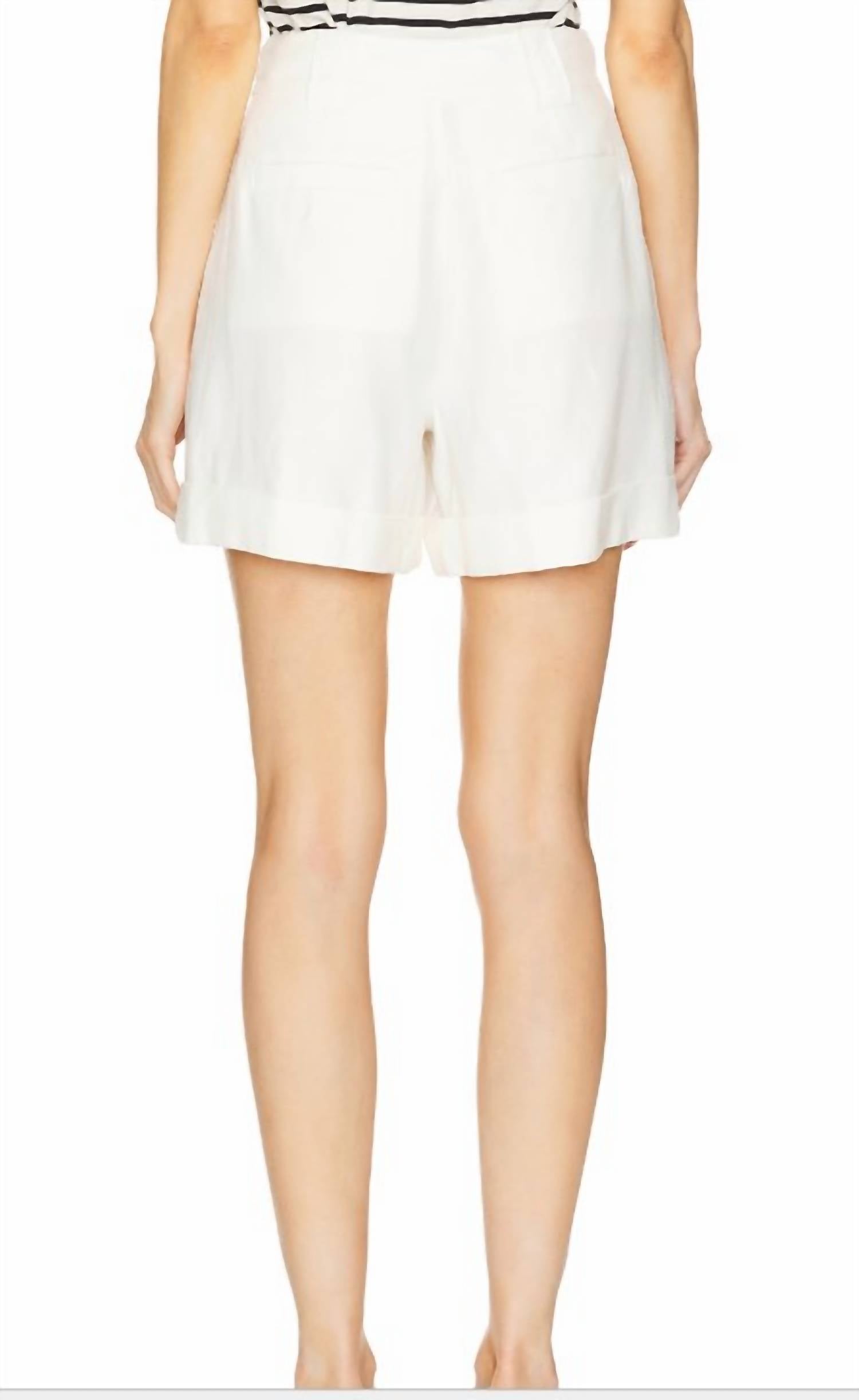 Fit to perfection, we love these high-waist shorts and you will too. Zip fly with button closure. 4-pocket design. Front pintuck detail. Lightweight linen fabric. Shorts measure approximately 15.5" in length. 70% Viscose, 30% Linen. Dry clean only. Made in China.