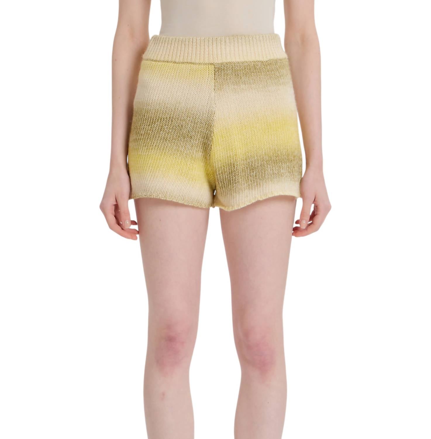 High-waist is here to stay and we especially love this style short. Embrace a boho chic vibe with the Poppy Ombre Sweater Shorts by SOMETHING NAVY, perfect for a summer getaway. These high-waisted shorts offer a stylish patterned design in a vibrant yellow hue. Featuring a pull-on closure, they are easy to wear and effortlessly complement your vacation wardrobe. Ideal for warm weather occasions where comfort meets style.