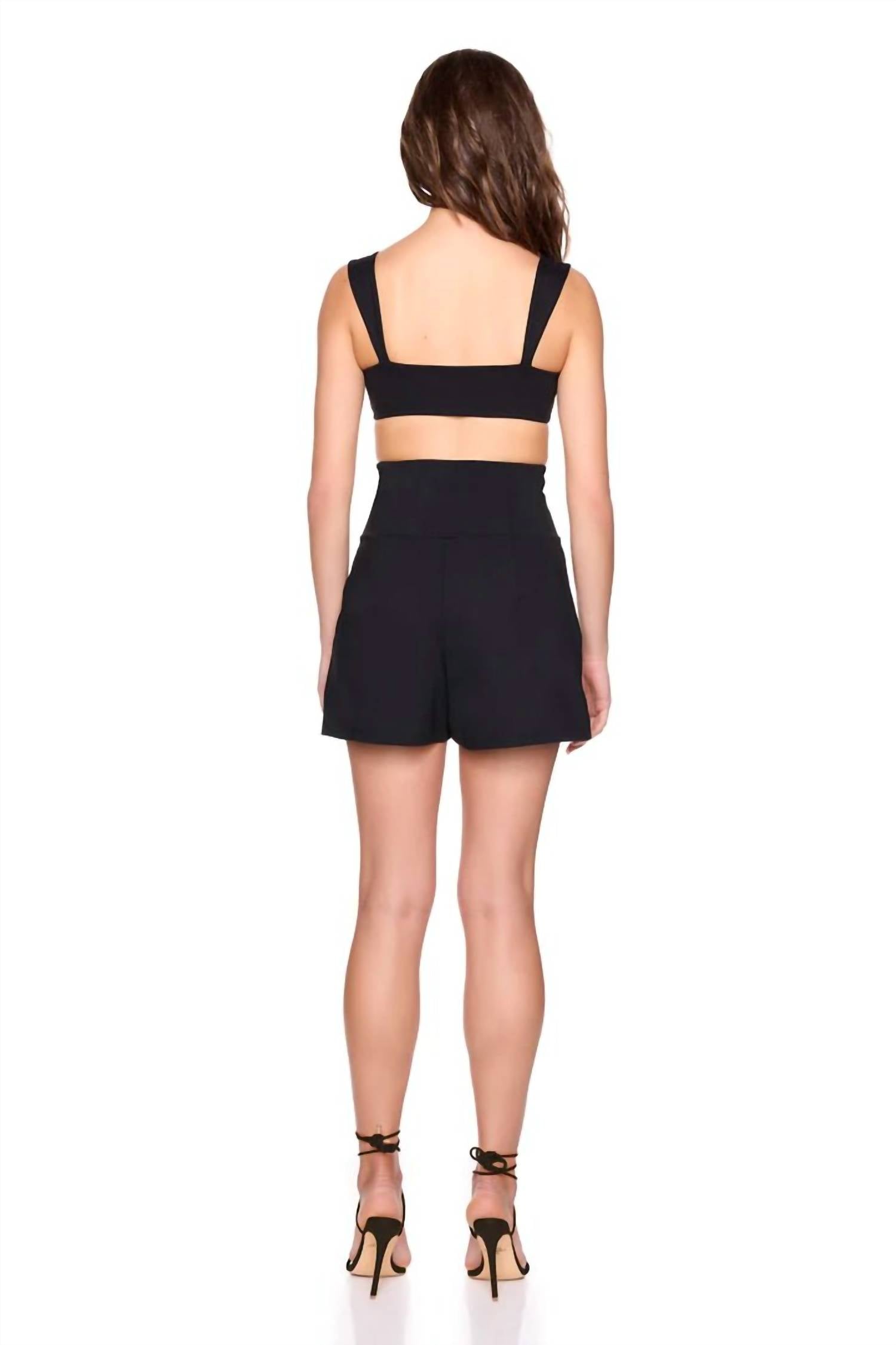 Tuck your favorite tee into these high-waist shorts for a more casual-cool feel. Revel in the timeless appeal of the High Waist Corset Shorts by Susana Monaco, showcasing a flawless fusion of vintage allure and modern comfort. Crafted from a signature VISTA™ cotton blend, these solid black shorts offer stretch that hugs curves effortlessly, with a flattering high waist that enhances your natural shape. The design includes convenient side pockets and a side zipper closure, perfect for minimalist summer styling. Care is simple: hand wash and line dry, maintaining the allure of this 3" inseam piece for stylish travels or holiday outings.