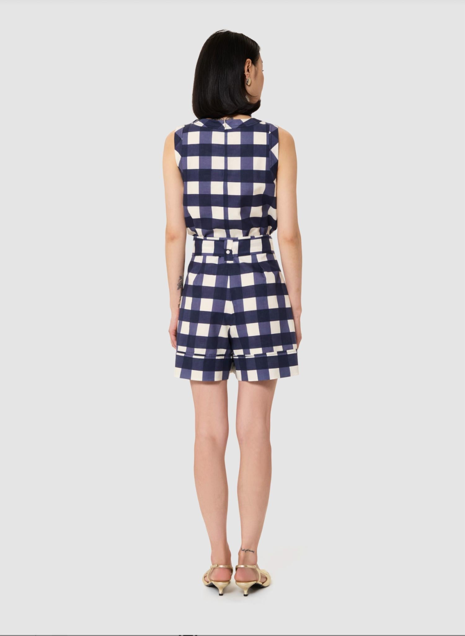 High-waist is here to stay and we especially love this style short. Meet the Shelby Gingham Shorts by TARA JARMON, a chic addition to any wardrobe with their sophisticated high waist design. Crafted entirely in France, these shorts feature an ultra-romantic midnight blue gingham pattern and are made from a linen blend composed of 55% linen and 45% cotton, with a lining of 65% polyester and 35% cotton. They offer convenient pockets and are secured with a classic zip and hook closure. To maintain their elegance, hand wash and lay flat to dry.