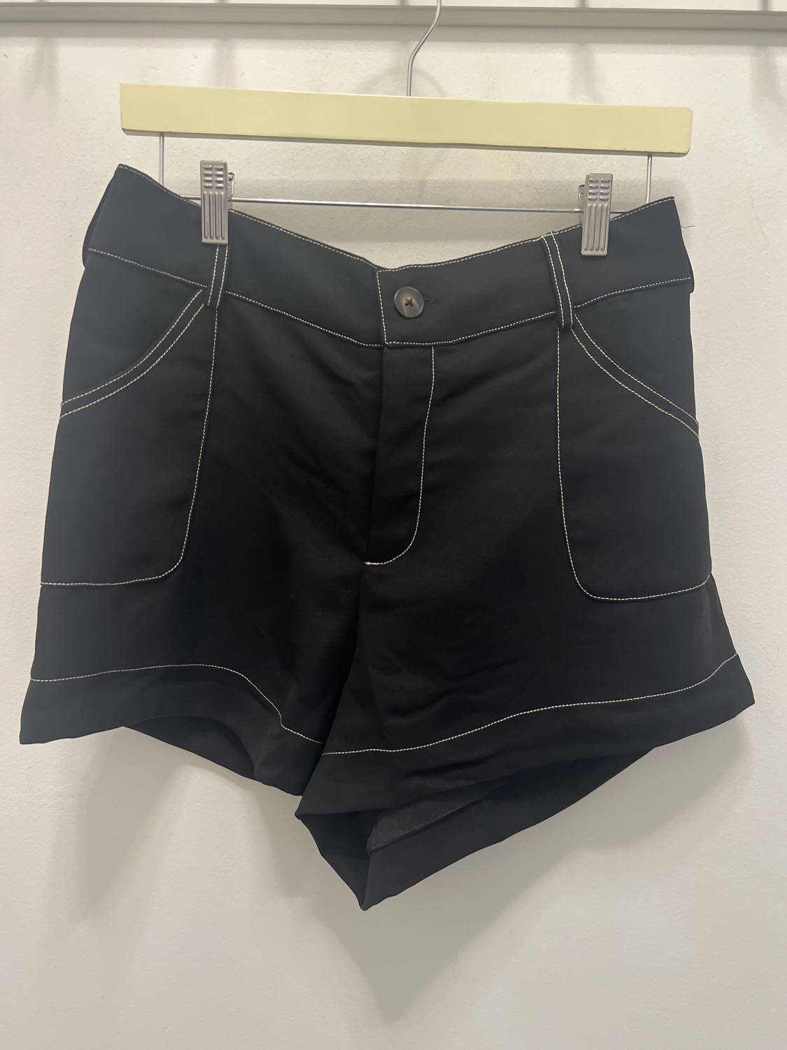 High-waist is here to stay and we especially love this style short. Introducing the Contrast Stitch Shorts by THML, a chic choice for any holiday party or Thanksgiving gathering. Crafted from 100% polyester, these high-waist shorts in classic black feature a striking patterned design. With convenient pockets and a secure button closure, they're a minimalist's dream for the Spring season. Stay stylish and comfortable while embracing any occasion with these trendy shorts.