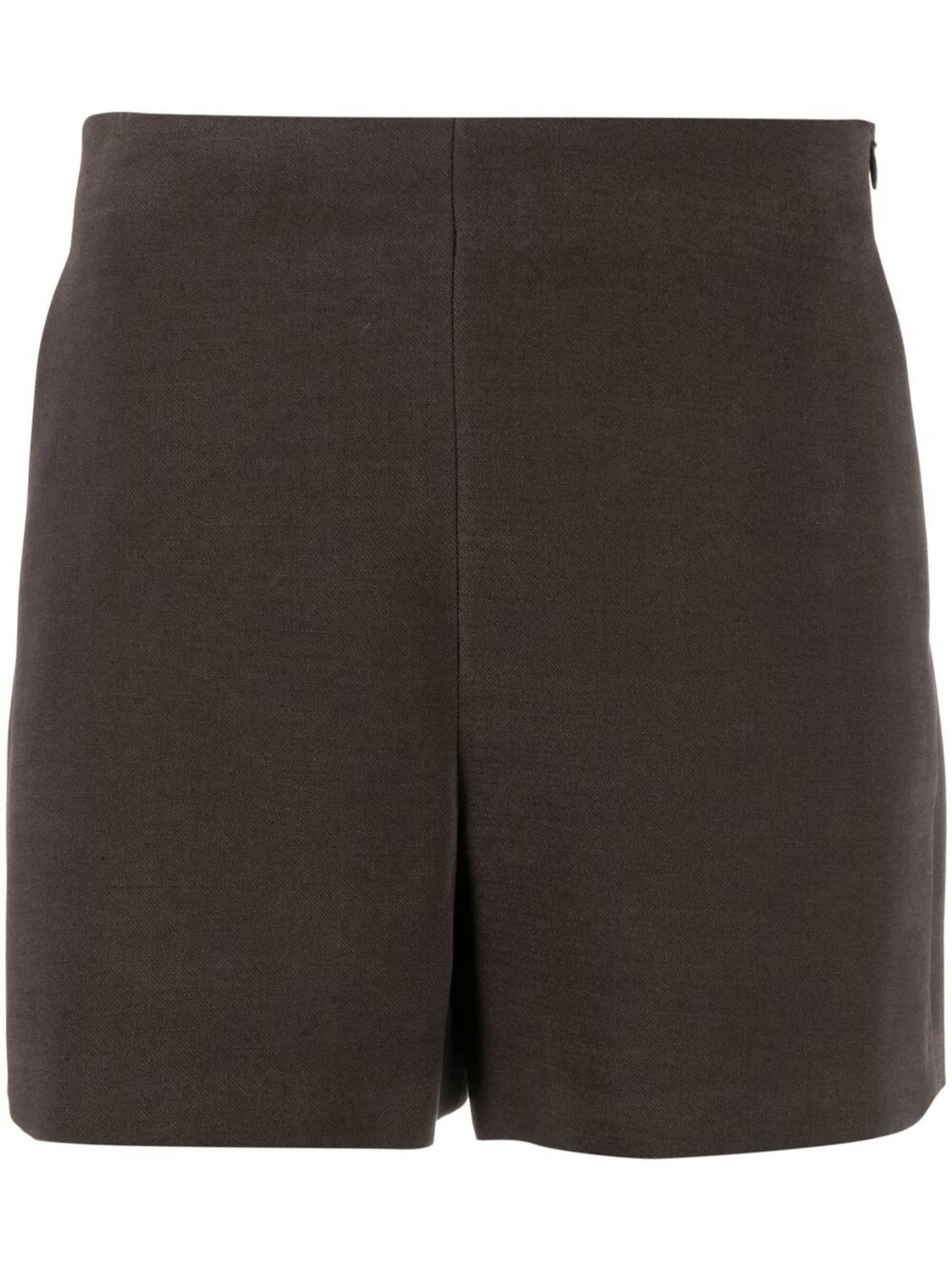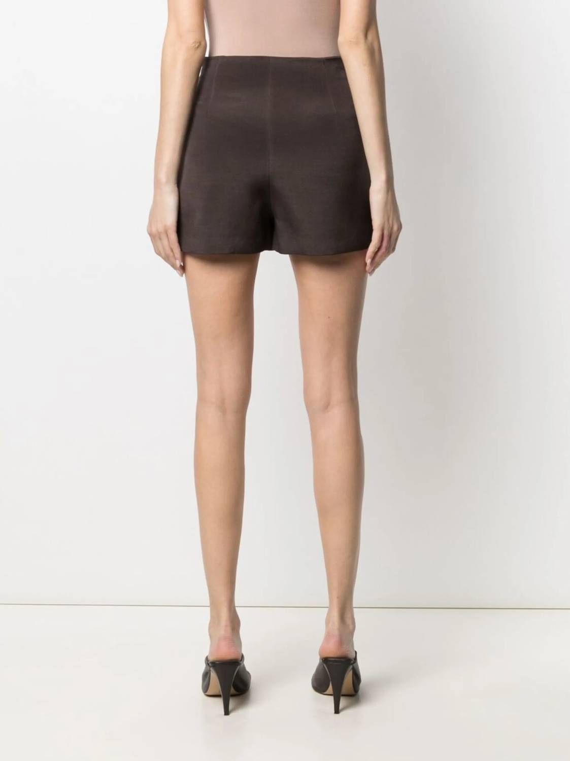 Tuck your favorite tee into these high-waist shorts for a more casual-cool feel. Indulge in luxurious comfort with the High Waisted Knitted Shorts by Valentino, crafted in Italy. These solid dark brown shorts feature a fine knit design, beautifully rendered in a silk-wool blend. Composition: Wool 75%, Silk 20%, Polyamide 4%, Spandex/Elastane 1%; Lining: Viscose 91%, Spandex/Elastane 9%. Side zipper. Machine wash.