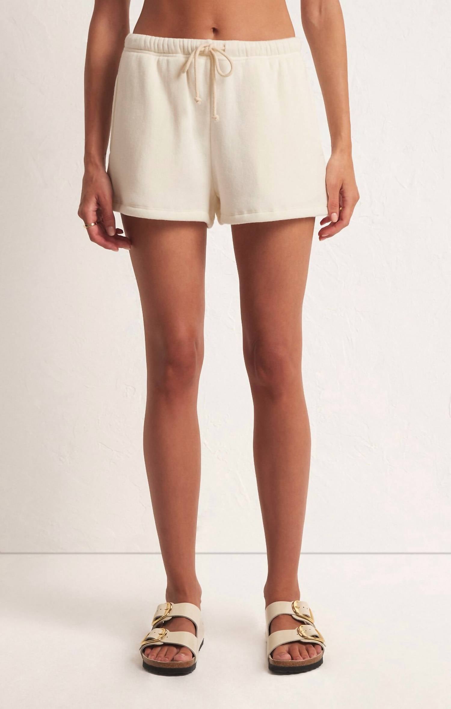 High-waist is here to stay and we especially love this style short. Experience comfort with the Play On Shorts by Z Supply, available in a serene Pool Blue hue. These high-waisted shorts promise relaxed style with a pull-on elastic waist, adjustable drawcord, and convenient side pockets. Crafted from a mid-weight Reverse Cozy fabric composed of 60% Cotton, 28% Polyester, and 12% Rayon, they measure 12 1/2" from the top of the waist. Perfect for beach days or Thanksgiving outings, these shorts combine minimalist trends with practicality; care: simply machine wash on a cold gentle cycle.