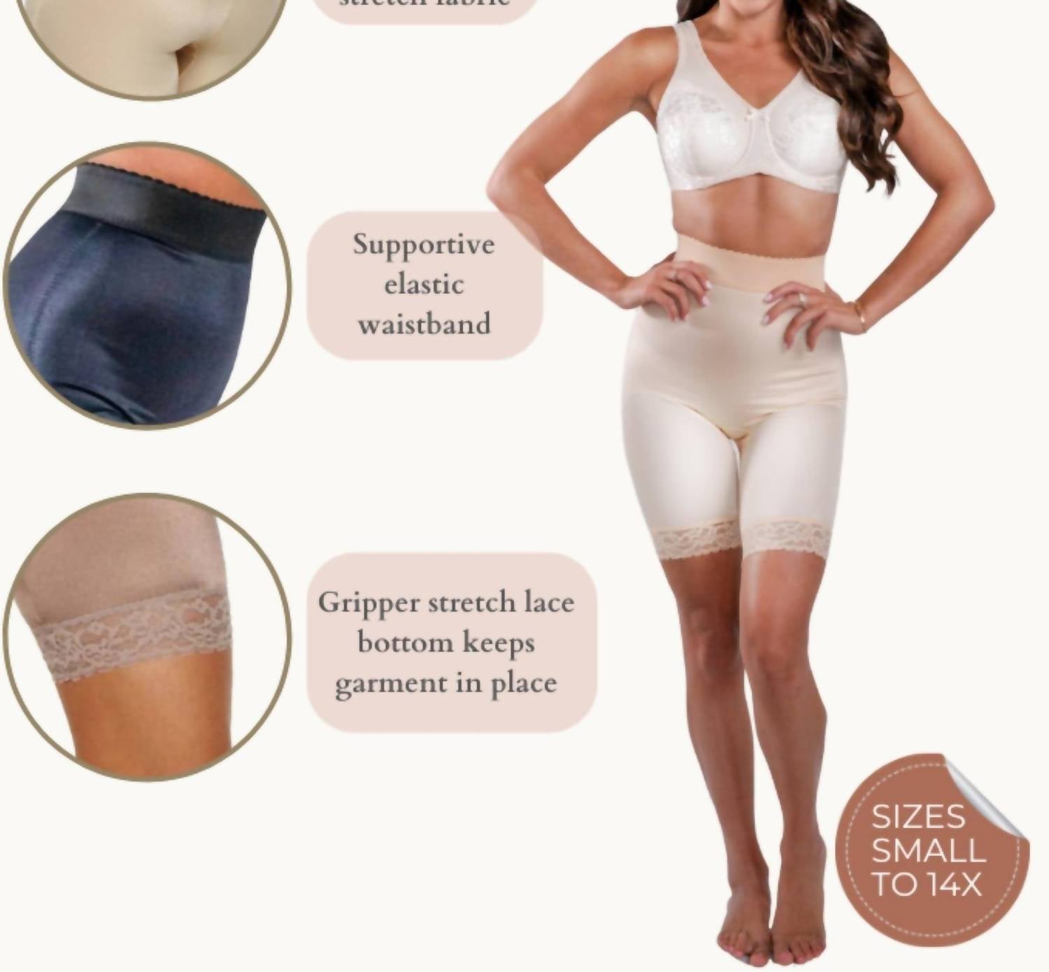 Both comfortable and funtional, you'll want more than just one. Discover the Shapewear High-waist Long Leg Pantie Girdle by Rago in a sleek hue, perfect for a minimalist wardrobe. With its high-waist design, it features a 2" tall elastic waistband for superior comfort and a hidden inner front panel offering tummy control. Composed of an 85% nylon and 15% Invista® Lycra® blend, these panties are crafted in the USA. Enjoy seamless sides to ensure a no-show look under clothing and stretch lace leg hems with silicone gripper elastic to prevent ride-up. Care instructions include machine washing warm, line drying, and avoiding bleach and ironing. Ideal for spring travel occasions or a thoughtful Valentine's Day gift.