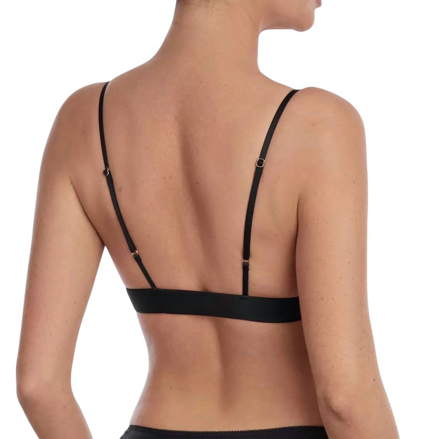 Introducing the Zarzuela Bralette by Ajour, a perfect blend of allure and comfort for women. This sexy, non-padded, and non-underwired bralette features triangular cups crafted from semitransparent mesh, embellished with exquisite floral embroidery. Made from high-quality materials: 72% Polyamide, 18% Elastane, 8% Viscose, 2% Polyester. Equipped with thin, adjustable straps for a customizable fit. Available in a timeless black color. Care: Hand wash.