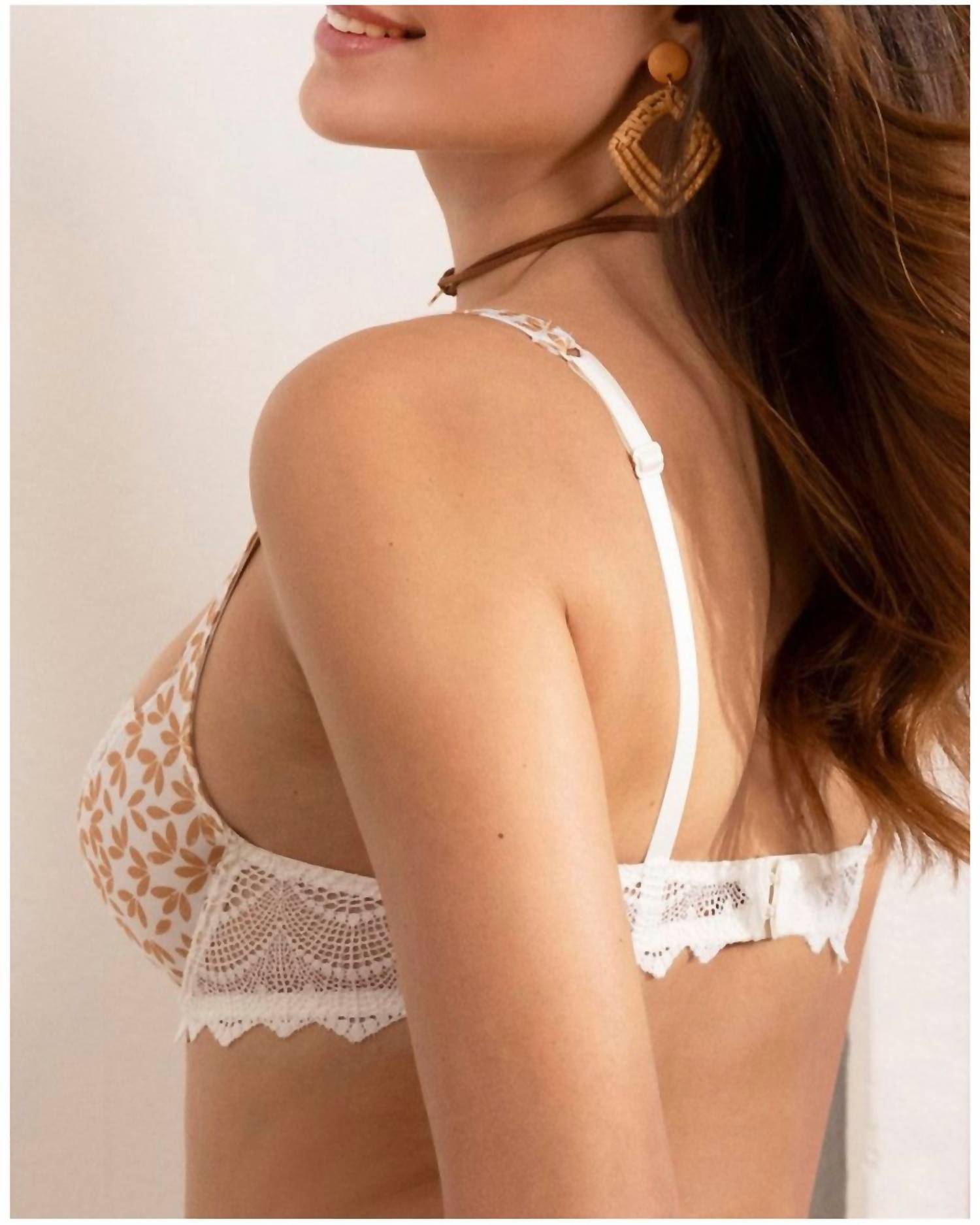 The most comfortable and stylish bra that you'll reach for daily. Introducing the Crochet Tulip Bra by Antigel Boudoir de Filles, a stunning floral piece in an elegant Camel Boheme color. Made from high-quality polyamide, this bra is designed for comfort and style. Perfect for women, its intricate floral pattern adds a delicate touch to your lingerie collection. Care: Hand wash only to maintain its exquisite craftsmanship.