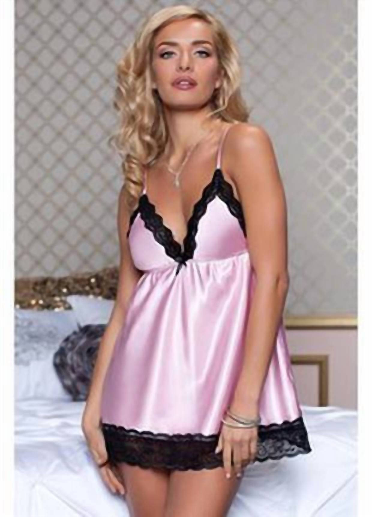 Discover the Enchanting Chemise & Thong by Seven Til Midnight, a stunning light pink set. Crafted from 98% Cotton and 2% Spandex, it features elegant scallop lace details at the underbust and hem. This satin chemise promises a textured look with multi-way ties and a matching thong. Care for this exquisite piece with a gentle hand wash.